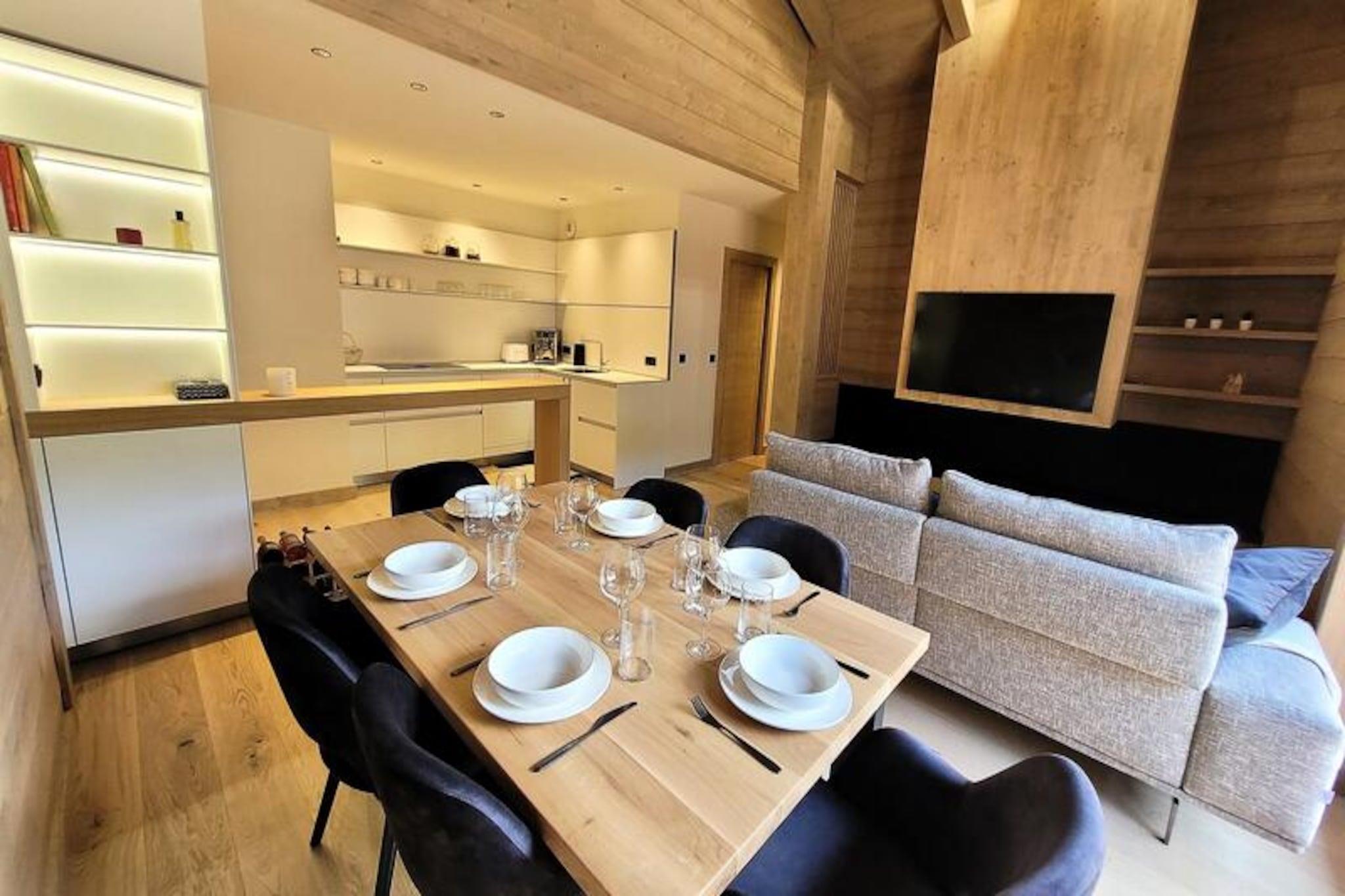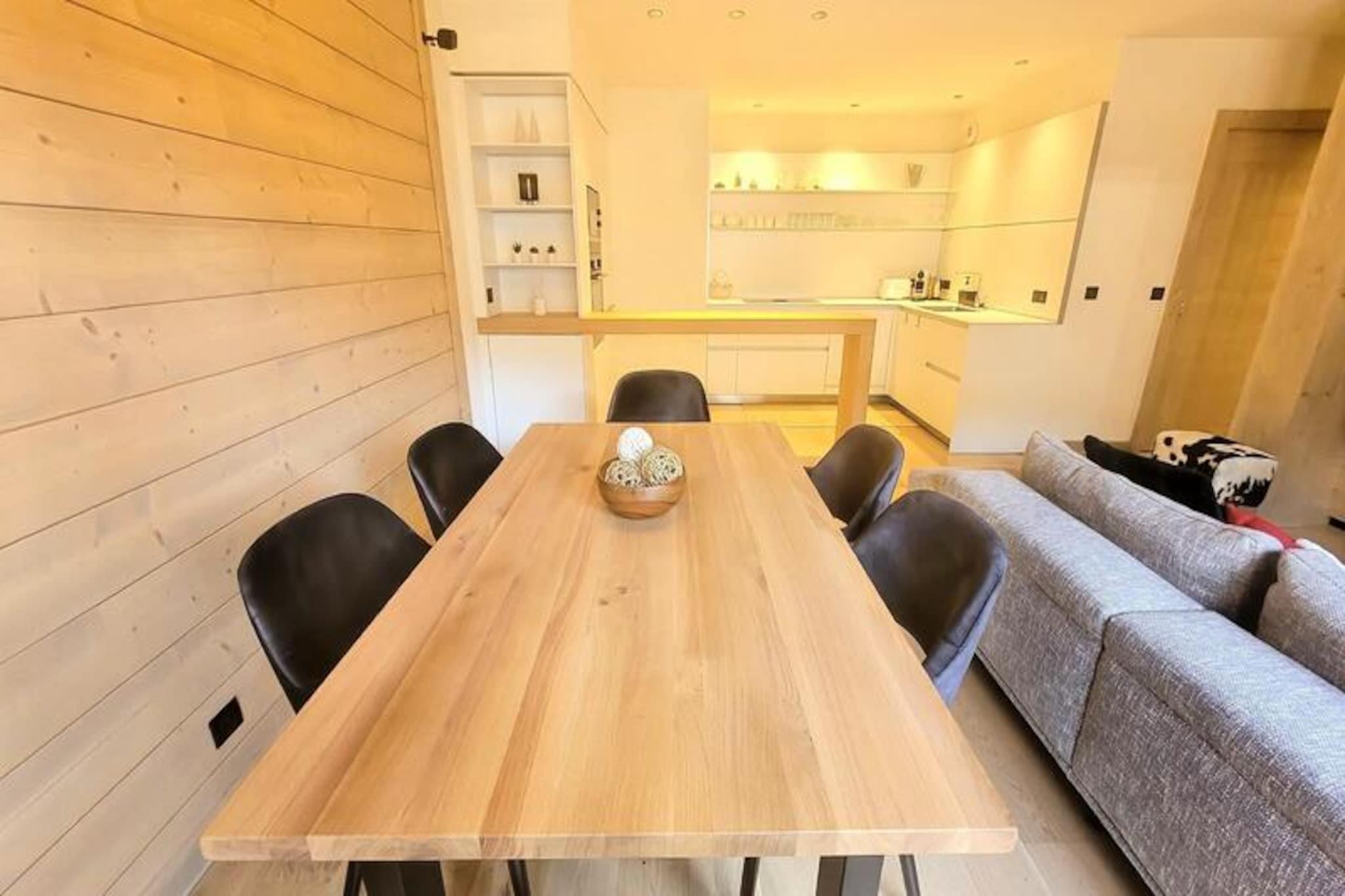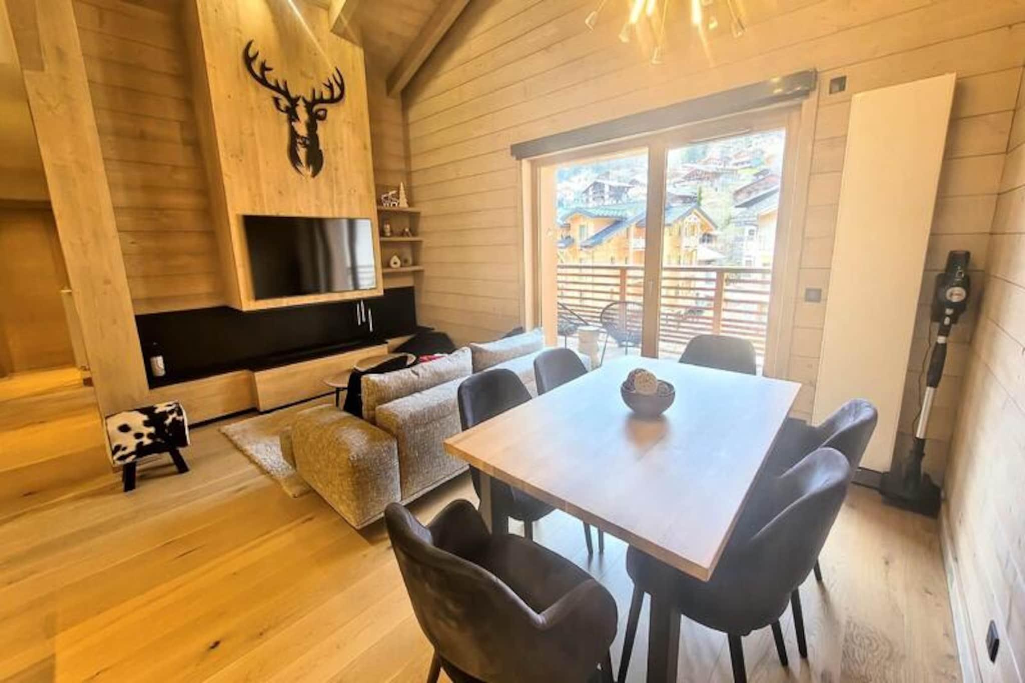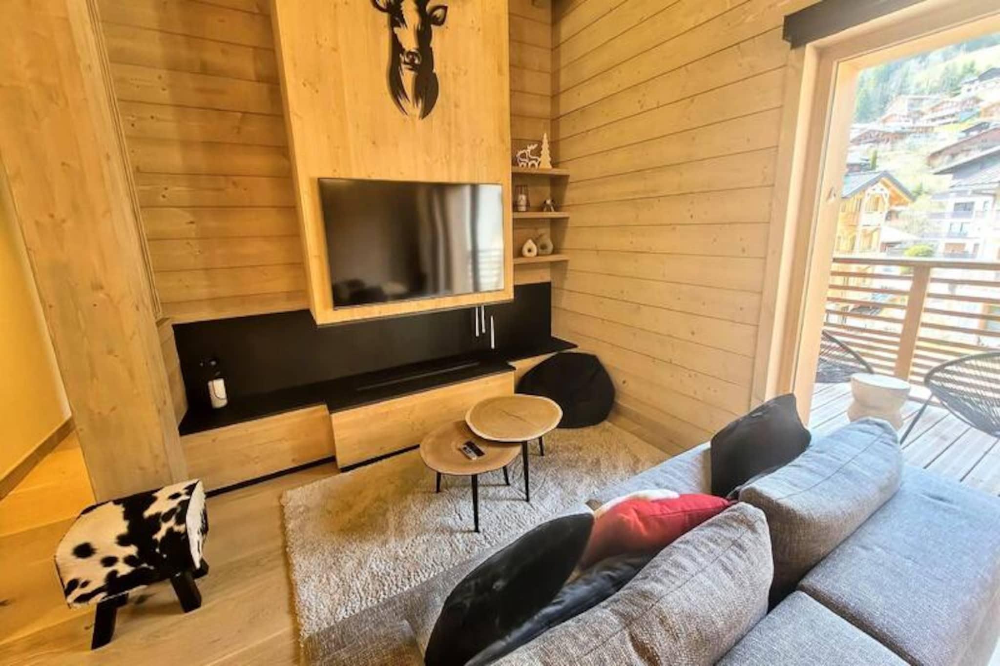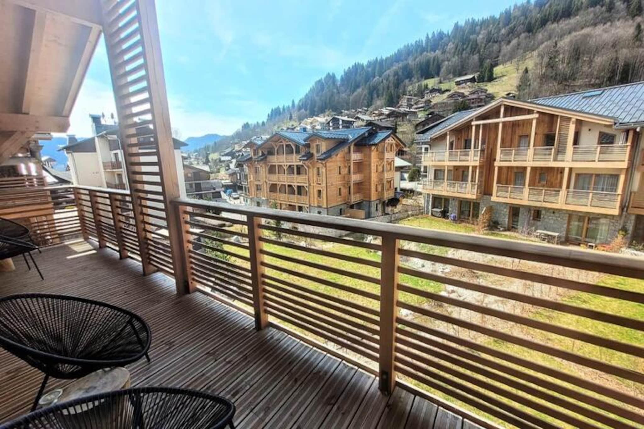 In the heart of the charming village of Les Gets, this luxurious apartment offers a perfect blend of sophistication and alpine warmth. Imagine waking up to the crisp mountain air and stepping onto your sunny terrace to take in the breathtaking views of the surrounding peaks and slopes. The residence is ideally located, with shopping arcades just below and the vibrant resort center at your doorstep, ensuring convenience and a lively atmosphere throughout your stay. This is where modern elegance meets the timeless beauty of the French Alps. \n\nDesigned with meticulous attention to detail, the apartment features a spacious living room with soaring ceilings and a unique steam fireplace that creates a cozy ambiance for relaxing evenings after a day on the slopes. The fully equipped kitchen invites you to prepare hearty meals, while the elegant dining area and balcony provide the perfect setting for sharing moments with loved ones. Accommodating up to six guests, the property includes an en-suite master bedroom, a charming bunk room ideal for children, and a second bathroom equipped with modern amenities like a washing machine and tumble dryer. \n\nStep outside and you’ll find yourself just 250 meters from the nearest ski slopes and 350 meters from the renowned French Ski School (ESF). Whether you’re here for winter sports or summer hikes, Les Gets offers endless opportunities for adventure and relaxation. The residence also boasts a sauna, steam room, and fitness center, ensuring your stay is as rejuvenating as it is exciting. \n\nWith its prime location, luxurious features, and thoughtful services like end-of-stay cleaning and linens, this apartment is the ultimate alpine retreat. Whether you’re seeking thrilling days on the slopes or tranquil evenings by the fireplace, this property promises an unforgettable escape in the heart of the French Alps.