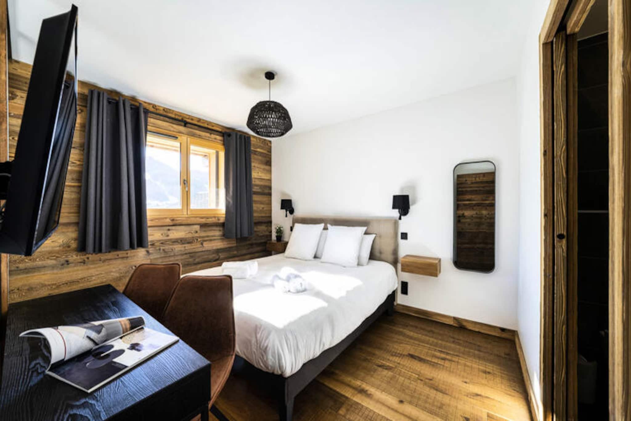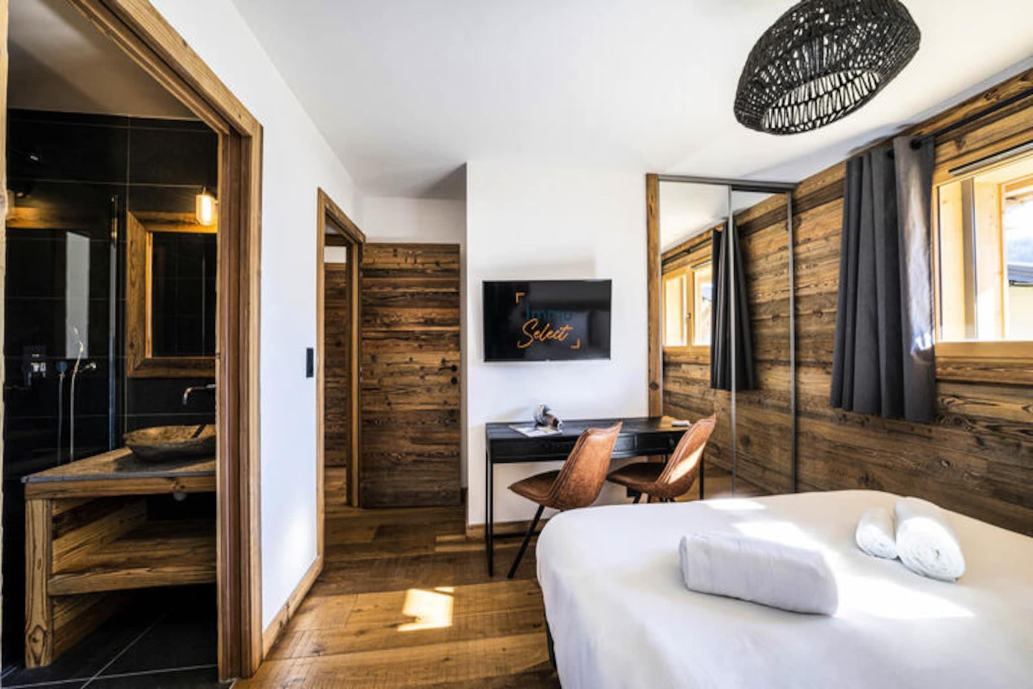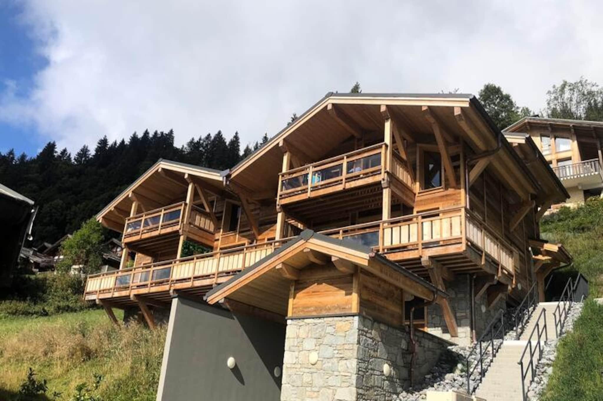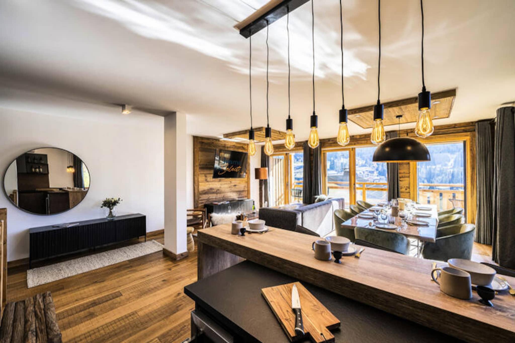 Perched high above the resort with breathtaking views of the surrounding mountains, this luxurious duplex apartment offers a serene alpine retreat. Completed in 2020 with premium materials, the property seamlessly blends modern elegance with the natural charm of its idyllic setting. Bathed in sunlight thanks to its south-east exposure and expansive bay windows, the apartment invites you to relax and recharge in a warm, cozy atmosphere. Just 450 meters from the center and shops, and a short 650-meter stroll to the ski slopes and French Ski School, this location combines tranquility with convenience. A shuttle stop just 60 meters away ensures easy access to all the area has to offer. Spanning 103 m², this 4-star rated duplex is ideal for families or groups of up to 8 guests. The first level features a welcoming entrance hall and a spacious living room that opens onto a sun-drenched terrace, perfect for soaking in the panoramic views. The fully equipped kitchen, complete with a Nespresso machine, wine cellar, and raclette set, ensures you can enjoy gourmet meals in the comfort of your home away from home. On the lower level, two en-suite double bedrooms with plush bedding and modern amenities provide ultimate comfort, while a dormitory area with bunk beds and single beds offers a fun and functional space for children or additional guests. The property is equipped with underfloor heating, Wi-Fi, and four televisions, ensuring a comfortable stay year-round. Additional amenities include a washing machine, dryer, and private ski lockers. Guests benefit from included services such as end-of-stay cleaning, linens, towels, and beds made upon arrival. With its peaceful location, stunning views, and proximity to key facilities, this apartment is the perfect base for an unforgettable alpine getaway. Whether you're skiing in winter or hiking in summer, this property promises a truly exceptional experience.