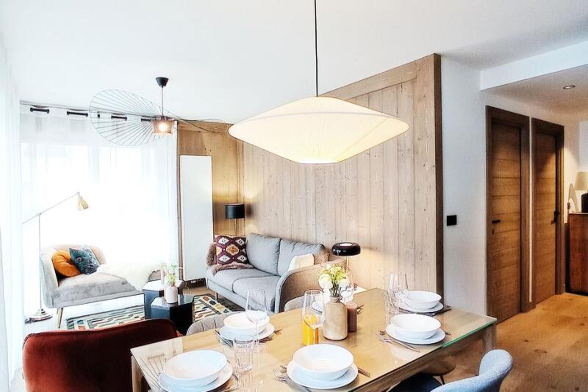In the picturesque village of Les Gets, this elegant apartment offers a perfect blend of alpine charm and modern convenience. Situated on the second floor, it provides a cozy, home-like atmosphere with stunning views of the nearby slopes from its northeast-facing balcony. Whether you're here to ski, hike, or simply relax, this property invites you to leave your car behind and enjoy the luxury of having everything within walking distance. Rated 4 stars, it promises a memorable stay for up to six guests. \n\nThe apartment boasts a thoughtfully designed layout, featuring a spacious living room with a comfortable sofa, armchair, and chaise longue, seamlessly connected to the dining area and a fully equipped kitchen. The three bedrooms cater to all needs: a double bedroom with a king-size bed, a modular room with twin beds that can convert into a king-size, and a children's room with bunk beds. Two modern bathrooms, each with a shower and towel dryer, ensure convenience, while amenities like central heating, Wi-Fi, and a washer-dryer add to the comfort. The kitchen is a chef’s delight, equipped with an induction hob, oven, Nespresso machine, and even a raclette set for cozy alpine evenings. \n\nLocated just 100 meters from the slopes and steps from shops, restaurants, and the French Ski School, the apartment is perfectly positioned for both winter and summer adventures. In winter, enjoy ski-in/ski-out convenience, while summer offers scenic hiking trails and mountain biking opportunities. The nearby shuttle stop and underground parking add to the ease of exploring the area. \n\nWith its unbeatable location, luxurious amenities, and warm ambiance, this residence is the ideal choice for families or groups seeking an unforgettable alpine escape in the heart of Les Gets.