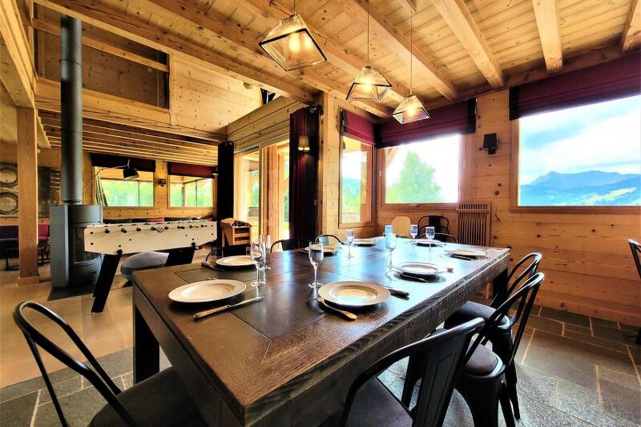 On the tranquil shores of Lake Les Gets, Chalet les Sauvageons offers a rare blend of luxury, comfort, and alpine charm. Just 50 meters from the Chavannes slopes, this detached chalet is a haven for ski enthusiasts and nature lovers alike. With its southwest exposure, you’ll bask in sunlight throughout the day while enjoying panoramic views of the village and valley. Whether you’re seeking adventure or relaxation, this prestigious property promises an unforgettable mountain escape. The free shuttle bus conveniently stops right outside, ensuring easy access to local attractions and amenities. \n\nSpanning over 360 m², the chalet is designed to accommodate up to 14 guests in style. The ground floor features a dedicated après-ski room with boot dryers and ski racks, a dormitory-style bedroom for up to eight, and a luxurious hammam that accommodates up to eight people. The indoor pool, accessible via a staircase, boasts a counter-current system and adjustable depth for ultimate relaxation. On the first floor, the 100 m² living area is centered around a wood-burning stove and opens onto a spacious terrace with breathtaking views. The open-plan kitchen is equipped with modern appliances, including two refrigerators, two dishwashers, and a wine cellar, making it ideal for hosting memorable dinners with family and friends. \n\nNearby, you’ll find the ESF ski school, local shops, and the Alta Lumina experience, all within a short drive. In summer, the region transforms into a paradise for hikers and cyclists, with trails that showcase the stunning beauty of the Alps. Whether you’re exploring the slopes or unwinding by the pool, Chalet les Sauvageons is the perfect base for your alpine adventures. \n\nBook your stay and immerse yourself in the serene beauty of Les Gets, where every detail has been thoughtfully curated to create a truly exceptional holiday experience.
