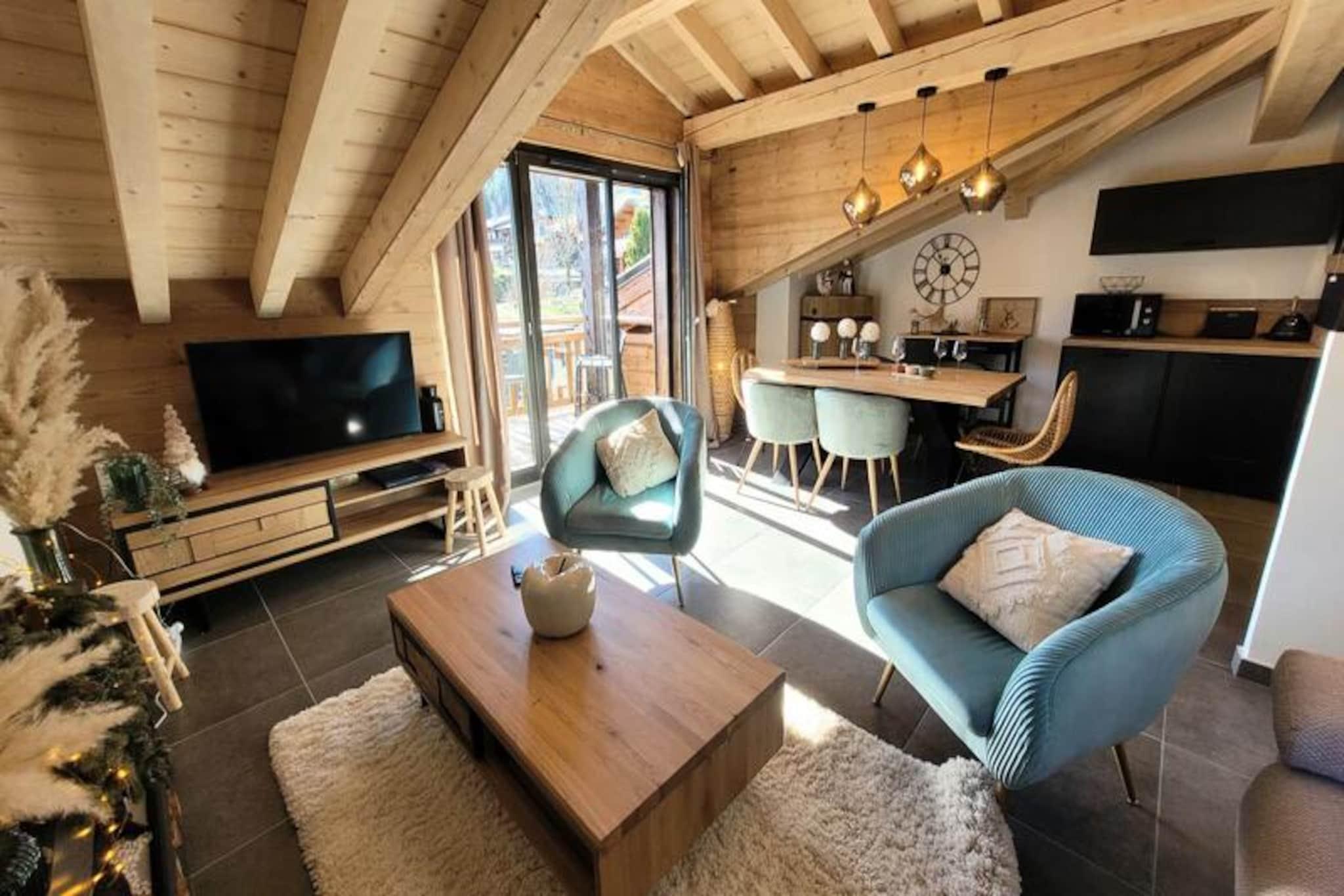 Surrounded by the serene beauty of the French Alps, this charming chalet-style apartment in Les Gets offers a tranquil retreat just minutes from the Perrières ski slopes. Imagine waking up to the crisp mountain air, sipping coffee on your private balcony, and planning a day of alpine adventures. With its dual-aspect design and warm, timbered interiors, this 3-star residence blends modern comforts with authentic mountain charm, creating the perfect setting for an unforgettable getaway. Conveniently located near the shuttle stop, you’ll enjoy easy access to the slopes and village amenities while basking in the peaceful ambiance of this quiet neighborhood. \n\nDesigned to accommodate up to six guests, the apartment boasts a thoughtful layout across two floors. The ground floor welcomes you with a spacious entrance hall, while the first floor features a master bedroom with an en-suite bathroom, a cozy double bedroom, and a third bedroom with bunk beds—ideal for families or groups of friends. The open-plan living area includes a fully equipped kitchen, a dining space with stunning views, and a comfortable lounge leading to a south-west-facing balcony, perfect for al fresco meals or relaxing after a day on the slopes. Modern amenities such as Wi-Fi, underfloor heating, and a selection of kitchen appliances ensure a seamless and comfortable stay. \n\nLes Gets is a haven for outdoor enthusiasts, offering skiing, hiking, and cycling opportunities in every season. The residence is just 2 km from the village center, with shops, restaurants, and the French Ski School within easy reach. Whether you’re exploring the slopes in winter or enjoying the lush alpine trails in summer, this location provides the perfect balance of convenience and tranquility. \n\nFrom its cozy interiors to its prime location, this apartment invites you to experience the magic of the mountains in style. With thoughtful services like end-of-stay cleaning and linens included, all you need to do is arrive and immerse yourself in the beauty of Les Gets.