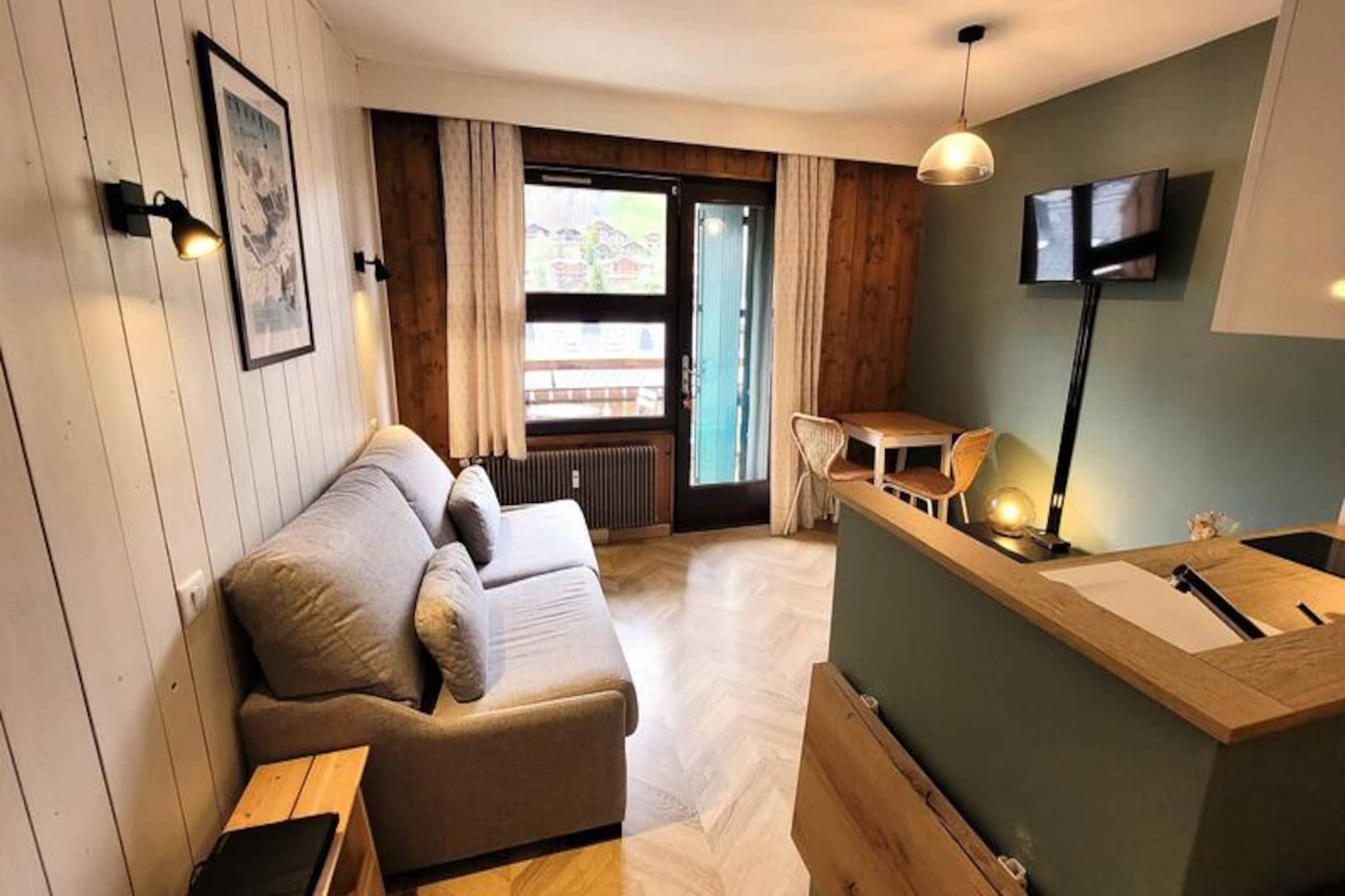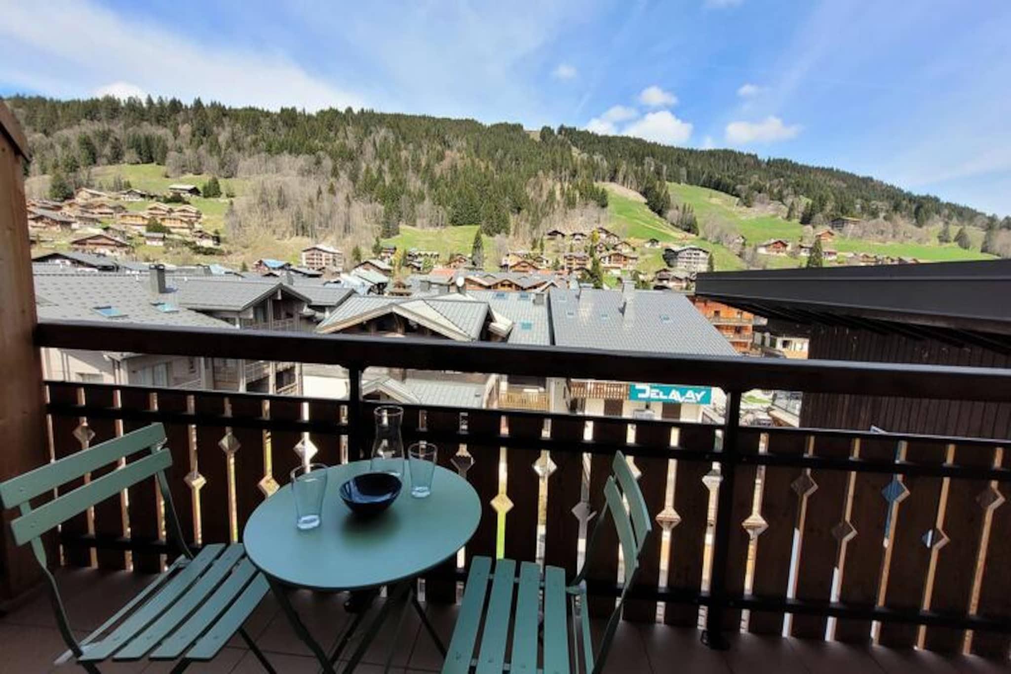 In the heart of the picturesque village of Les Gets, this charming studio offers a perfect retreat for couples seeking an alpine escape. Perched on the 4th floor with elevator access, the space is bathed in natural light thanks to its west-facing orientation. Step out onto the balcony to soak in the mountain views and the warm afternoon sun, a serene spot to unwind after a day of adventure. Whether you're visiting in winter or summer, this cozy haven invites you to experience the magic of the Alps in comfort and style. \n\nThoughtfully designed for two, the studio features a welcoming living area with a comfortable sofa bed and direct access to the balcony. The modern kitchenette is fully equipped with everything you need to prepare meals, including a combination oven, built-in dishwasher, and Nespresso machine. The sleek bathroom boasts a walk-in shower, washing machine, and all the amenities to make your stay effortless. Central oil heating ensures a cozy atmosphere, while the private ski locker adds convenience for winter sports enthusiasts. \n\nLocated just steps from shops, restaurants, and ski slopes, everything you need is within easy reach. The French Ski School (ESF) is only 200 meters away, making it an ideal base for beginners and seasoned skiers alike. In summer, explore the lush alpine trails, indulge in local Savoyard cuisine, or simply relax in the vibrant village atmosphere. With end-of-stay cleaning included, this studio promises a hassle-free and memorable getaway in the heart of Les Gets. \n\nWhether you're here for the thrill of the slopes or the tranquility of the mountains, this delightful studio offers the perfect blend of comfort, convenience, and charm.