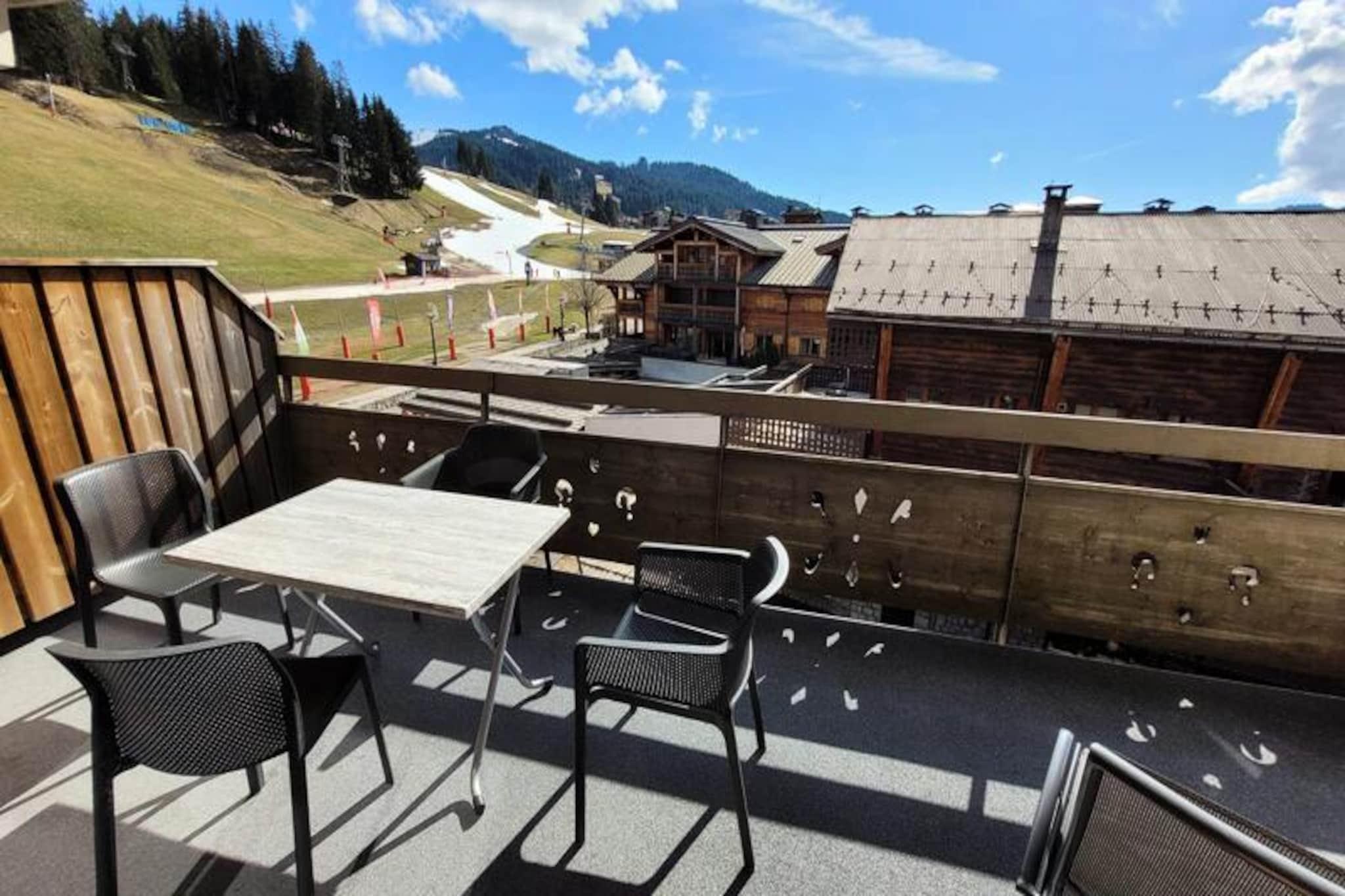 Bathed in sunlight and perched at the heart of the charming village of Les Gets, this delightful apartment offers a truly unbeatable location for your alpine getaway. With the Chavannes ski lifts and ESF ski school just steps away, your days can begin effortlessly on the slopes, while evenings are spent soaking in the breathtaking views from your southwest-facing balcony. Whether you're here for winter sports or summer adventures, this residence promises a seamless blend of convenience and comfort. \n\nInside, the apartment is thoughtfully designed to accommodate up to four guests. The cozy bedroom features twin beds, a television, and ample storage, while the living room boasts a comfortable double sofa bed and a dining area that opens onto the balcony. The fully equipped kitchen, complete with modern appliances such as a dishwasher, oven, and induction hobs, ensures you can prepare delicious meals with ease. A spacious bathroom with a bathtub and shower, along with a separate toilet, adds to the practicality of this inviting space. Central heating, Wi-Fi, and additional amenities like a raclette grill and coffee maker enhance your stay, making it as relaxing as it is memorable. \n\nBeyond the apartment, Les Gets offers a vibrant mix of activities and attractions. From skiing and snowboarding in winter to hiking and cycling in summer, the surrounding area is a paradise for outdoor enthusiasts. Shops, restaurants, and essential services are all within walking distance, while the residence itself provides added perks like a ski locker, covered parking, and shared laundry facilities. \n\nWhether you're seeking thrilling adventures or tranquil moments in the mountains, this apartment is your perfect base. With its prime location, welcoming ambiance, and stunning views, it invites you to create unforgettable memories in the heart of the French Alps.