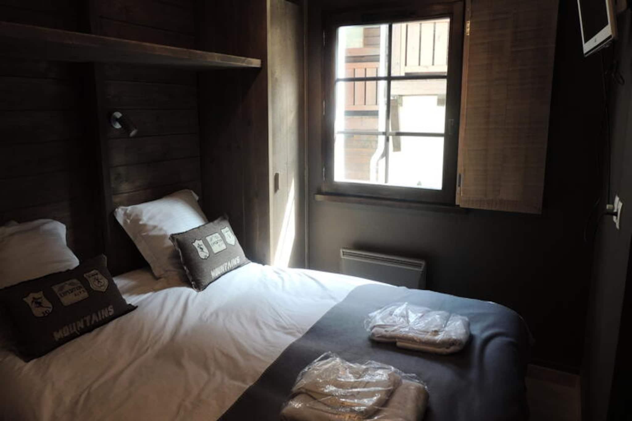 High above the picturesque French Alps, this luxurious residence offers a serene retreat where elegance meets alpine adventure. Imagine waking up to crisp mountain air, stepping onto your private balcony with a steaming cup of coffee, and soaking in panoramic views of snow-capped peaks. Whether you’re here to ski the pristine slopes or simply unwind in the tranquil spa, this property promises an unforgettable escape in every season. Located just 400 meters from the village center and 450 meters from the nearest ski slopes, it’s perfectly positioned for both activity and relaxation. A complimentary shuttle service ensures effortless access to the heart of the action. \n\nInside, the apartment is thoughtfully designed to accommodate up to five guests with a cozy yet spacious layout. The en-suite double bedroom features a plush bed and two charming children’s beds, while the sleeping alcove provides bunk beds and a single bed, ensuring comfort for all. Two modern bathrooms, a fully equipped kitchenette, and a stylish living room with balcony access create a welcoming space to unwind after a day of adventure. Amenities such as Wi-Fi, televisions, and a multifunction oven cater to your every need, while fondue and raclette sets add a touch of local flavor to your evenings. \n\nThe residence boasts exceptional shared facilities, including heated indoor and outdoor pools, a sauna, hammam, and fitness room, perfect for rejuvenating your body and mind. A secure garage and ski locker add convenience for winter sports enthusiasts. In summer, the outdoor pool becomes a sunlit haven, and the surrounding trails invite exploration of the breathtaking alpine landscape. \n\nWhether you’re seeking thrilling slopes, peaceful spa days, or simply a cozy mountain retreat, this property offers the perfect balance of luxury and adventure. Let the charm of the French Alps inspire your next getaway.