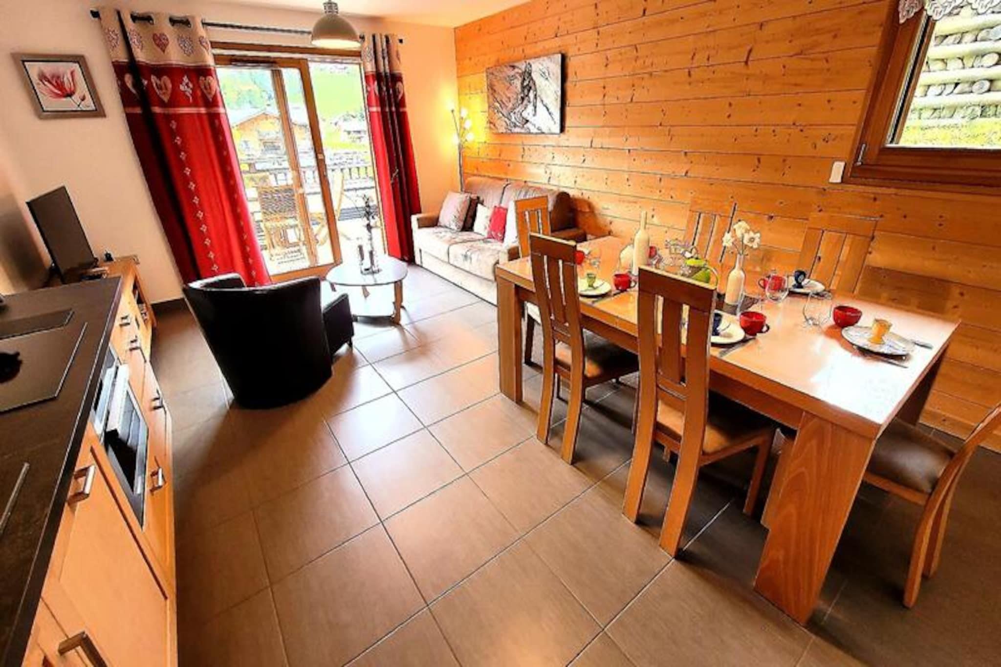 In a serene hamlet perched above the bustling resort, this charming residence offers an idyllic alpine escape with sweeping views of the surrounding ski area. Whether you're seeking a tranquil retreat or an adventure-filled getaway, this bright and inviting 55 m² apartment is the perfect base for your mountain holiday. With its southeast orientation, the apartment is bathed in natural light throughout the day, creating a warm and welcoming atmosphere for your stay. The apartment comfortably accommodates up to four guests, featuring two cozy double bedrooms, each equipped with storage and a television for added convenience. The modern bathroom includes a shower and heated towel rail, while the separate toilet adds practicality. The open-plan living area, seamlessly connected to the kitchen and dining space, leads to a spacious 11.84 m² terrace. Here, you can savor your morning coffee or enjoy alfresco meals while taking in the breathtaking alpine vistas. The apartment is thoughtfully equipped with amenities such as Wi-Fi, a dishwasher, a raclette grill, and even a washing machine, ensuring a hassle-free stay. Located just 750 meters from the resort center and 650 meters from the nearest shops, the residence strikes the perfect balance between seclusion and accessibility. A shuttle stop only 50 meters away provides easy access to the Perrières and Chavannes ski slopes, as well as the ESF ski school, both just 1 kilometer from your doorstep. In summer, the area transforms into a haven for hikers and nature lovers, with trails and activities to suit all tastes. Whether you're visiting in winter or summer, this apartment promises a memorable stay in the heart of the French Alps. With its blend of comfort, charm, and convenience, it’s an ideal choice for families or friends looking to create lasting memories in a stunning mountain setting.