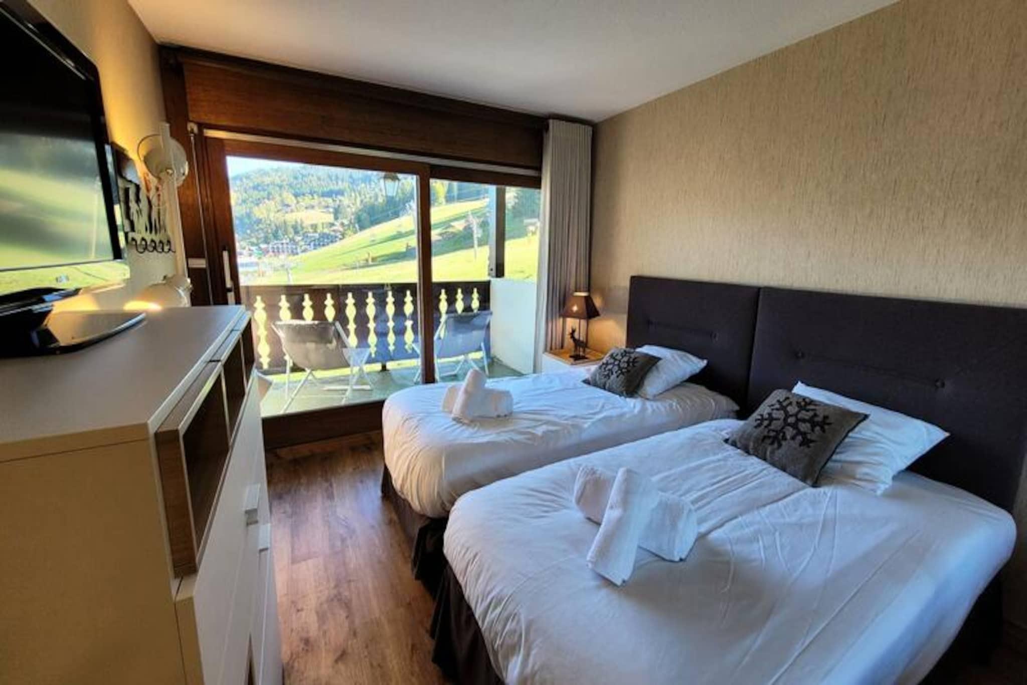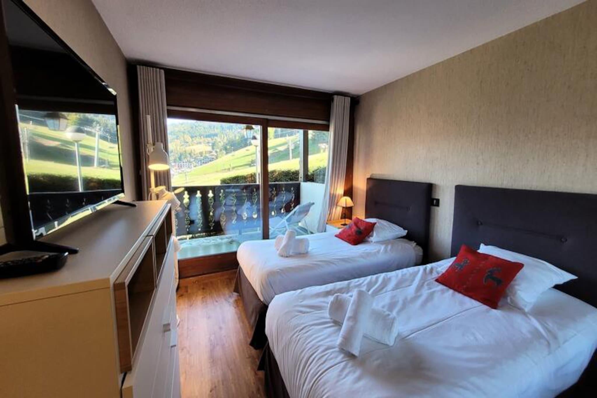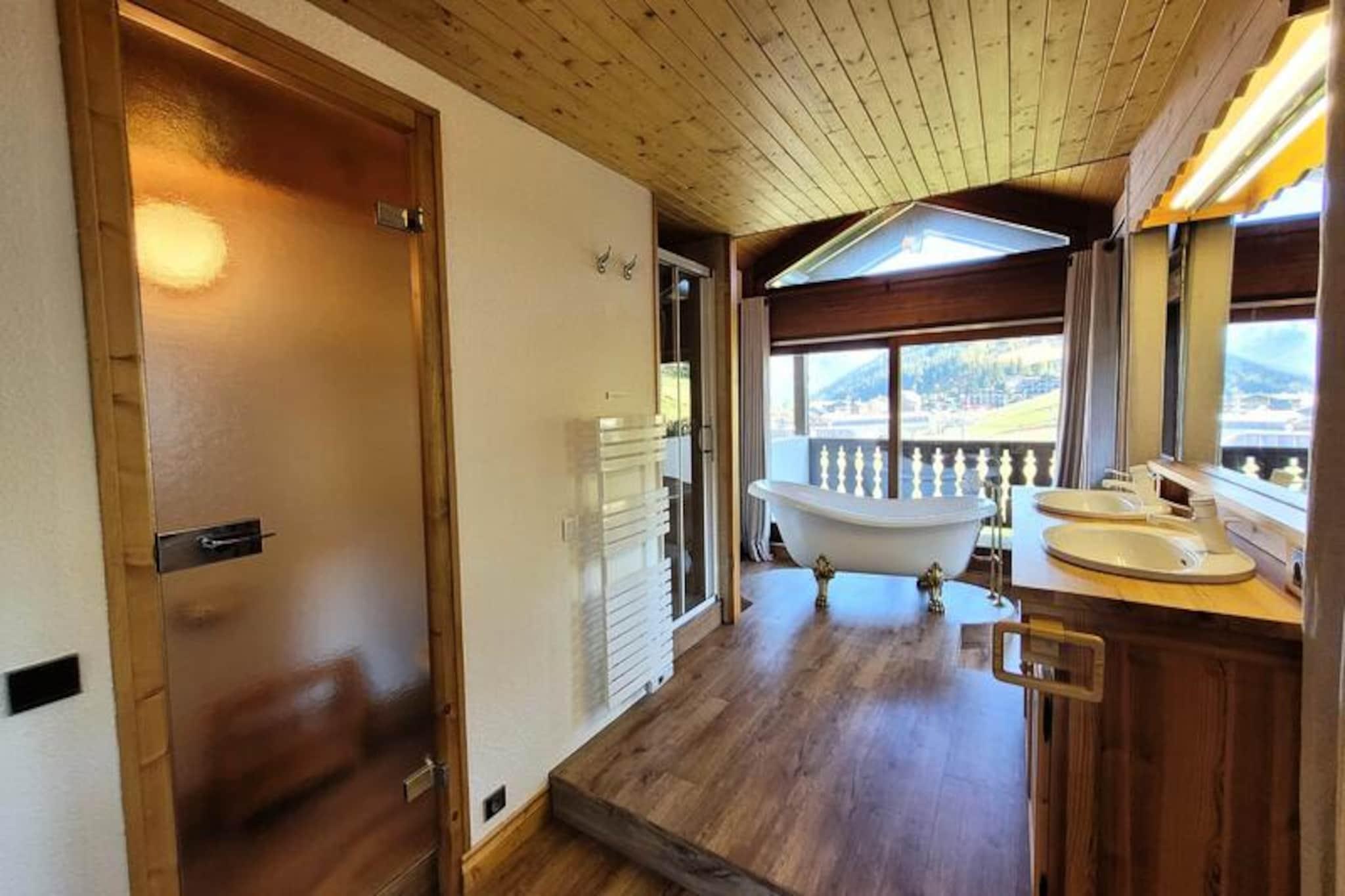 Imagine waking up to the serene beauty of the French Alps, where the crisp mountain air greets you and the slopes of Chavannes lie just outside your door. This exceptional 198 m² apartment, located at the foot of the ski slopes, offers the ultimate ski-in/ski-out experience, combining alpine charm with modern luxury. Nestled in the heart of the village, this residence is a peaceful retreat while being just steps away from shops, restaurants, and all the amenities you could need for a perfect mountain escape. Step inside and discover a bright and spacious living area, bathed in natural light thanks to its East-Southwest exposure. The apartment is thoughtfully designed to accommodate up to 10 guests, featuring four en-suite bedrooms, each with its own bathroom, ensuring both comfort and privacy. The fully equipped kitchen opens onto a welcoming dining area, perfect for sharing meals after a day on the slopes. Eight balconies provide breathtaking panoramic views of the resort and surrounding peaks, inviting you to savor every moment of your alpine getaway. The location is unparalleled, with the ski slopes literally at your doorstep and the vibrant village center just 50 meters away. The French Ski School (ESF) is a short 280-meter stroll, and essential services like a doctor’s office are within easy reach. Whether you’re skiing in winter or exploring mountain trails in summer, this apartment is the ideal base for unforgettable adventures. With its blend of tranquility, convenience, and luxurious amenities, this property promises a holiday experience like no other. From the cozy interiors to the stunning outdoor vistas, every detail has been designed to create lasting memories in the heart of the Alps.