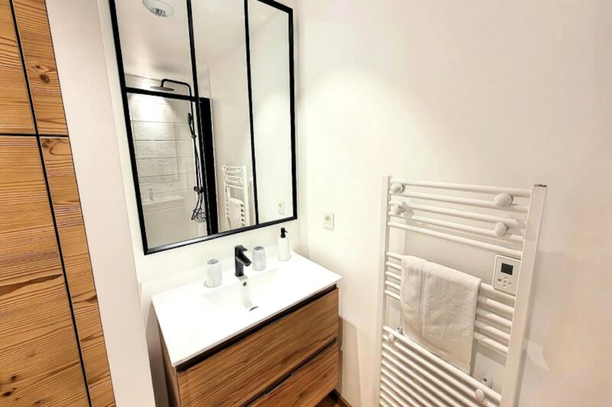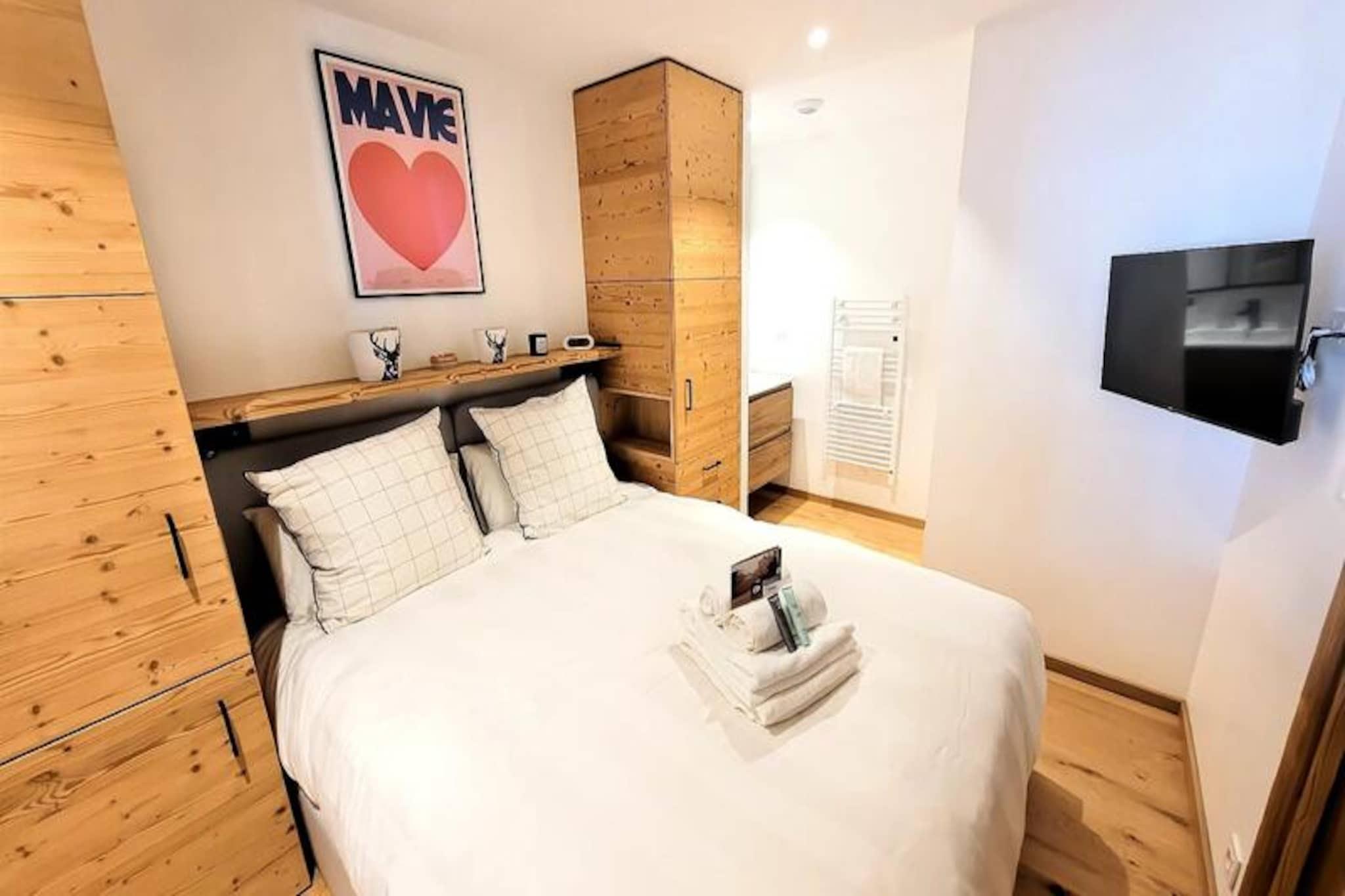 In the heart of the charming French Alps, this modern and elegant apartment in the Flocon Bleu residence offers a serene retreat just steps from the vibrant market square. Built in 2025, the property combines contemporary design with alpine charm, creating a welcoming atmosphere for families and groups seeking a memorable mountain escape. From the moment you step inside, the refined decor, generous spaces, and high-quality materials make you feel right at home. The residence is nestled in a peaceful area yet remains conveniently close to all amenities, ensuring both tranquility and accessibility. The apartment comfortably accommodates up to six guests, featuring two spacious bedrooms, including a luxurious master suite with an en-suite bathroom, and a versatile third sleeping area. The open-plan living room is thoughtfully designed, with a fully equipped kitchen, dining area, and a cozy lounge that opens onto a private terrace. Here, you can unwind with a cup of coffee while soaking in the crisp alpine air. Modern conveniences such as a washer-dryer, fiber optic Wi-Fi, and individual heat pump heating ensure a comfortable stay year-round. Additional amenities include underground parking and a private ski locker, making it an ideal base for winter sports enthusiasts. Located just 400 meters from the nearest ski slopes and the French Ski School (ESF), this property is perfect for those eager to hit the pistes. A short stroll takes you to local shops, restaurants, and the shuttle stop, while the surrounding area offers endless opportunities for outdoor adventures, from skiing and snowboarding in winter to hiking and cycling in summer. After a day of exploration, return to the comfort of your alpine haven, where every detail has been designed to enhance your stay. Whether you're seeking thrilling mountain activities or a peaceful retreat, this apartment in Flocon Bleu invites you to slow down, savor the seasons, and create lasting memories in the heart of the Alps.
