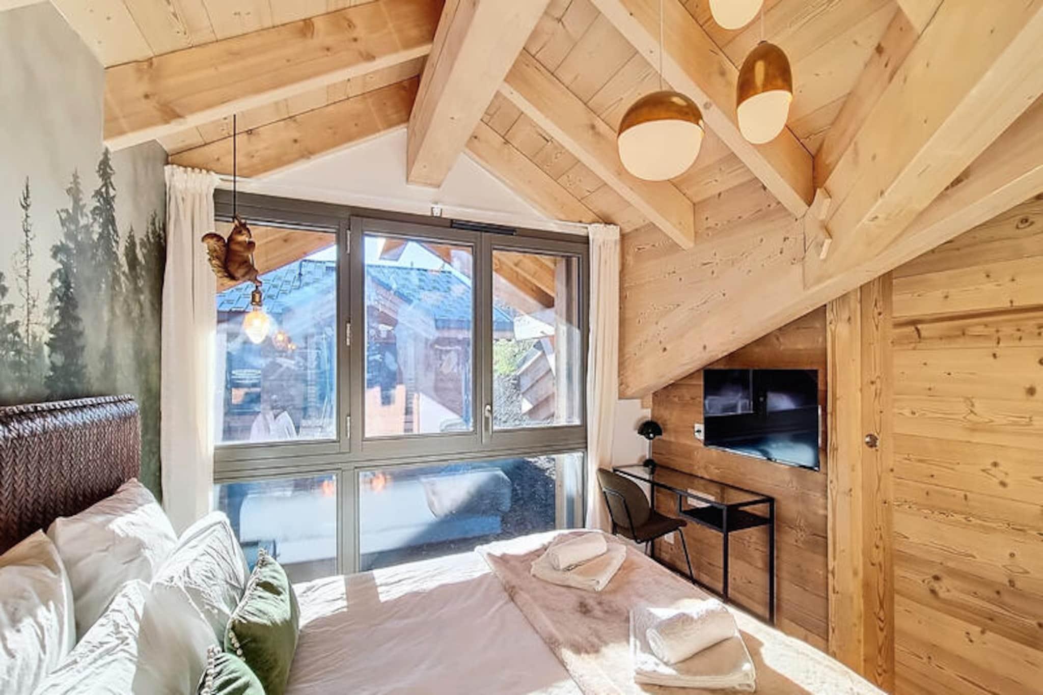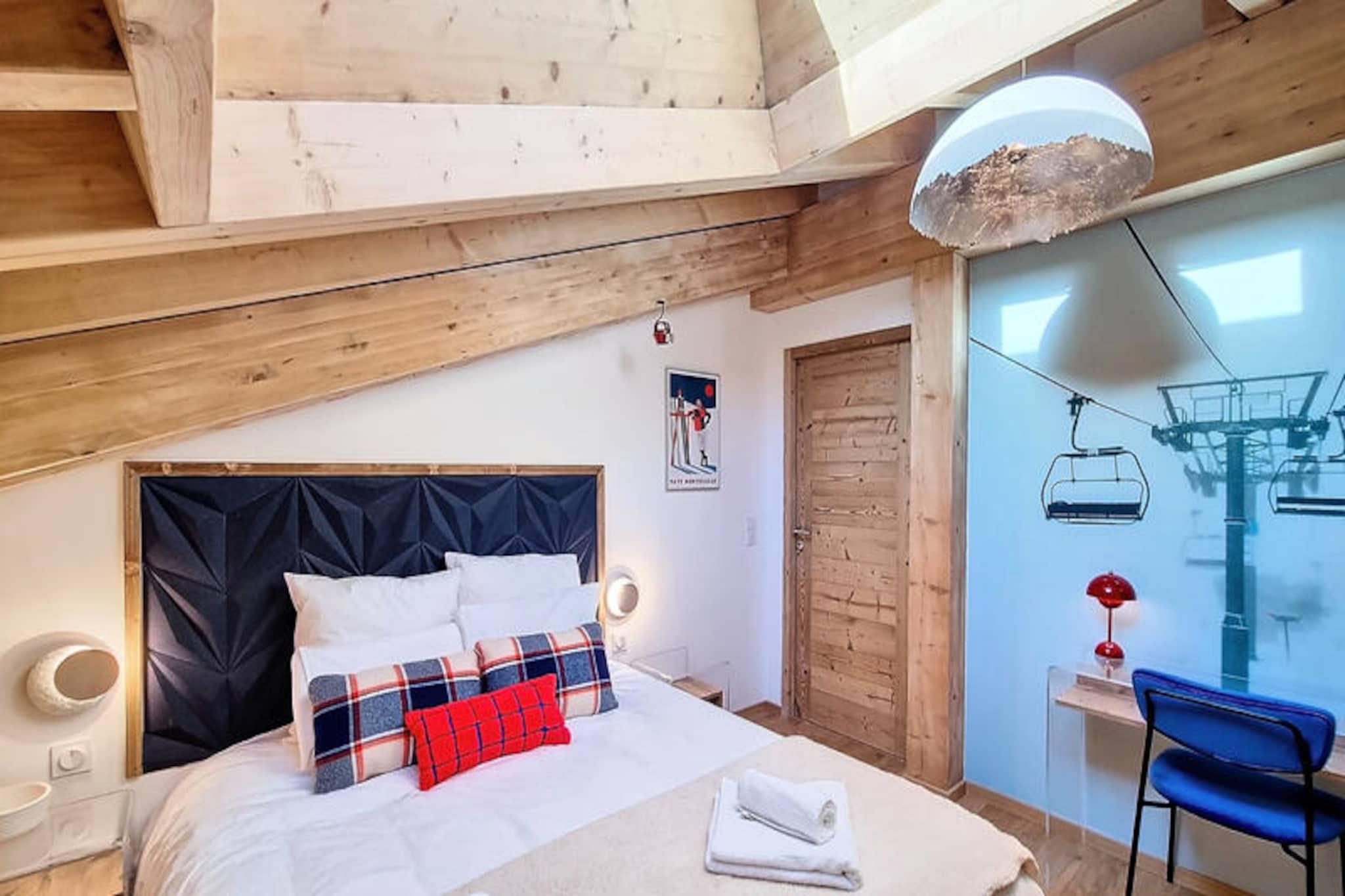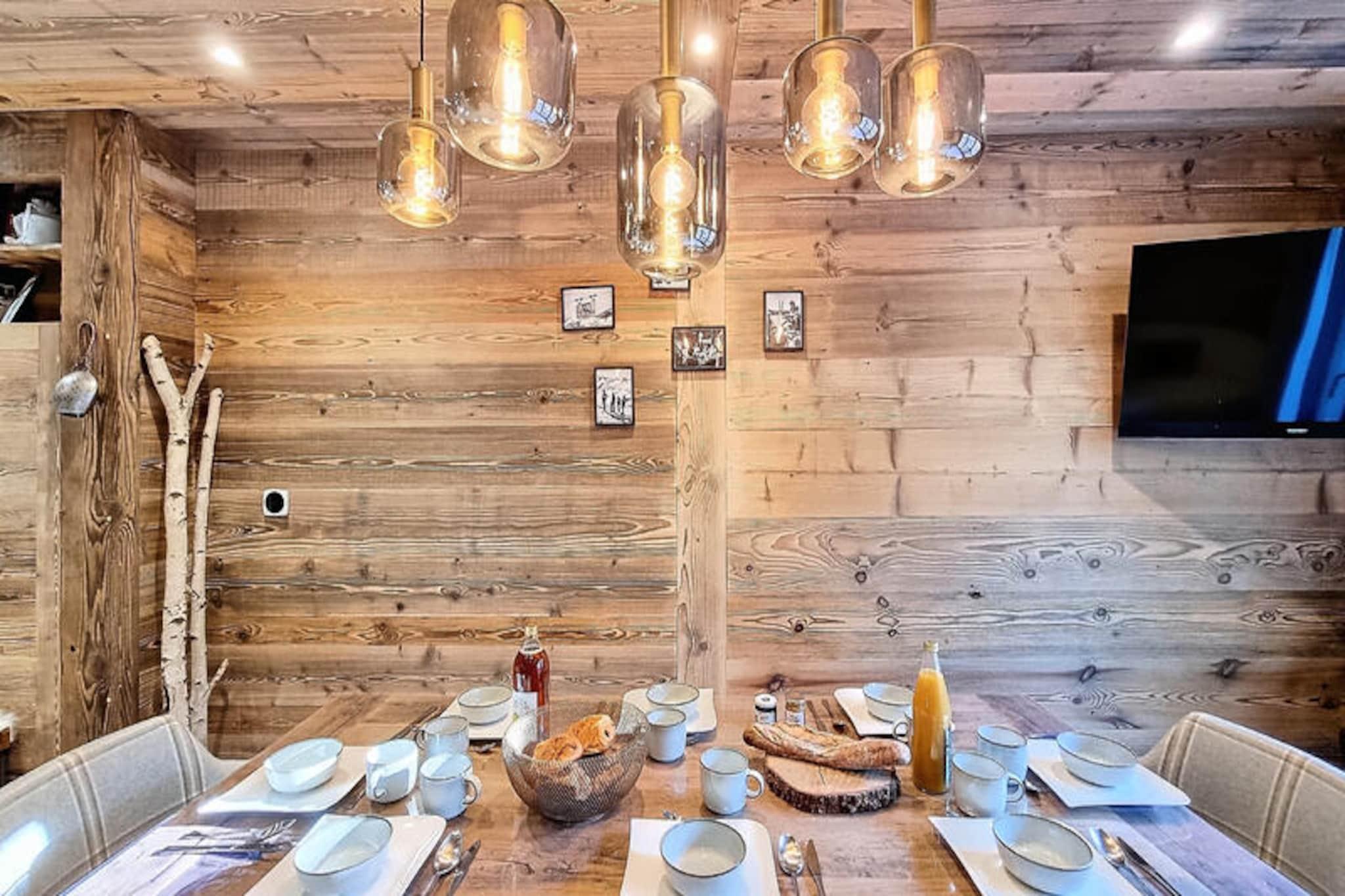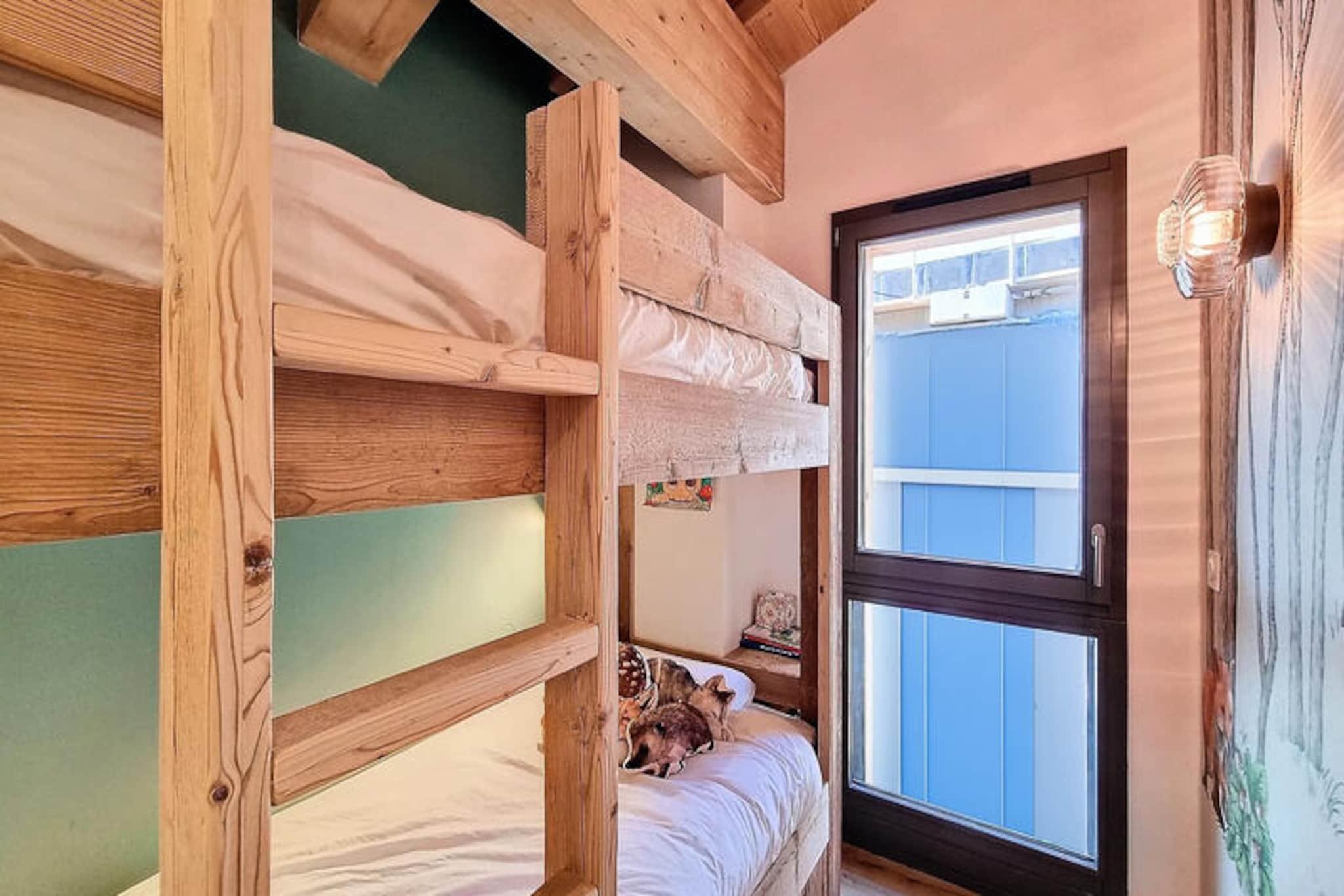 In the heart of the charming Les Gets ski resort, this beautifully designed 100 m² apartment offers a warm and inviting retreat for your mountain holiday. Surrounded by the breathtaking landscapes of the French Alps, this property combines modern comfort with alpine charm, creating the perfect setting for unforgettable family moments. Whether you're here to carve through pristine slopes or simply relax in a serene environment, this home is your gateway to a magical winter or summer escape. \n\nThe apartment comfortably accommodates up to 8 guests across 4 thoughtfully arranged bedrooms. Two double bedrooms feature en-suite bathrooms for added privacy, while a third double bedroom and a cozy cabin room with bunk beds share a spacious shower room. Each double bedroom is equipped with its own television, and all bathrooms are fitted with hairdryers for your convenience. The open-plan kitchen is fully equipped, boasting a refrigerator, dishwasher, microwave, raclette grill, and fondue set—perfect for preparing hearty alpine meals. Additional amenities include a washing machine, two ski storage spaces, and a cellar, ensuring a hassle-free stay. The property also offers a two-space underground garage and complimentary Wi-Fi.\n\nIdeally located just 50 meters from the market square and less than 200 meters from the supermarket and local shops, this apartment places you at the heart of Les Gets' vibrant village life. The ski lifts are an easy 8-minute walk away, while a nearby shuttle stop provides convenient access to Alta Lumina, a magical light and sound experience. Whether you're exploring the slopes, strolling through the village, or enjoying the region's culinary delights, everything you need is within reach.\n\nChoose this delightful apartment for your next alpine getaway and create cherished memories in the enchanting surroundings of Les Gets. With its blend of comfort, style, and unbeatable location, it's the perfect home base for your mountain adventures.