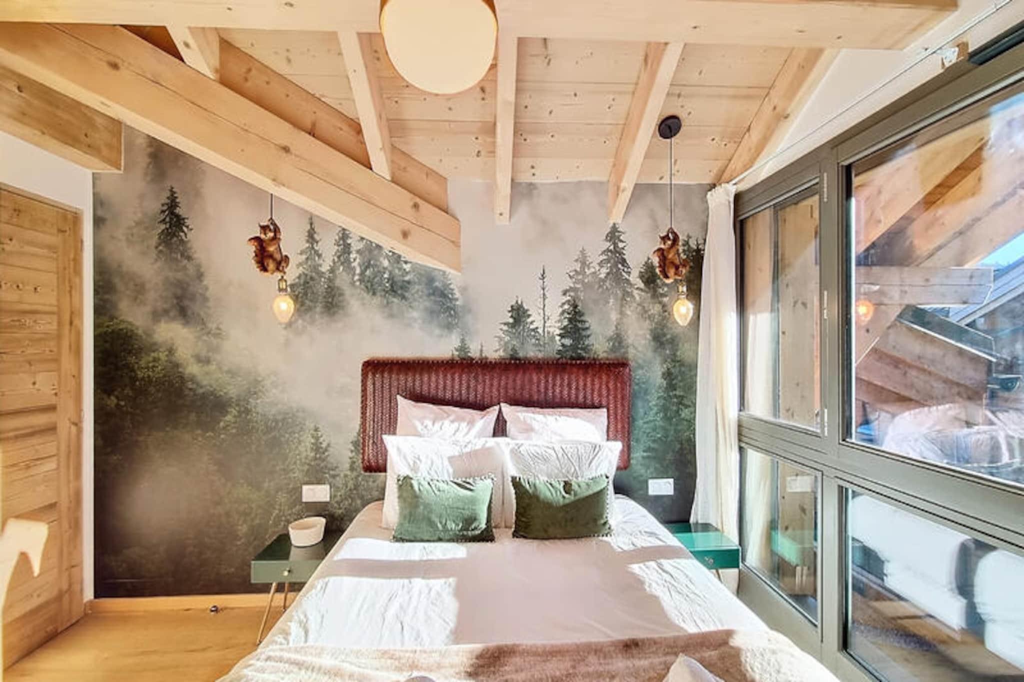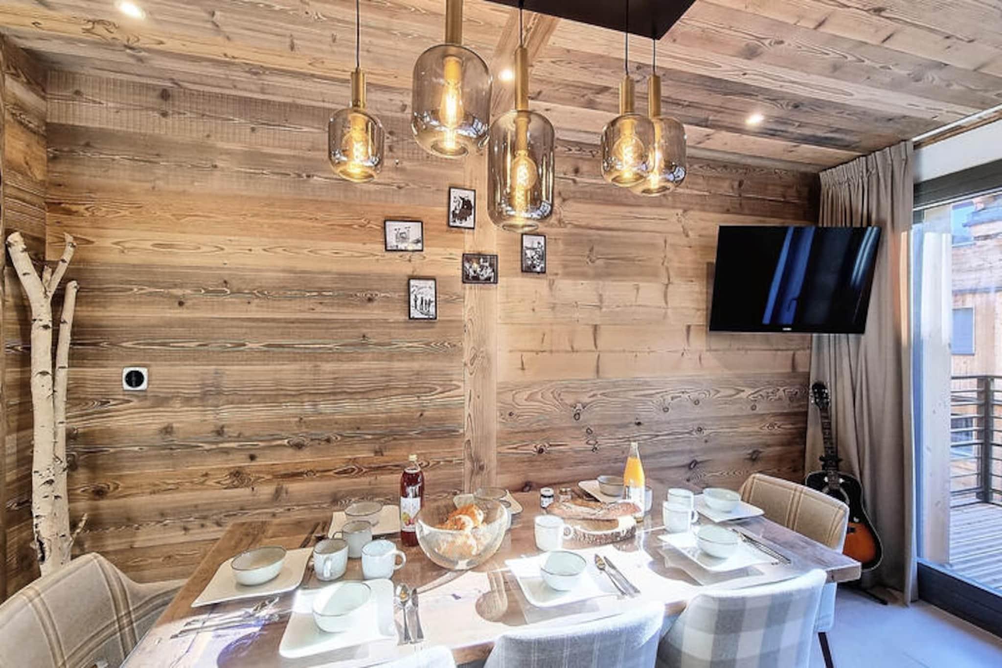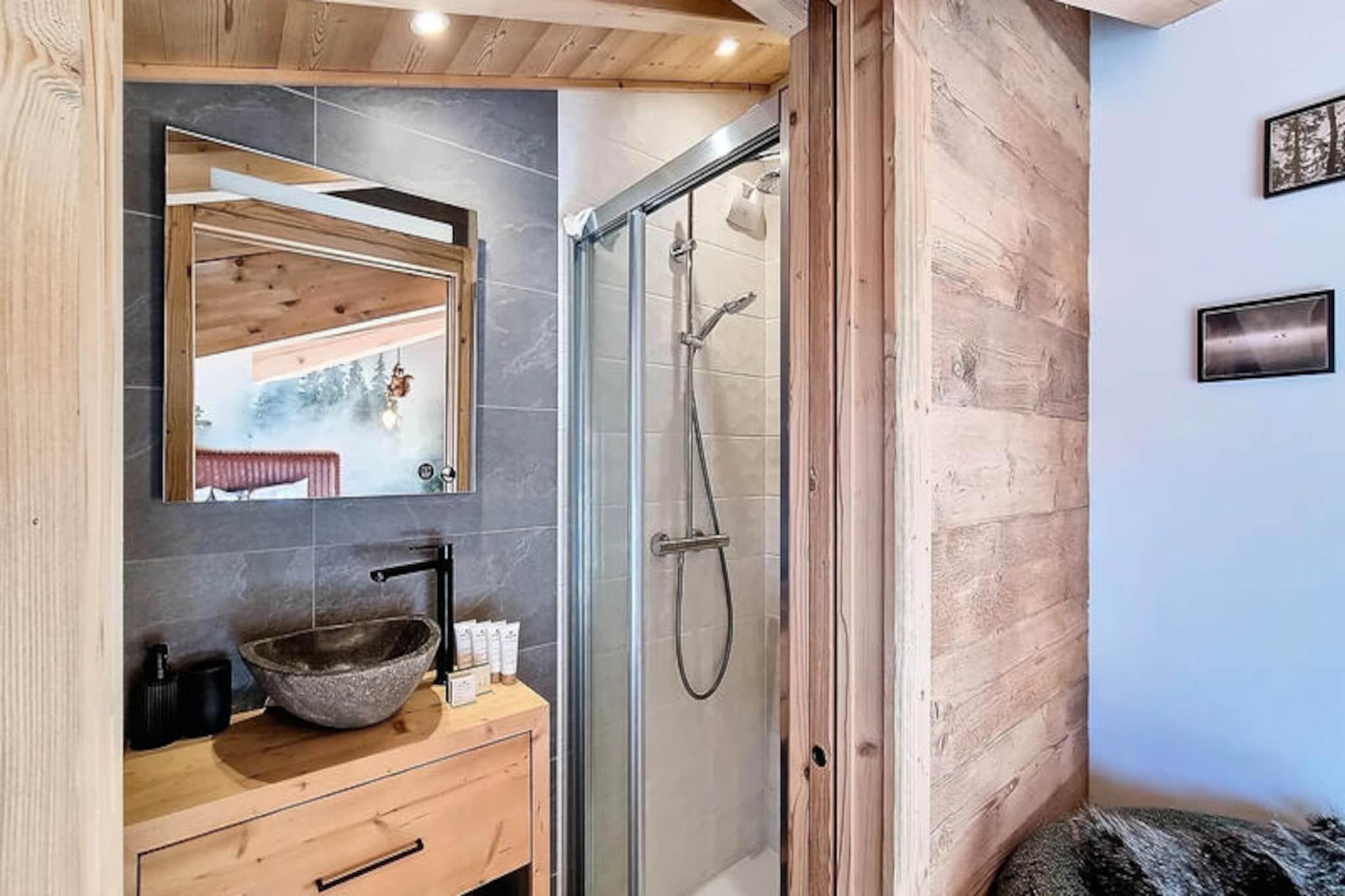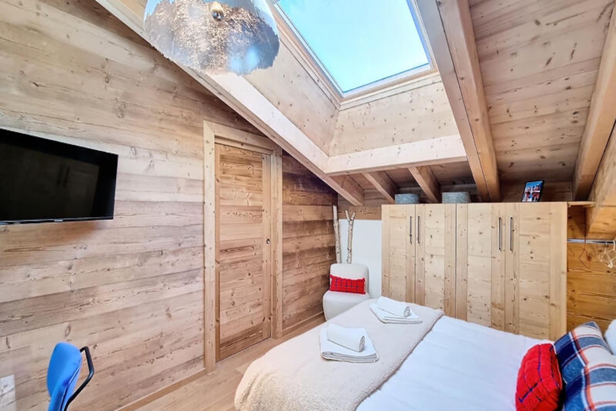 In the heart of the charming Les Gets ski resort, this beautifully designed 100 m² apartment offers a warm and inviting retreat for your mountain holiday. Surrounded by the breathtaking landscapes of the French Alps, this property combines modern comfort with alpine charm, creating the perfect setting for unforgettable family moments. Whether you're here to carve through pristine slopes or simply relax in a serene environment, this home is your gateway to a magical winter or summer escape. \n\nThe apartment comfortably accommodates up to 8 guests across 4 thoughtfully arranged bedrooms. Two double bedrooms feature en-suite bathrooms for added privacy, while a third double bedroom and a cozy cabin room with bunk beds share a spacious shower room. Each double bedroom is equipped with its own television, and all bathrooms are fitted with hairdryers for your convenience. The open-plan kitchen is fully equipped, boasting a refrigerator, dishwasher, microwave, raclette grill, and fondue set—perfect for preparing hearty alpine meals. Additional amenities include a washing machine, two ski storage spaces, and a cellar, ensuring a hassle-free stay. The property also offers a two-space underground garage and complimentary Wi-Fi.\n\nIdeally located just 50 meters from the market square and less than 200 meters from the supermarket and local shops, this apartment places you at the heart of Les Gets' vibrant village life. The ski lifts are an easy 8-minute walk away, while a nearby shuttle stop provides convenient access to Alta Lumina, a magical light and sound experience. Whether you're exploring the slopes, strolling through the village, or enjoying the region's culinary delights, everything you need is within reach.\n\nChoose this delightful apartment for your next alpine getaway and create cherished memories in the enchanting surroundings of Les Gets. With its blend of comfort, style, and unbeatable location, it's the perfect home base for your mountain adventures.