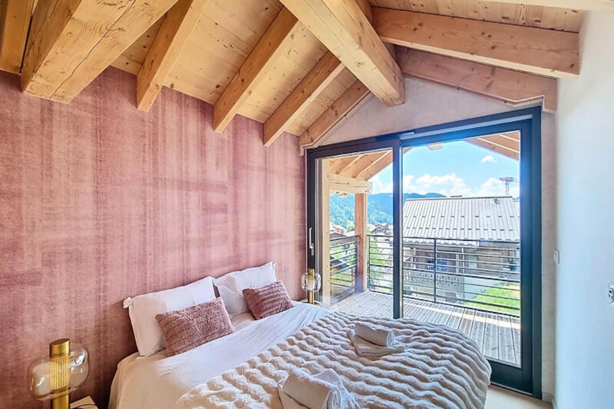 In the heart of the picturesque village of Les Gets, this stunning 90m² apartment offers a harmonious blend of modern elegance and alpine charm, creating the perfect retreat for families and groups of up to eight people. Imagine waking up to the crisp mountain air, surrounded by breathtaking views of the French Alps, and stepping into a world of relaxation and adventure. Whether you’re here for winter sports or summer hikes, this property promises an unforgettable escape. \n\nThe apartment boasts four beautifully designed bedrooms, including one with a cozy bunk bed and three with plush double beds, ensuring restful nights for all. With three bathrooms—two featuring showers and one with a luxurious bathtub—you’ll find ample space for unwinding after a day of exploring. The open-plan American-style kitchen is fully equipped with modern appliances, including a refrigerator, freezer, dishwasher, oven, microwave, coffee maker, and kettle, making it easy to prepare hearty meals to enjoy in the inviting dining area. Wi-Fi and private parking add to the convenience, while the elegant furnishings create a warm and welcoming atmosphere. \n\nJust 280 meters from Carrefour Montagne and 550 meters from the Chavannes gondola, the apartment’s prime location ensures easy access to shops, ski lifts, and public transportation. Les Gets itself is a vibrant village with a rich alpine heritage, offering a variety of restaurants, boutiques, and activities for every season. In winter, the slopes beckon with pristine snow, while summer transforms the region into a haven for hikers and cyclists. \n\nWhether you’re seeking thrilling adventures or peaceful moments surrounded by nature, this apartment is your gateway to the best of Les Gets. With its thoughtful amenities and unbeatable location, it’s the ideal choice for creating cherished memories in the heart of the Alps.