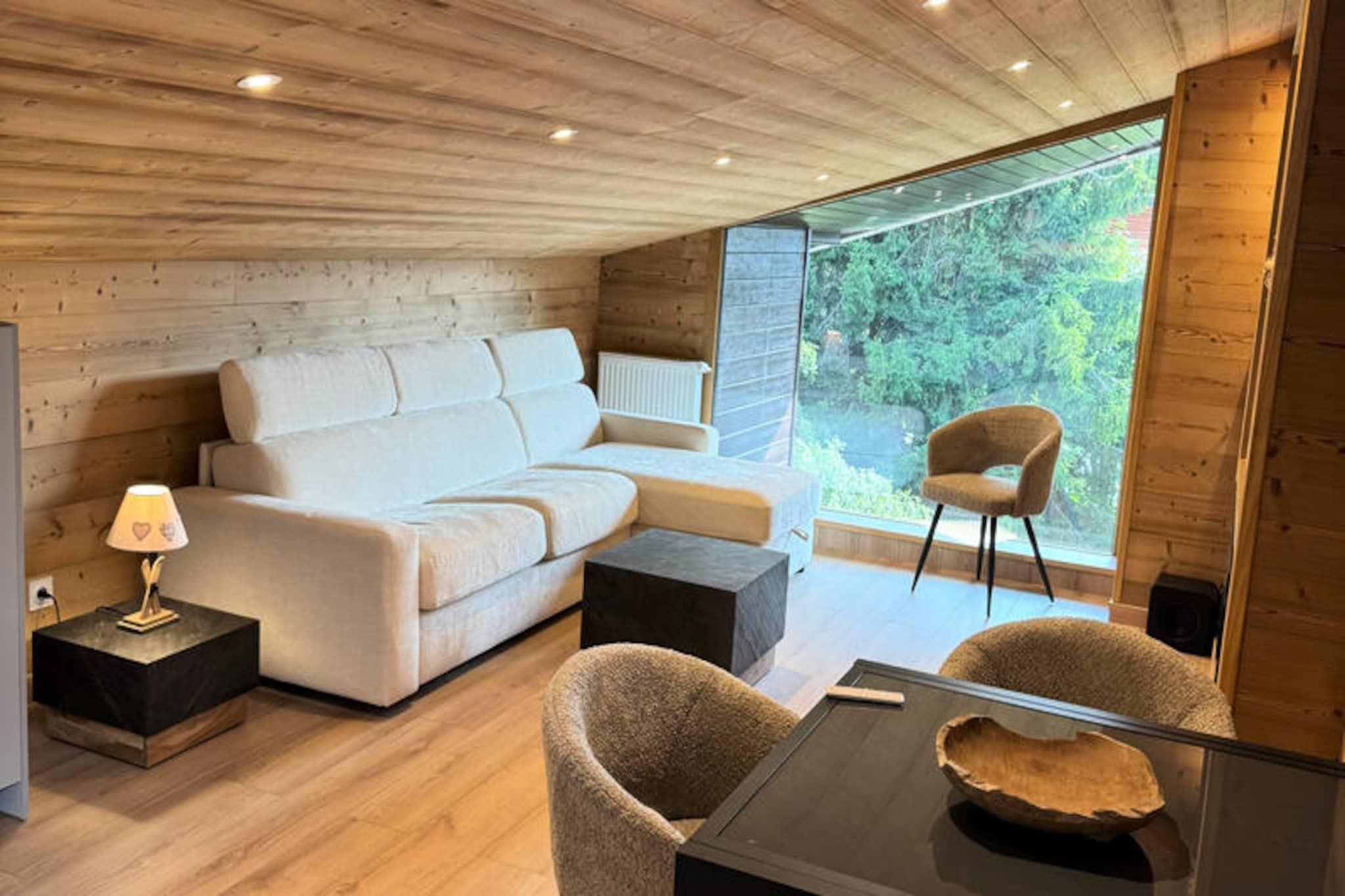 In the heart of the charming village of Les Gets, this top-floor apartment offers a serene mountain escape with breathtaking views of the surrounding peaks. Whether you're seeking a romantic retreat or a family getaway, this cozy haven combines modern comfort with alpine charm, ensuring an unforgettable stay in the French Alps. Step inside this recently renovated 40m² apartment, where every detail has been thoughtfully designed for your comfort. The living room features an electric fireplace, perfect for unwinding after a day on the slopes, and air conditioning for summer stays. The fully equipped kitchen invites you to prepare delicious meals with its modern appliances, including an oven, microwave, Nespresso machine, and dishwasher. The bedroom boasts a plush queen-size bed, while the living room sofa bed accommodates additional guests, making it ideal for up to four people. A smart TV with Canal+, WiFi, and even a PlayStation 5 add entertainment options for cozy evenings indoors. Located just steps from the ski and bike slopes, this apartment is a dream for outdoor enthusiasts. For those who prefer a leisurely pace, the village's shops, cafes, and restaurants are all within easy reach. Additional conveniences include a reserved parking space in the nearby Chavannes underground car park, communal storage for ski equipment or bikes, and secure bicycle storage at a partner shop next door. With its blend of comfort, convenience, and stunning alpine scenery, this apartment in Les Gets is the perfect base for your next mountain adventure. From skiing and biking to simply soaking in the village's charm, every moment here is designed to create lasting memories.