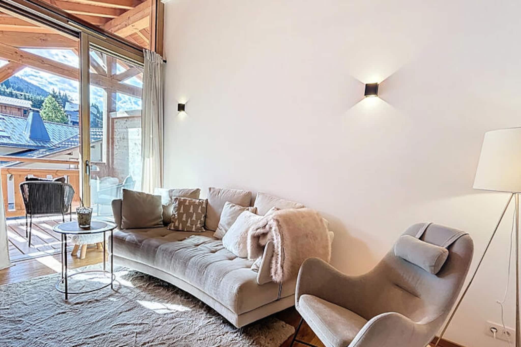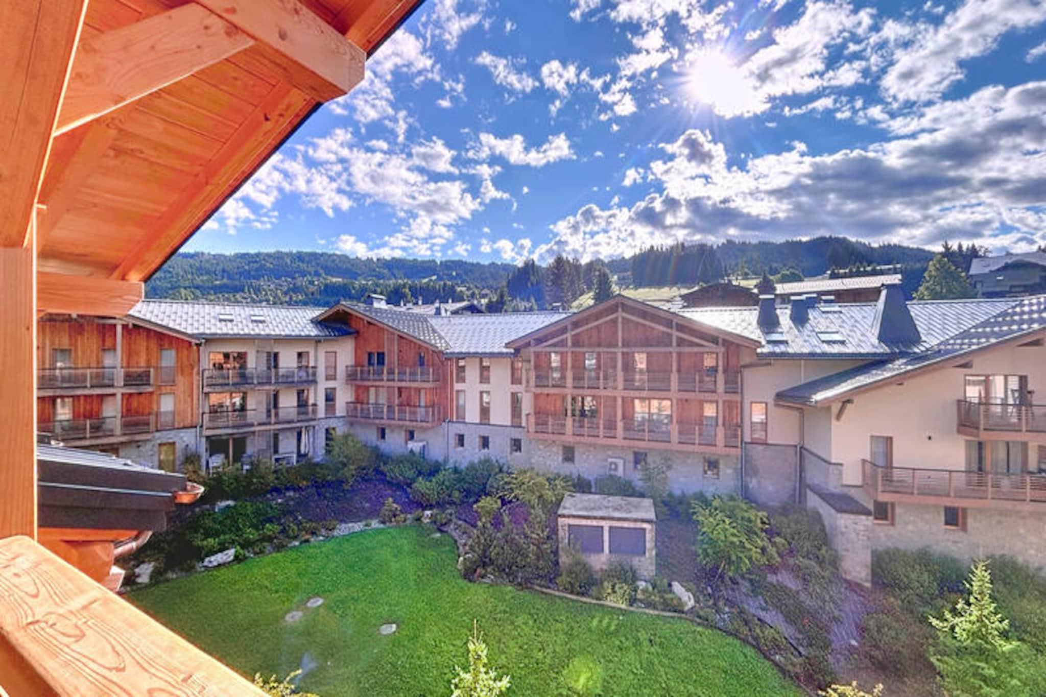In the heart of the charming Les Gets village, this contemporary 40 m² apartment invites you to experience the perfect blend of comfort and Alpine allure. With its prime location in a newly built residence, complete with an elevator, this cozy retreat offers breathtaking views of the surrounding mountains and ski slopes from its private balcony. Whether you're planning a romantic getaway or a family holiday, this apartment, accommodating up to four guests, ensures a warm and welcoming stay at the foot of the slopes. Inside, you'll find a thoughtfully designed space featuring a comfortable double bedroom, a bright living area with an open-plan kitchen, and all the modern amenities you need for a relaxing holiday. The fully equipped American-style kitchen with an induction hob makes meal preparation a breeze, while conveniences such as Wi-Fi, a television, a washing machine, a dryer, and heat pump heating add to your comfort. The apartment also includes garden furniture and a private garage, ensuring both practicality and ease during your stay. Step outside, and you'll find yourself just 300 meters from the Chavannes chairlift, making it effortless to hit the slopes. For those seeking relaxation, the renowned \
