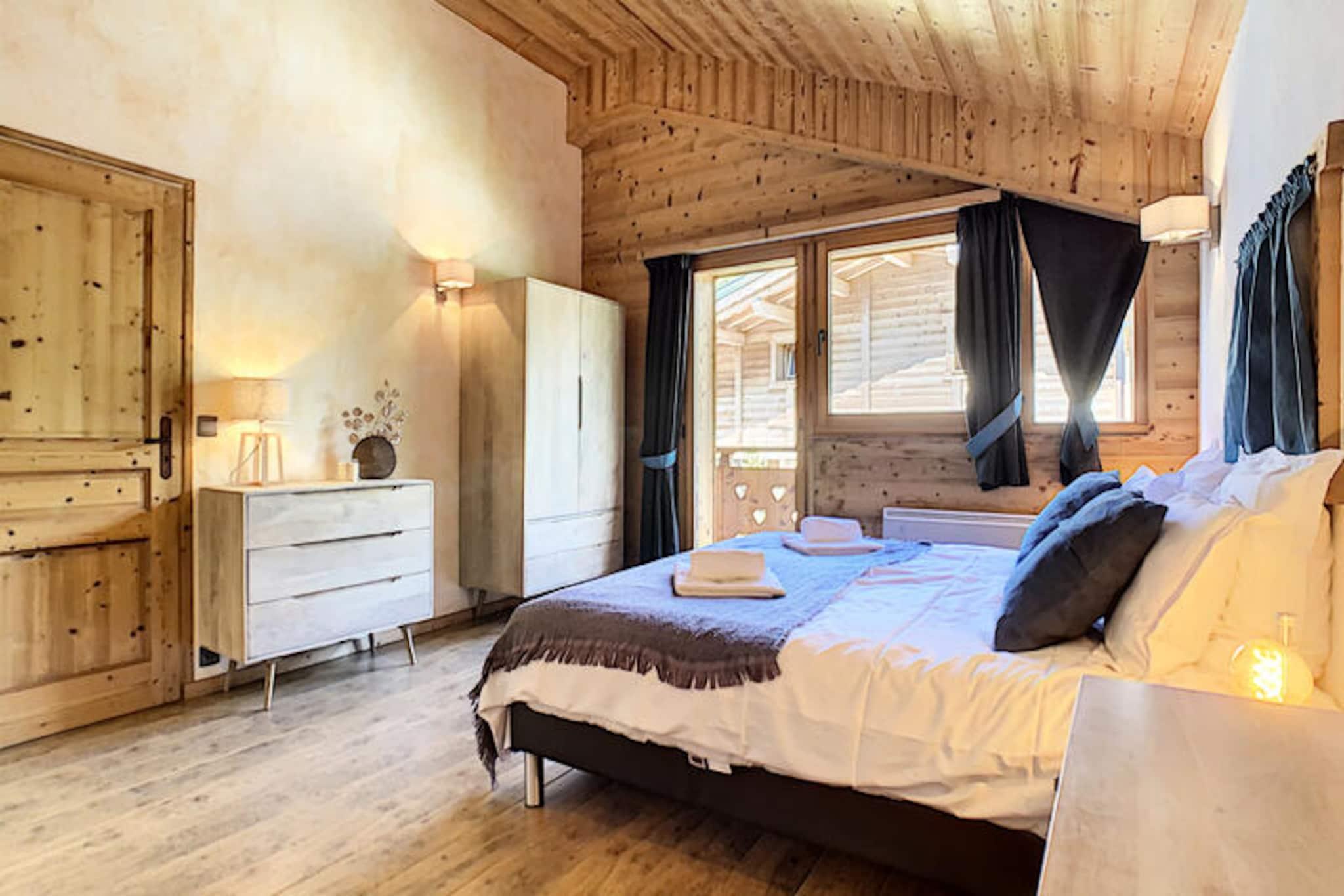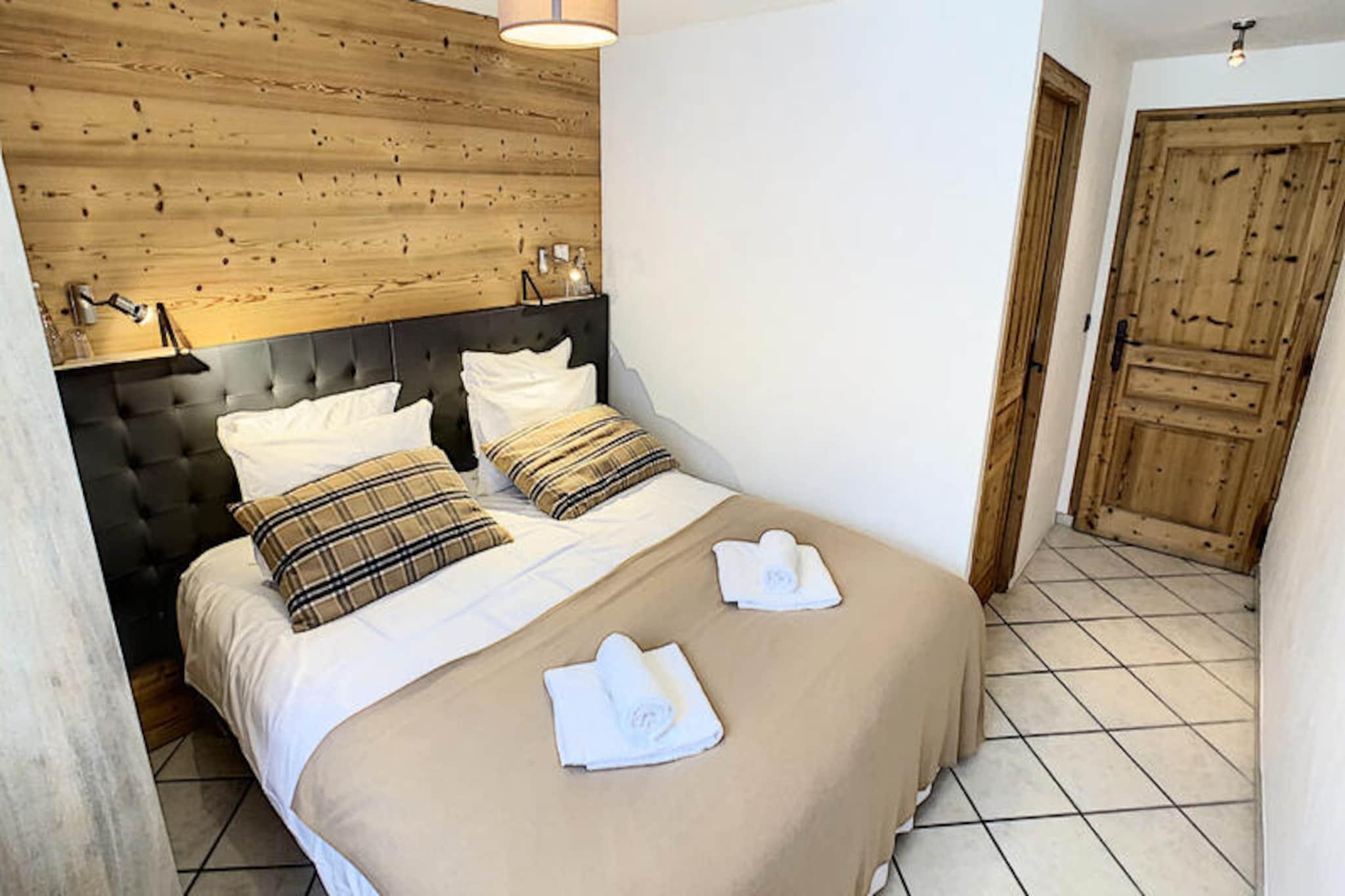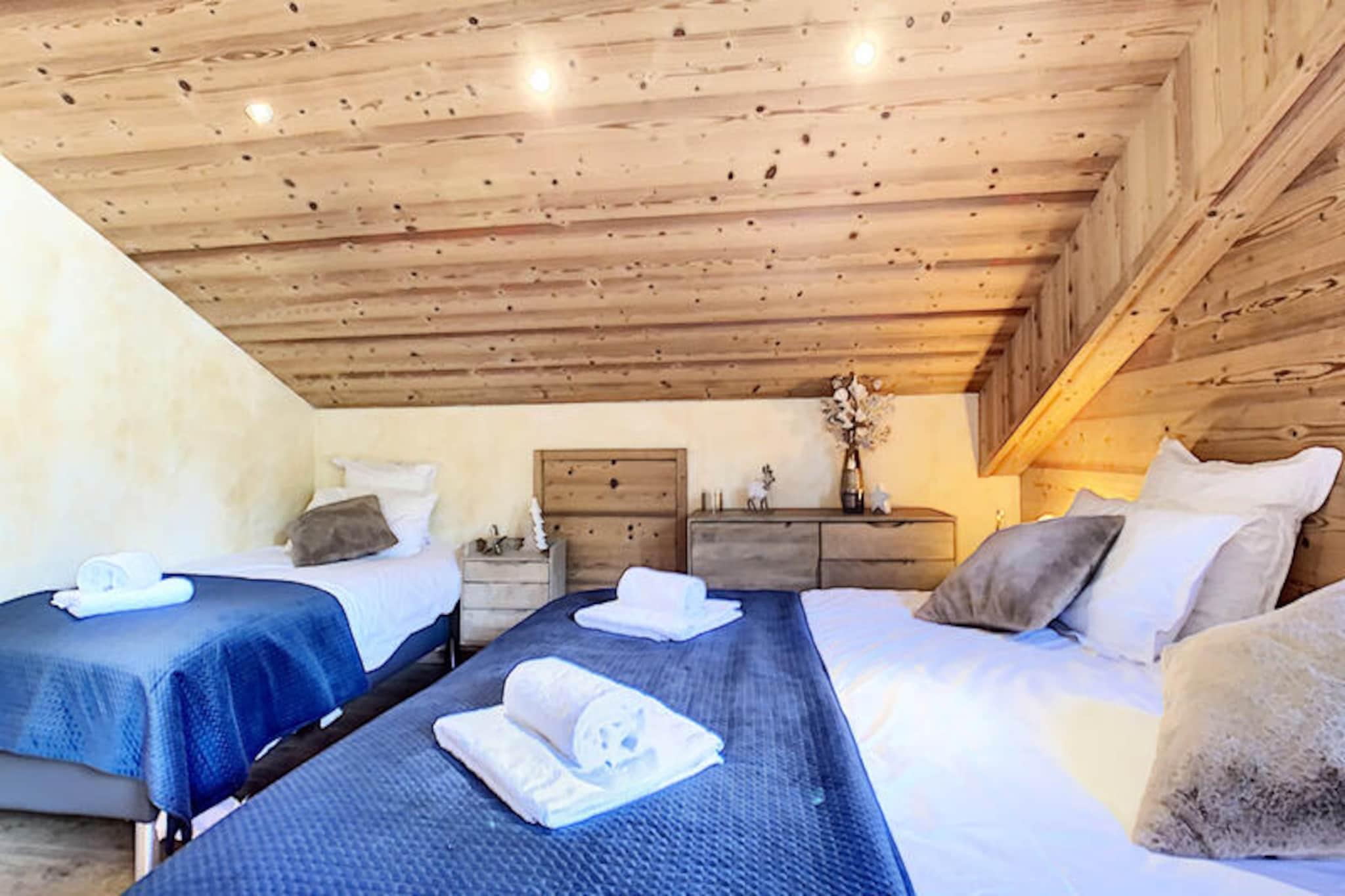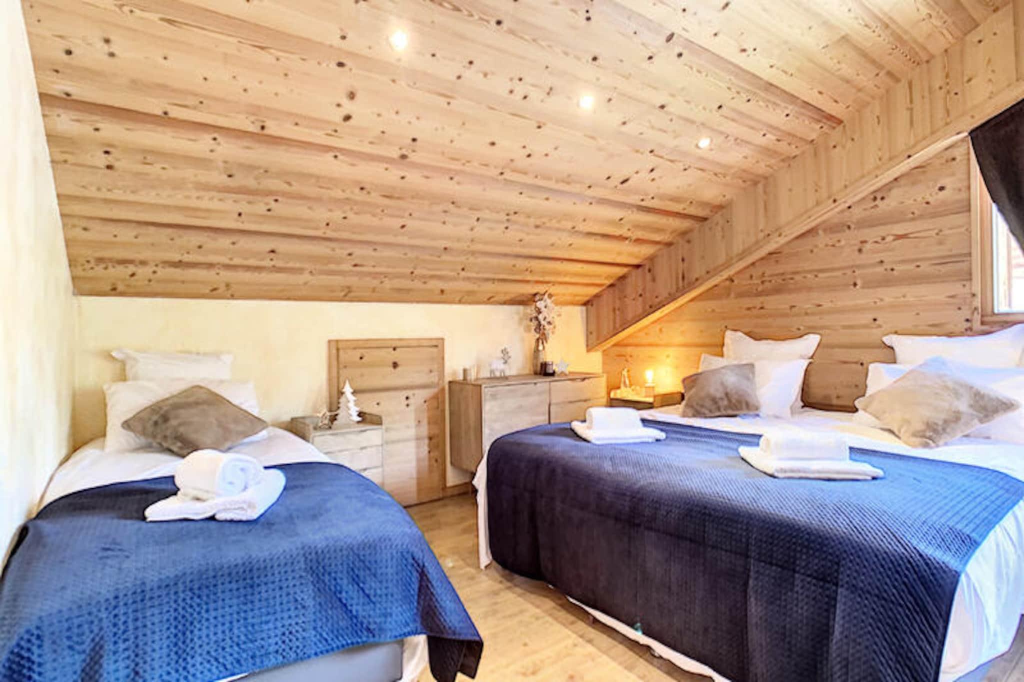 This spacious 100 m² apartment in Les Gets offers an exceptional stay for up to 10 people, featuring 5 rooms and 4 bedrooms. It includes a large living room with a fireplace, a terrace with mountain views, and a fully equipped open kitchen. The 4 bedrooms are elegantly designed, each with its own bathroom. Double beds can be converted into singles for flexibility, and bedrooms 3 and 4 also have an additional single bed. The apartment also offers private parking and Wi-Fi. Situated directly opposite the slopes, this property provides easy access to skiing and the surrounding mountain activities. The serene location allows guests to enjoy peaceful moments on the terrace or indulge in the wellness area, which includes a jacuzzi and sauna for ultimate relaxation after a day on the slopes. The apartment's kitchen is fully equipped with everything needed for preparing meals, and the living area is designed for comfort with a cozy lounge and television. The modern amenities, along with the wellness facilities, make it an ideal spot for both relaxation and adventure.