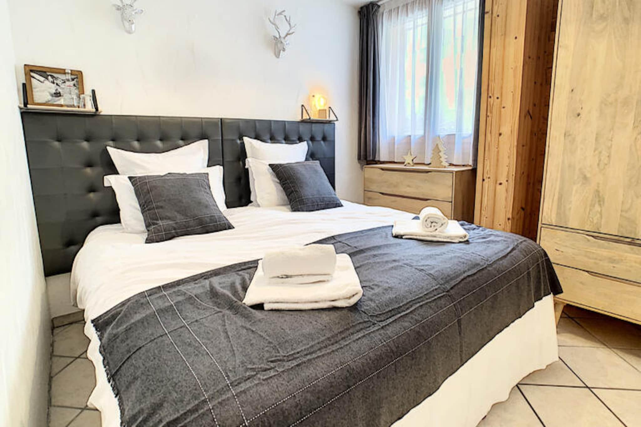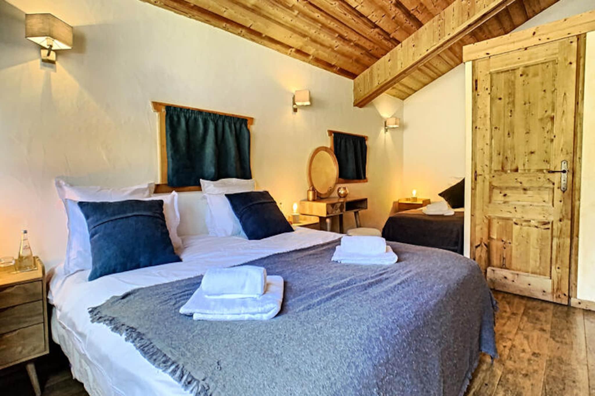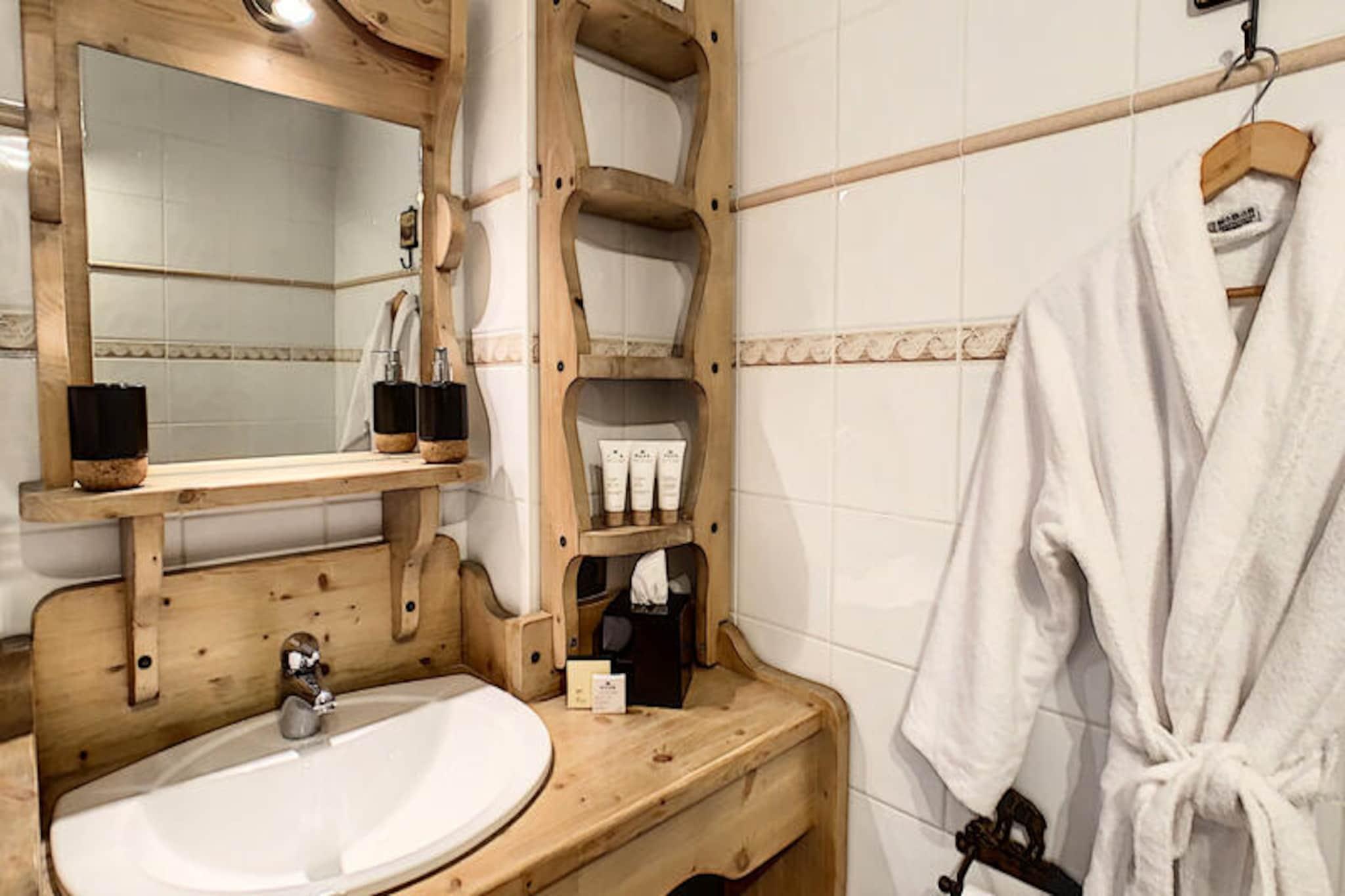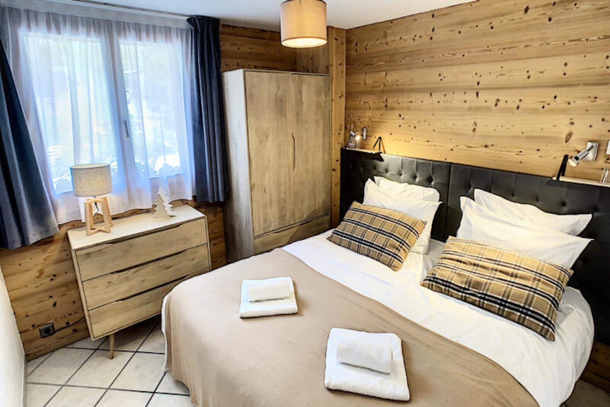 This spacious 100 m² apartment in Les Gets offers an exceptional stay for up to 10 people, featuring 5 rooms and 4 bedrooms. It includes a large living room with a fireplace, a terrace with mountain views, and a fully equipped open kitchen. The 4 bedrooms are elegantly designed, each with its own bathroom. Double beds can be converted into singles for flexibility, and bedrooms 3 and 4 also have an additional single bed. The apartment also offers private parking and Wi-Fi. Situated directly opposite the slopes, this property provides easy access to skiing and the surrounding mountain activities. The serene location allows guests to enjoy peaceful moments on the terrace or indulge in the wellness area, which includes a jacuzzi and sauna for ultimate relaxation after a day on the slopes. The apartment's kitchen is fully equipped with everything needed for preparing meals, and the living area is designed for comfort with a cozy lounge and television. The modern amenities, along with the wellness facilities, make it an ideal spot for both relaxation and adventure.