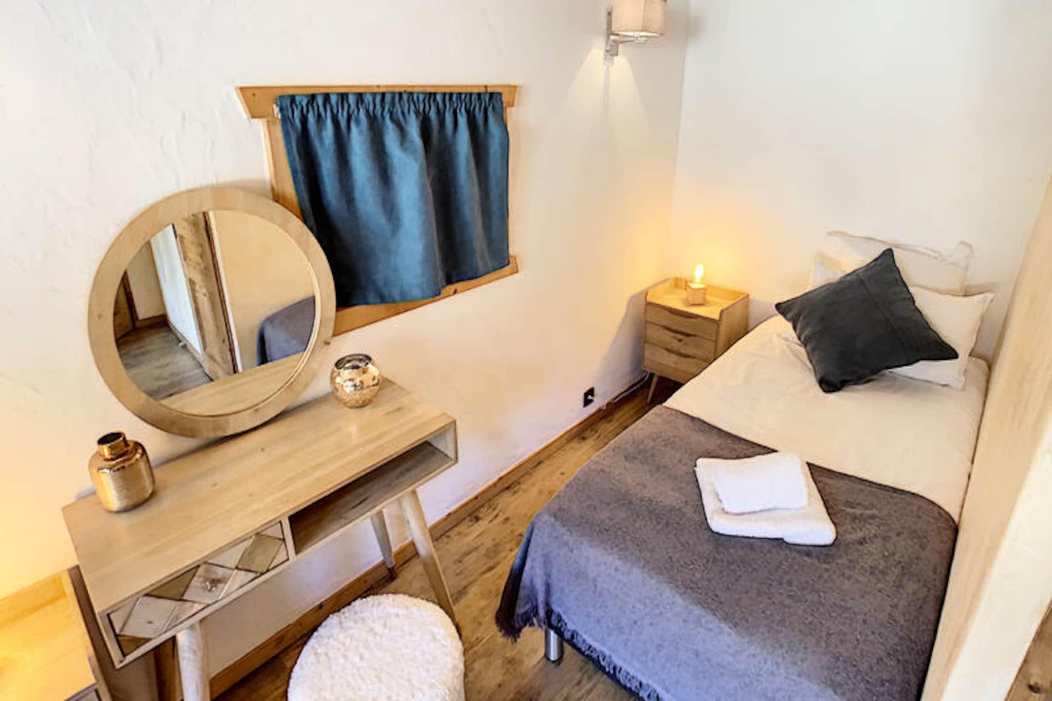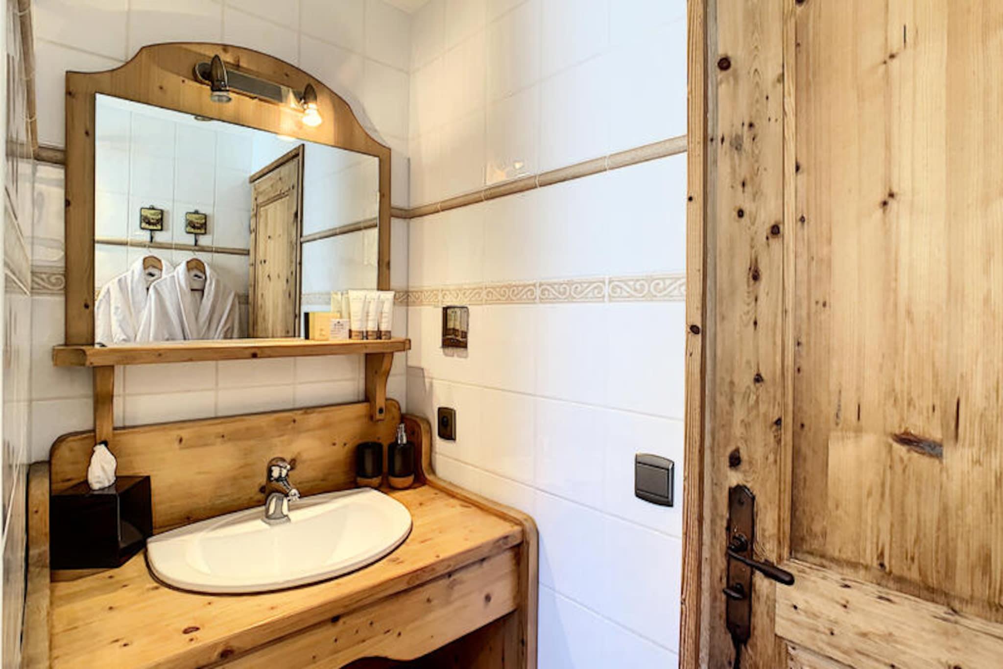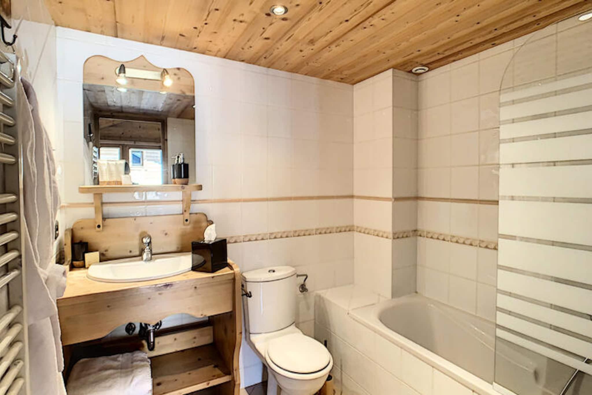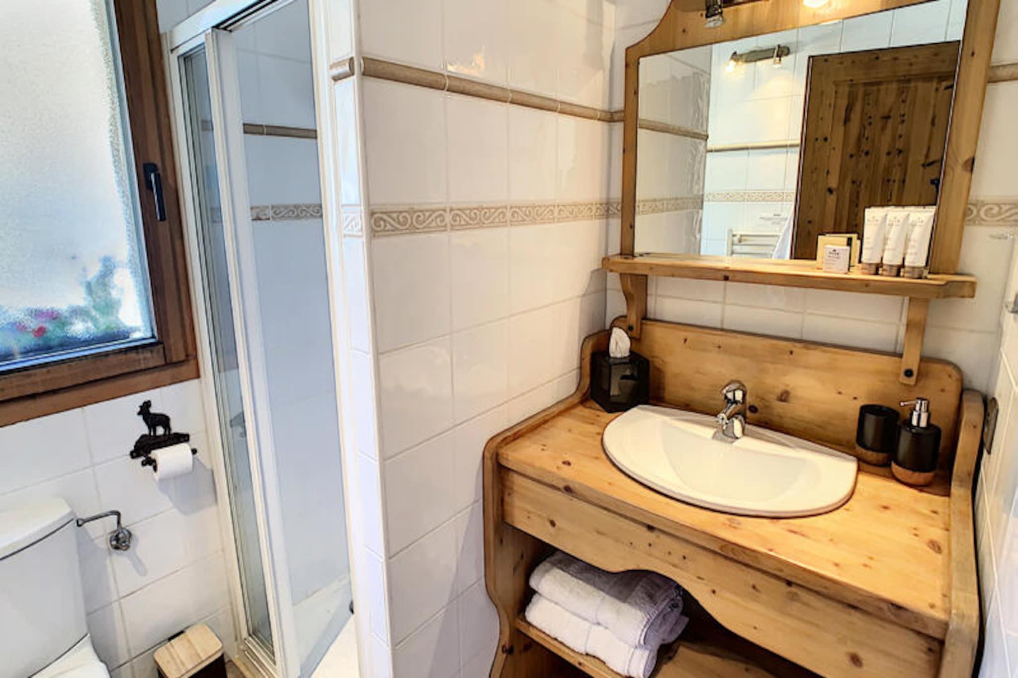 This spacious 100 m² apartment in Les Gets offers an exceptional stay for up to 10 people, featuring 5 rooms and 4 bedrooms. It includes a large living room with a fireplace, a terrace with mountain views, and a fully equipped open kitchen. The 4 bedrooms are elegantly designed, each with its own bathroom. Double beds can be converted into singles for flexibility, and bedrooms 3 and 4 also have an additional single bed. The apartment also offers private parking and Wi-Fi. Situated directly opposite the slopes, this property provides easy access to skiing and the surrounding mountain activities. The serene location allows guests to enjoy peaceful moments on the terrace or indulge in the wellness area, which includes a jacuzzi and sauna for ultimate relaxation after a day on the slopes. The apartment's kitchen is fully equipped with everything needed for preparing meals, and the living area is designed for comfort with a cozy lounge and television. The modern amenities, along with the wellness facilities, make it an ideal spot for both relaxation and adventure.