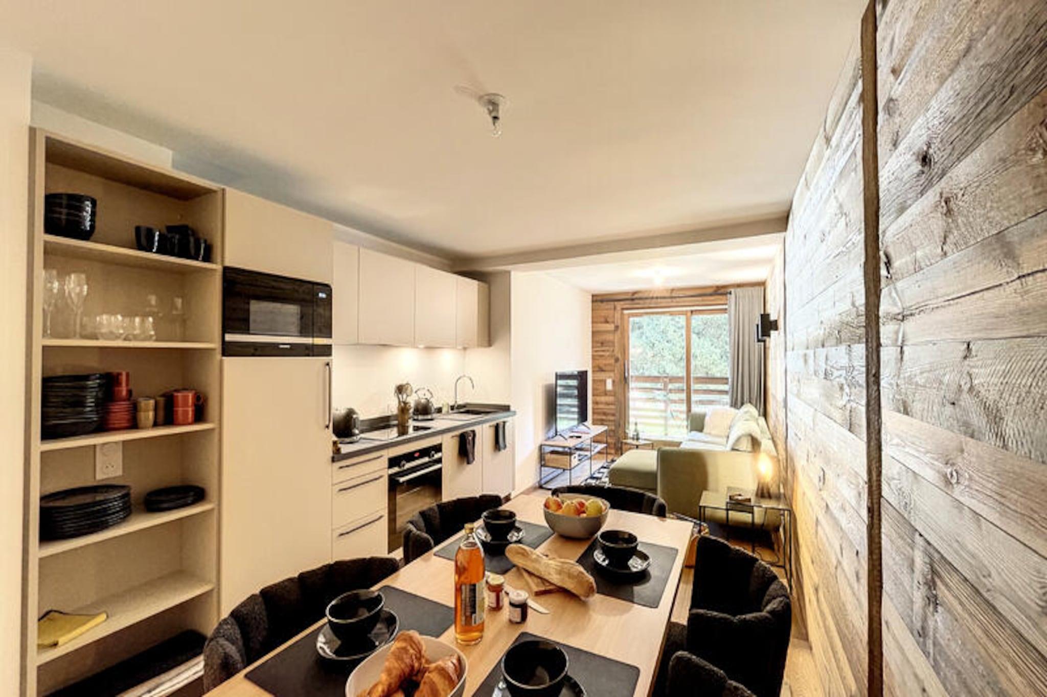 Property, along with its elegant design, offers a well-appointed vacation home perfect for a small family or group. It features two comfortable bedrooms: one with a 160 cm double bed and a private shower room, and a second with a 140 cm double bed. The living space includes a cozy TV lounge with direct access to a terrace, ideal for relaxation. The apartment can accommodate up to 4 people, making it an ideal retreat for a peaceful stay. In addition to the spacious living area, the residence offers a large closed garage, equipped with an electrical outlet for convenient charging of electric vehicles or bicycles. Guests also benefit from a private ski locker within the residence, ensuring secure storage of gear. Though pets are not mentioned, guests can enjoy the exclusive access to the spa, "Les Sources du Chéry," a paid service that adds extra relaxation to their stay. The location of the apartment is superb, set in the heart of the village, offering immediate access to all the local amenities. The residence is within walking distance of the village's shops, restaurants, and attractions, placing everything you need right at your doorstep. For outdoor enthusiasts, the apartment provides easy access to the nearby ski slopes, and guests can enjoy the proximity to local hiking and outdoor activity options. The spa is conveniently located within the residence, accessible on foot, ensuring guests can unwind without leaving the premises. Transportation options are readily available, allowing easy travel to nearby areas, enhancing the appeal for both relaxation and exploration. The apartment’s kitchen is fully equipped to support a self-catered stay, with modern appliances such as a stove, oven, fridge, and dishwasher, enabling guests to prepare meals with ease. A dining area is available for shared meals, fostering a warm and inviting atmosphere. The apartment’s additional facilities include a well-sized living room with comfortable furnishings and TV access for leisure time, making it a welcoming space to relax after a day of activities. The attention to detail, including the private ski locker and the luxurious spa access, elevates the overall experience, ensuring guests enjoy both comfort and convenience during their stay.