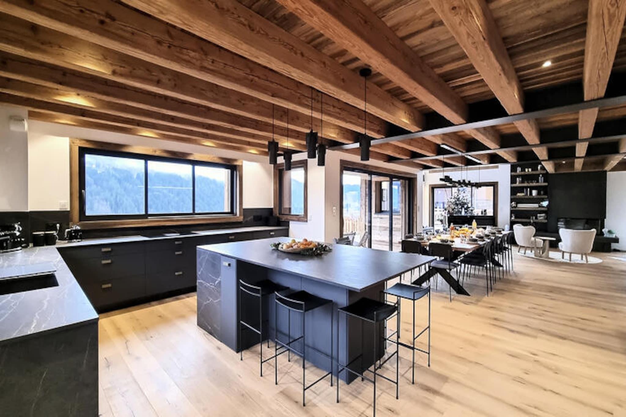 Property, along with its exceptional amenities, offers a spacious and luxurious stay in the heart of Les Gets. This 420 m² chalet is designed to accommodate up to 15 guests, featuring seven well-appointed bedrooms and five bathrooms. The living room is equipped with a comfortable sofa and a fireplace, perfect for relaxation after a day on the slopes. Guests can enjoy two large terraces with stunning views of the surrounding mountains. Additional amenities include a sauna, hammam, outdoor jacuzzi (for up to six people), outdoor swimming pool, and a gas barbecue. Pets are not allowed, but guests will enjoy the convenience of free activities such as access to nearby shuttles and proximity to various recreational facilities. The chalet is ideal for those looking for both comfort and leisure during their stay. Located just 50 meters from the free shuttle service, this chalet offers easy access to the Les Gets ski resort. The resort is well-known for its excellent ski slopes and winter activities, making it a prime destination for ski enthusiasts. Guests can also explore the local town, renowned for its Alpine charm, where they will find a variety of shops, restaurants, and cafes. The chalet's central location ensures that guests can easily access both the ski lifts and the village center, enhancing the overall convenience of their stay. Additionally, the chalet is just a short distance from key travel stations, ensuring seamless transport options for both winter and summer visitors. The chalet features a fully equipped kitchen designed for large groups, with everything needed for preparing meals. Guests will find modern appliances, including an oven, stove, refrigerator, and dishwasher. The spacious dining area, adjacent to the living room, offers ample seating for large gatherings, while the lounge area provides a cozy space for unwinding. Other amenities include a ski room for storing equipment and two garage parking spaces with electric vehicle charging capabilities. With its combination of modern conveniences and traditional Alpine charm, this chalet is an ideal retreat for those seeking both relaxation and adventure in the French Alps.
