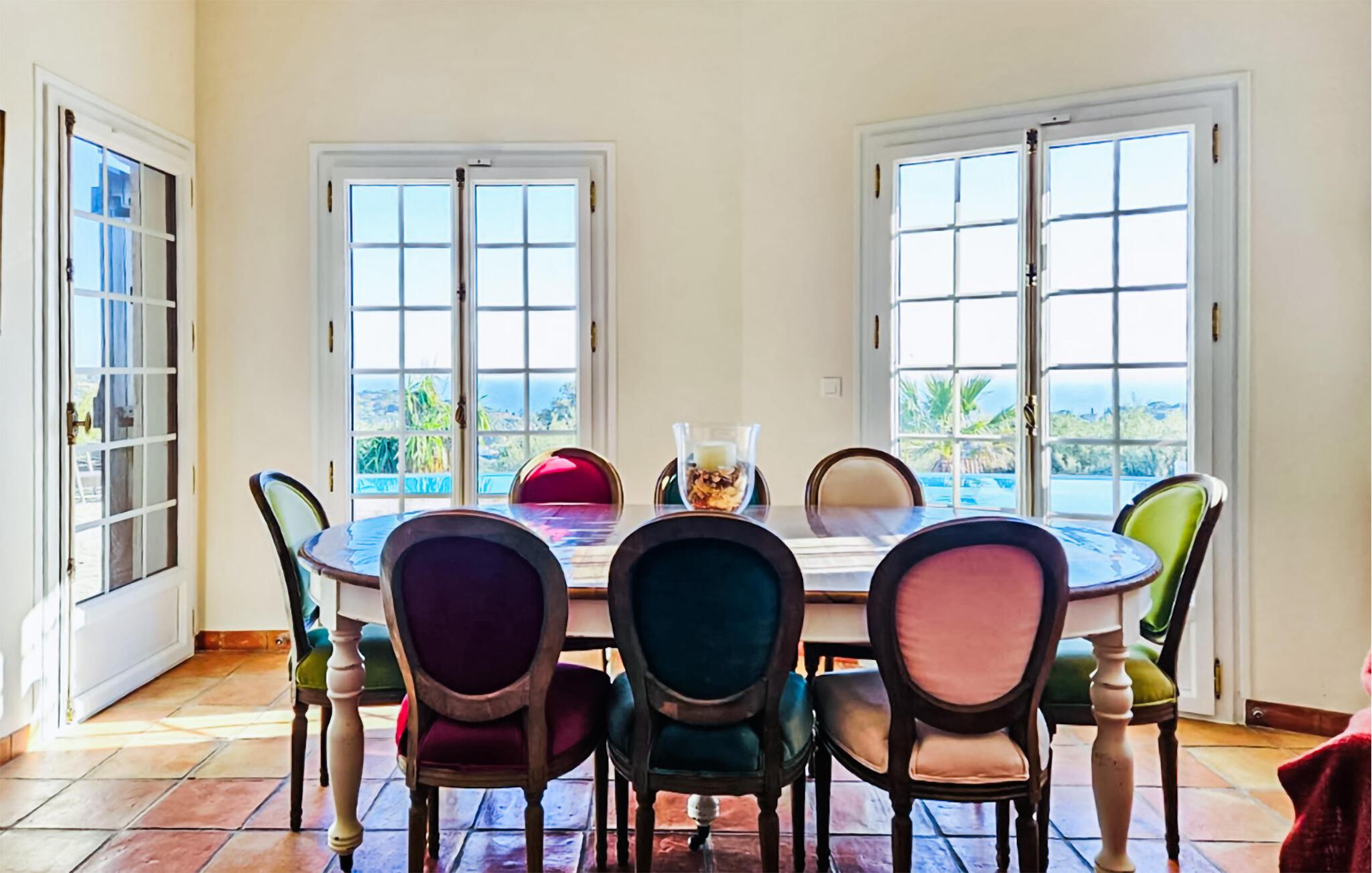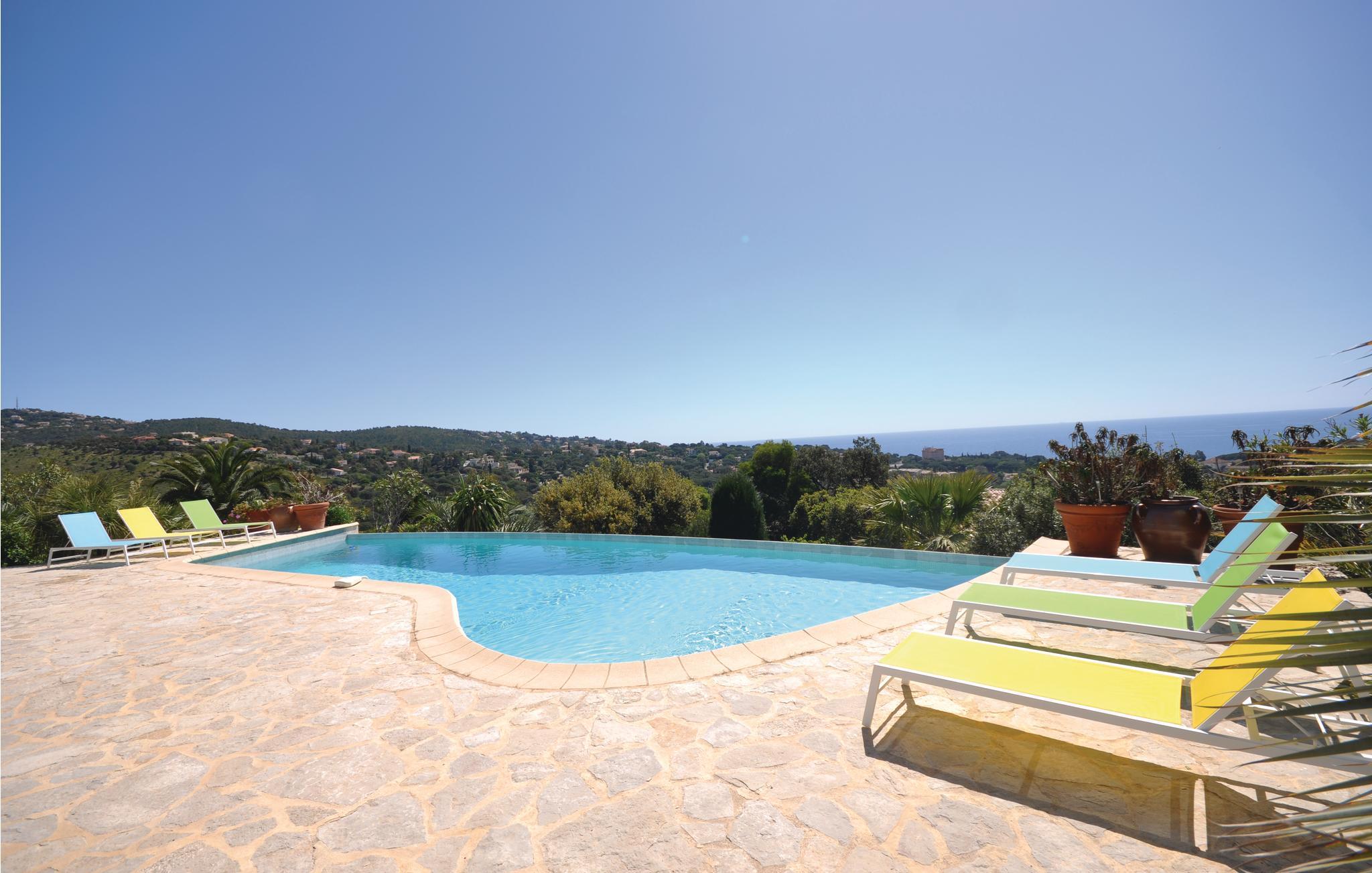 Ein eindrucksvolles Ferienhaus mit wunderschönem Meer- und Bergpanorama. Die Unterkunft empfängt Sie in einem Wohngebiet nur 1 km von den Sandstränden und tollen Felsenabschnitten in der Bucht von Les Issambres entfernt. Ihr herrlicher Überlauf-Pool überschaut das Meer, und Ihnen steht außerdem eine überdachte Terrasse mit Gartenmöbeln und Grill für viele gemütliche Mahlzeiten im Freien zur Verfügung. Im Inneren machen zeitgenössische Möbelstücke und eine raffinierte Dekoration einen eleganten Eindruck. Der Badeort Les Issambres bietet alles, was man für einen gelungenen und unvergesslichen Urlaub am Meer braucht. Entdecken Sie die wunderschöne Bucht von Saint-Tropez mit dem Boot und baden Sie in der Sonne an den vielen goldenen Sandstränden am Mittelmeer. Sportliche Urlauber finden ihr Glück im sehr nahe gelegenen Sainte-Maxime, das mit einem Golfplatz und einem Reiterzentrum aufwartet. Das Haus liegt 25 km von Saint-Tropez, 50 km von Cannes sowie eine Stunde vom Maurenmassiv. der Dracénie und Fayence entfernt. Dieses wunderschöne Feriendomizil mit Swimmingpool wird es Ihnen antun und dafür sorgen, dass Sie nach Ihrem Urlaub nur noch ans Zurückkehren denken!