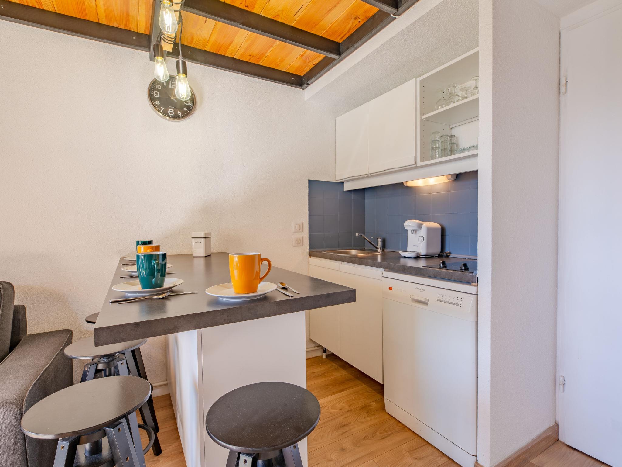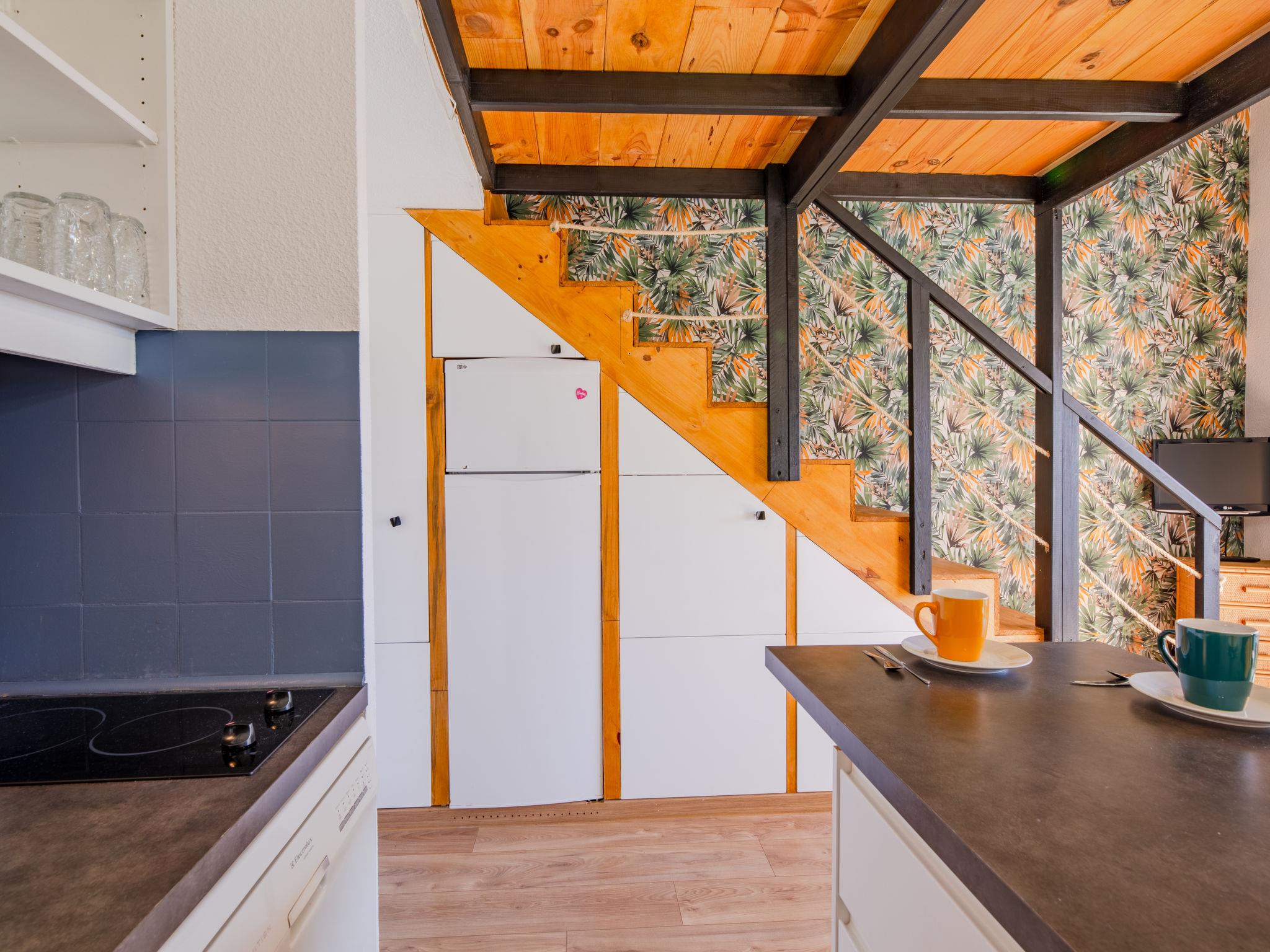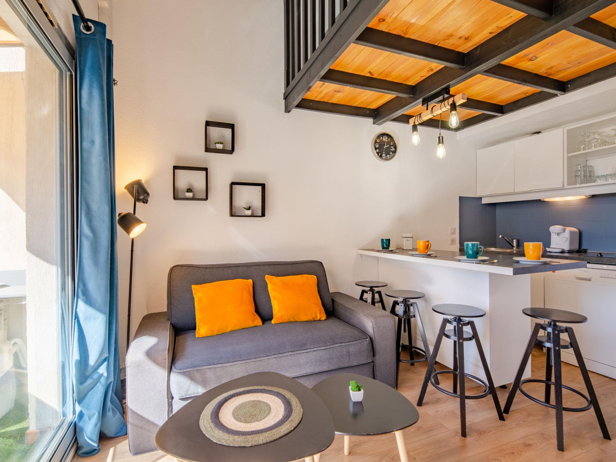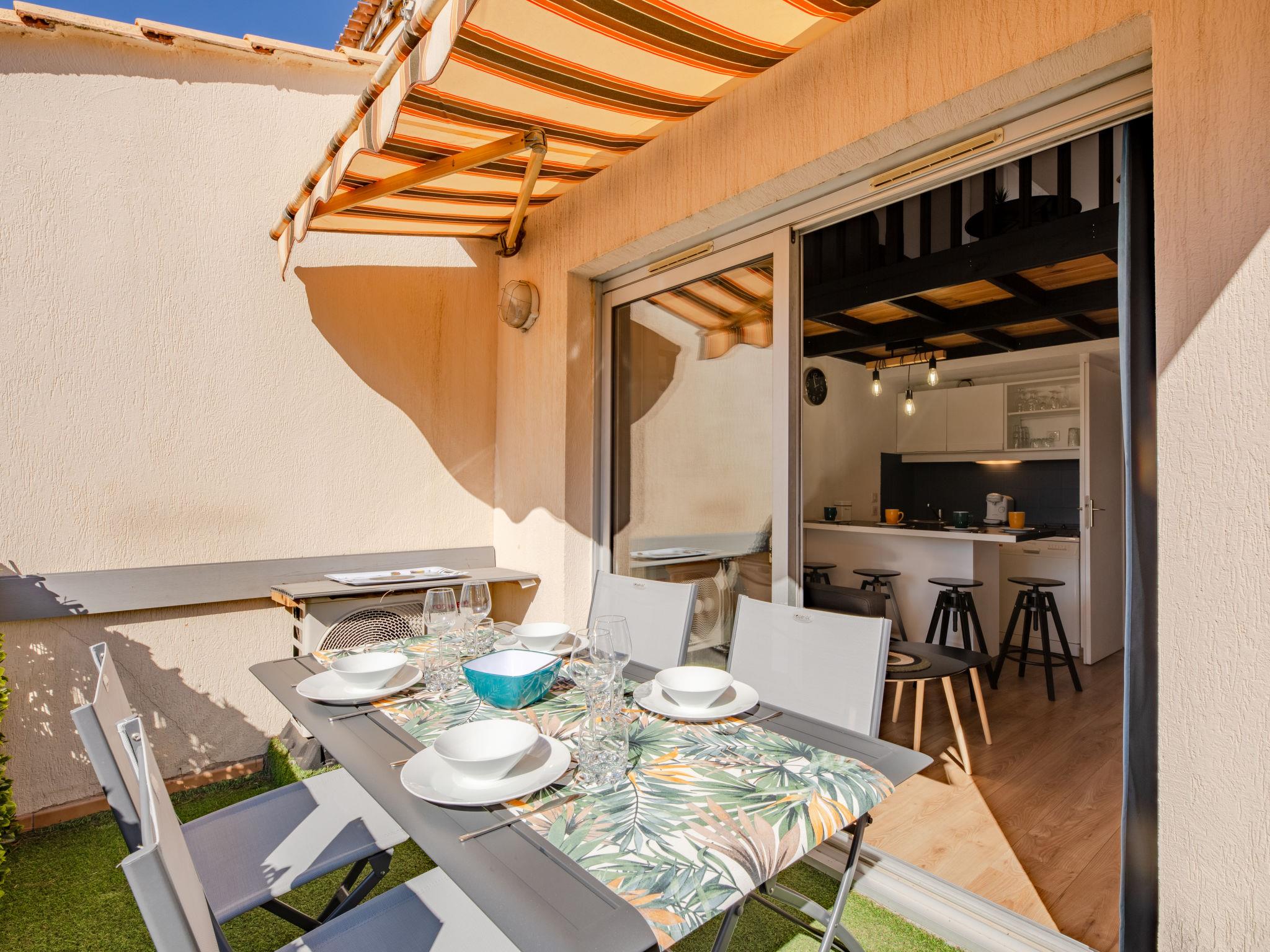 2-room studio 28 m2 on 2 levels on 1st floor, west facing position. Simple and comfortable furnishings: living/dining room with TV (flat screen). Exit to the balcony. Entrance hall with 1 x 2 bunk beds (70 cm, length 190 cm). Small, open kitchen (dishwasher, 2 induction hot plates, toaster, kettle, microwave, freezer, electric coffee machine). Bath/WC. Air-conditioning, forced-air heating. Upper floor: 1 open room with sloping ceilings with 1 french bed (140 cm, length 190 cm). Small balcony 8 m2, west facing position. Balcony furniture. View of the garden. Facilities: washing machine, iron, hair dryer. Internet (WiFi, free). Parking space n 120 (fenced). Please note: non-smokers only. Smoke alarm, no lift. Offer by a private individual according to Art. 155, IV of CGI. 83107002563JB