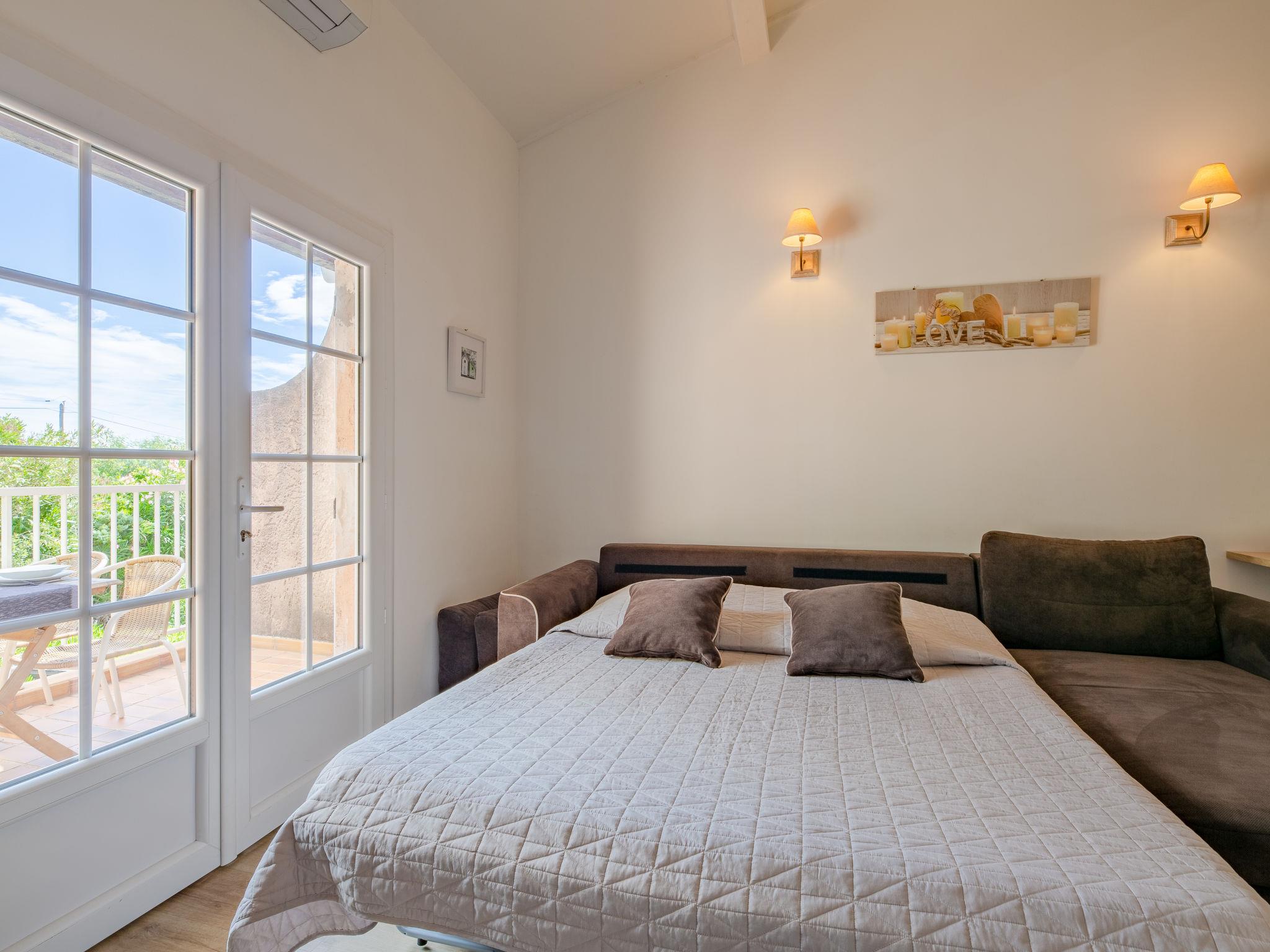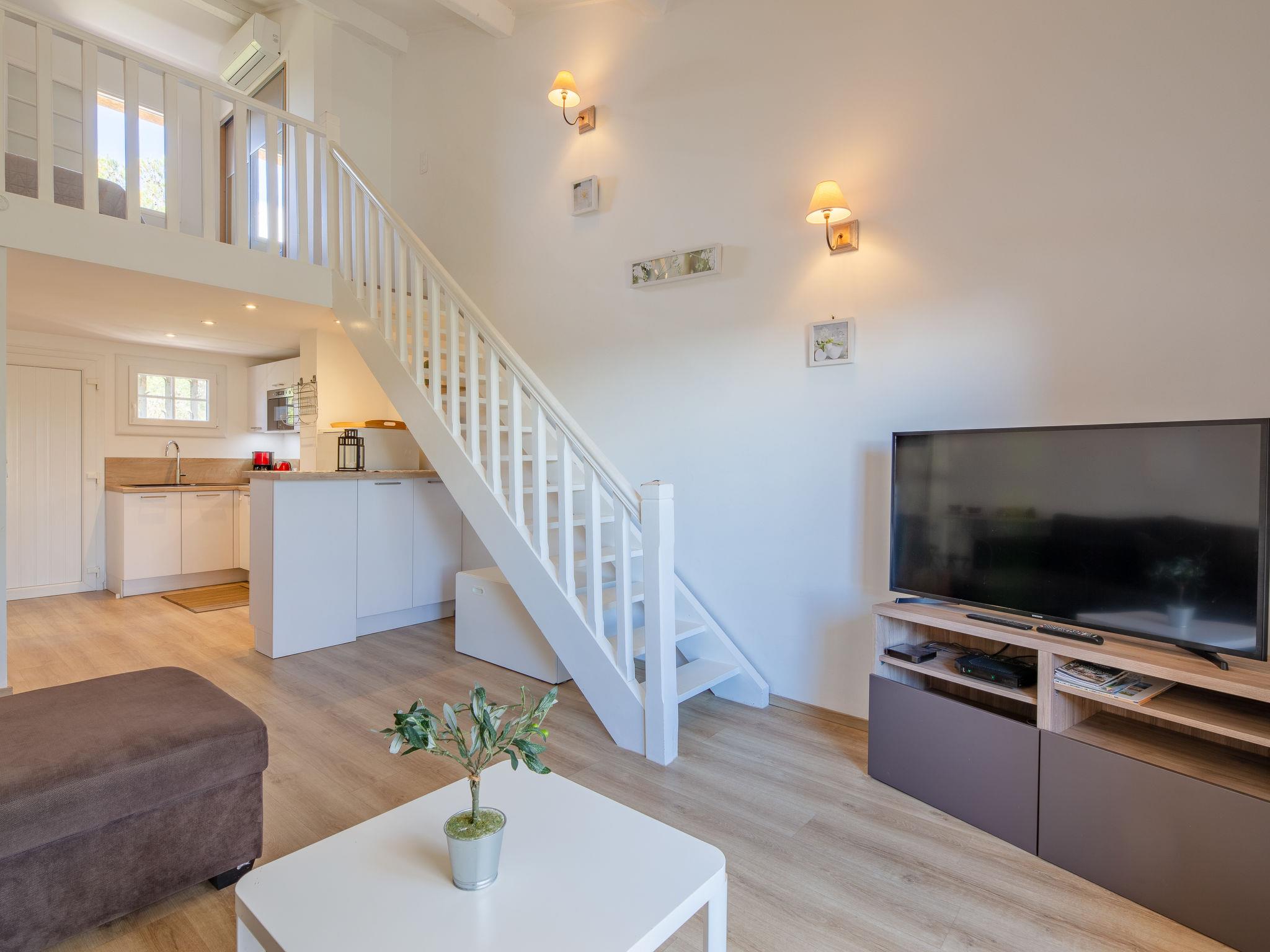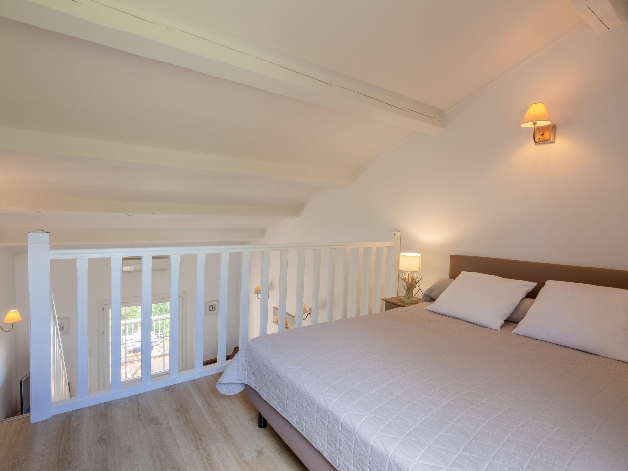 1-room studio 45 m2 on 2 levels on 1st floor. Comfortable and modern furnishings: living/dining room with 1 sofabed (140 cm, length 200 cm), TV. Exit to the balcony. Open kitchen (dishwasher, 2 induction hot plates, toaster, kettle, freezer, electric coffee machine, combination microwave). Shower/WC. Heating, air-conditioning. Upper floor: open gallery with 1 french bed (160 cm, length 200 cm). Balcony 7 m2, east facing position. Balcony furniture. Side view of the sea. Facilities: washing machine. Internet (WiFi, free). Parking space n 4022. Please note: non-smokers only. Smoke alarm. Instead of an enclosed bedroom, some sleeping areas are located in an open-plan area (gallery, alcove, etc.). 8310700014822
