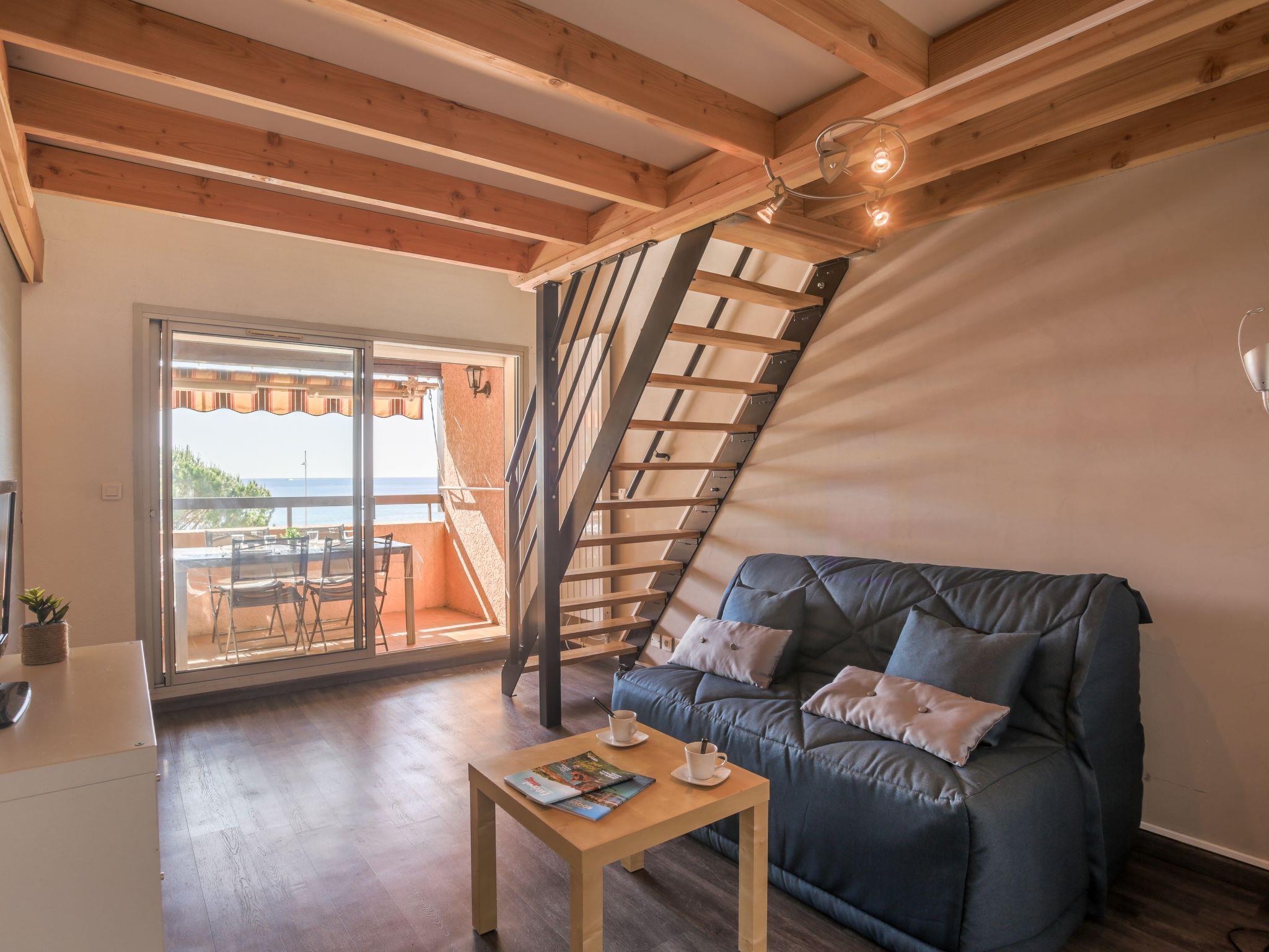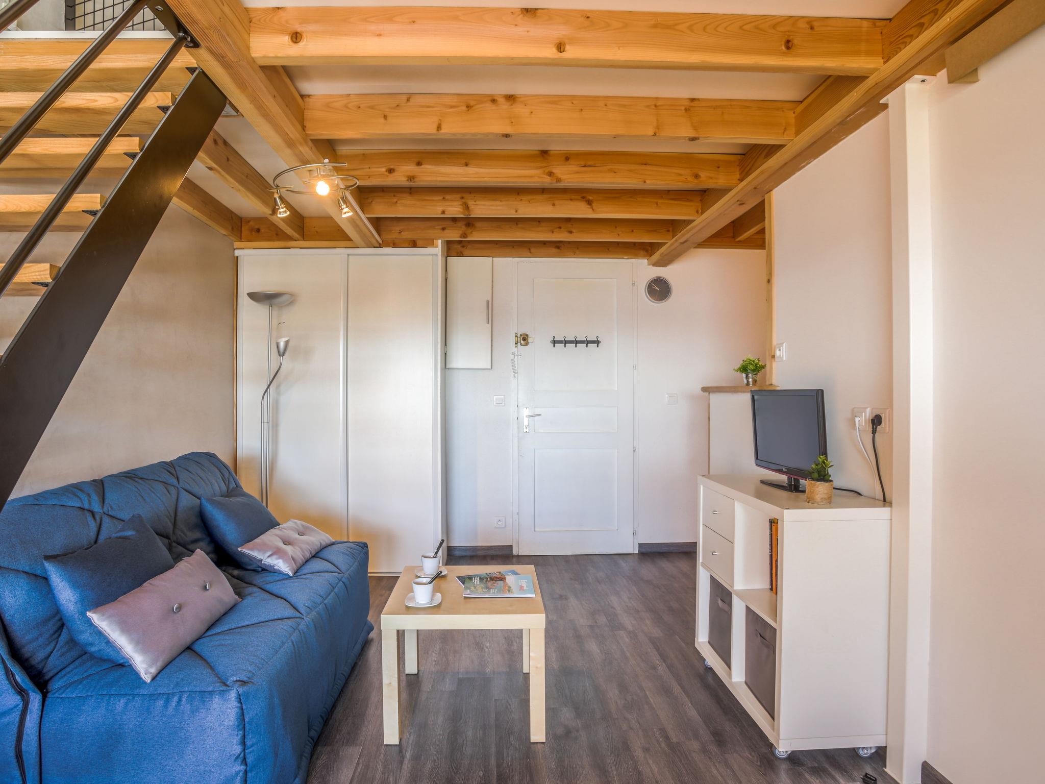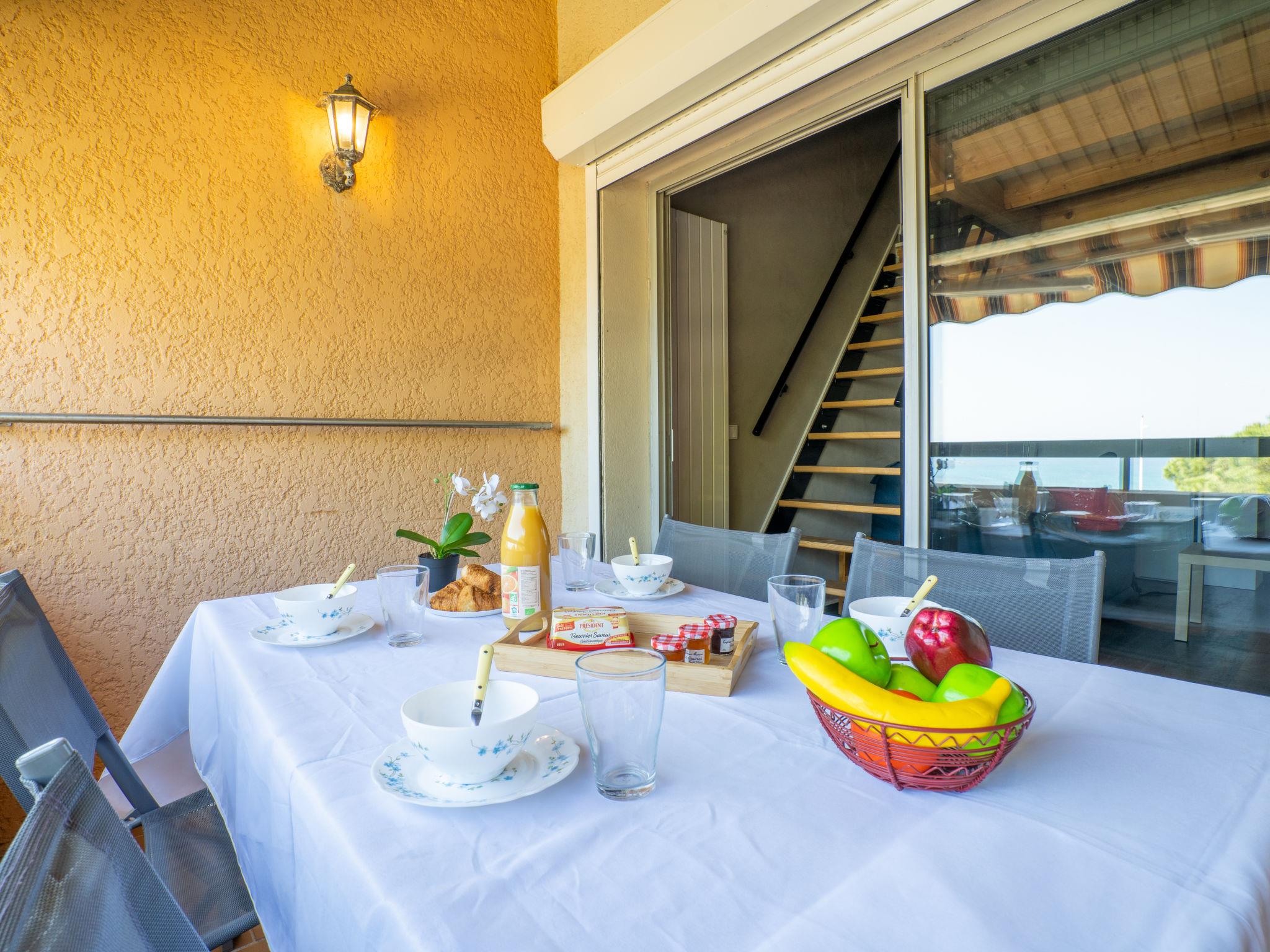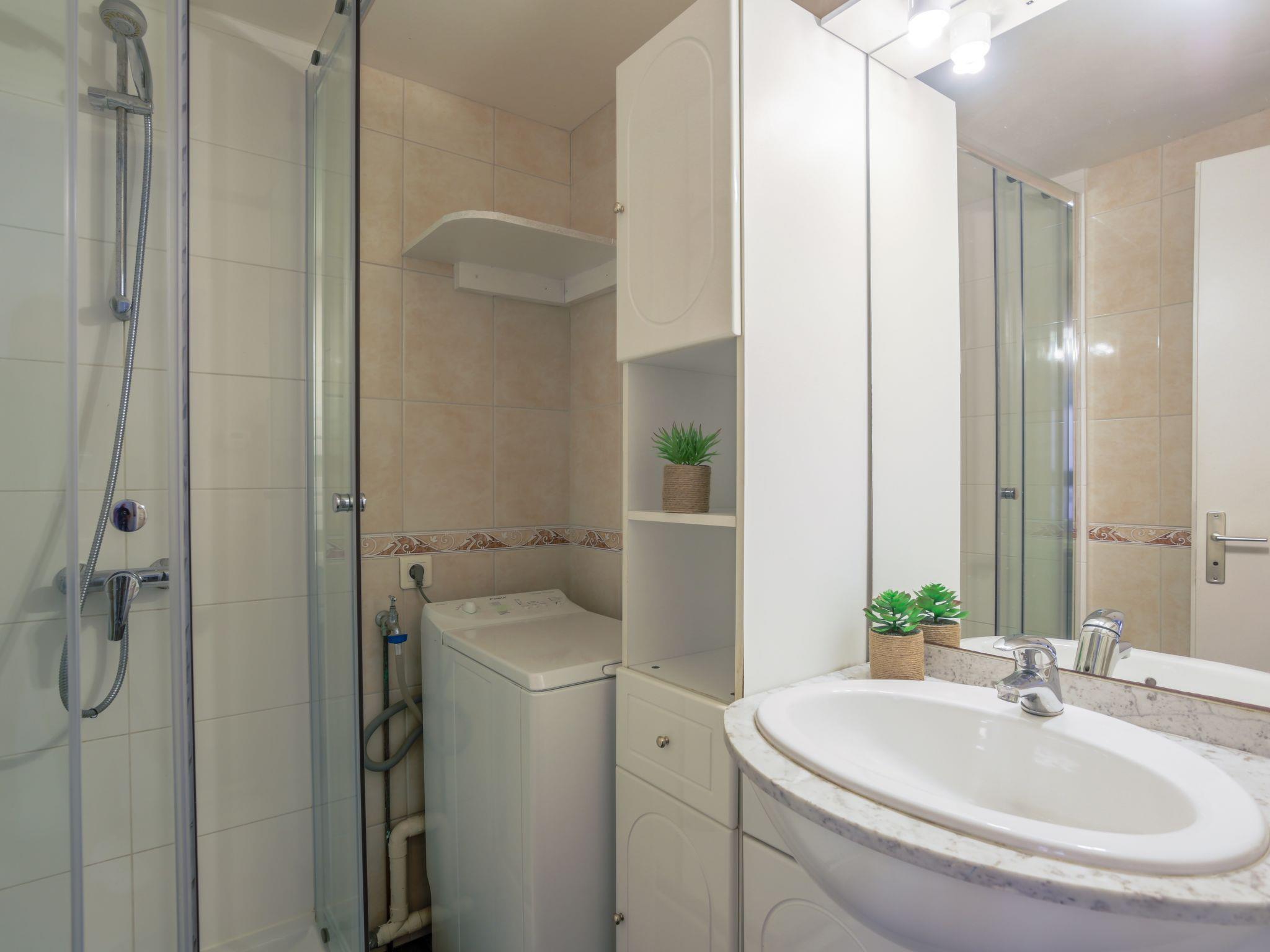 2-room apartment 28 m2 on 2nd floor, east facing position. Simple furnishings: living/dining room with 1 double sofabed (1 x 140 cm, length 190 cm), TV (flat screen), electric heater and electric shutters. Exit to the terrace. 1 room with 1 french bed (1 x 140 cm, length 190 cm), electric heater. Kitchenette (dishwasher, 2 ceramic glass hob hotplates, toaster, kettle, microwave, freezer, electric coffee machine). Shower, sep. WC. Terrace 5 m2, roofed. Terrace furniture, electric barbecue. View of the sea. Facilities: washing machine, iron, hair dryer. Internet (WiFi, extra). Parking space n A179/493 (1 car). Please note: suitable for families. Maximum 1 small pet/ dog allowed. TV only FR. Smoke alarm, no lift. 831070016486Y