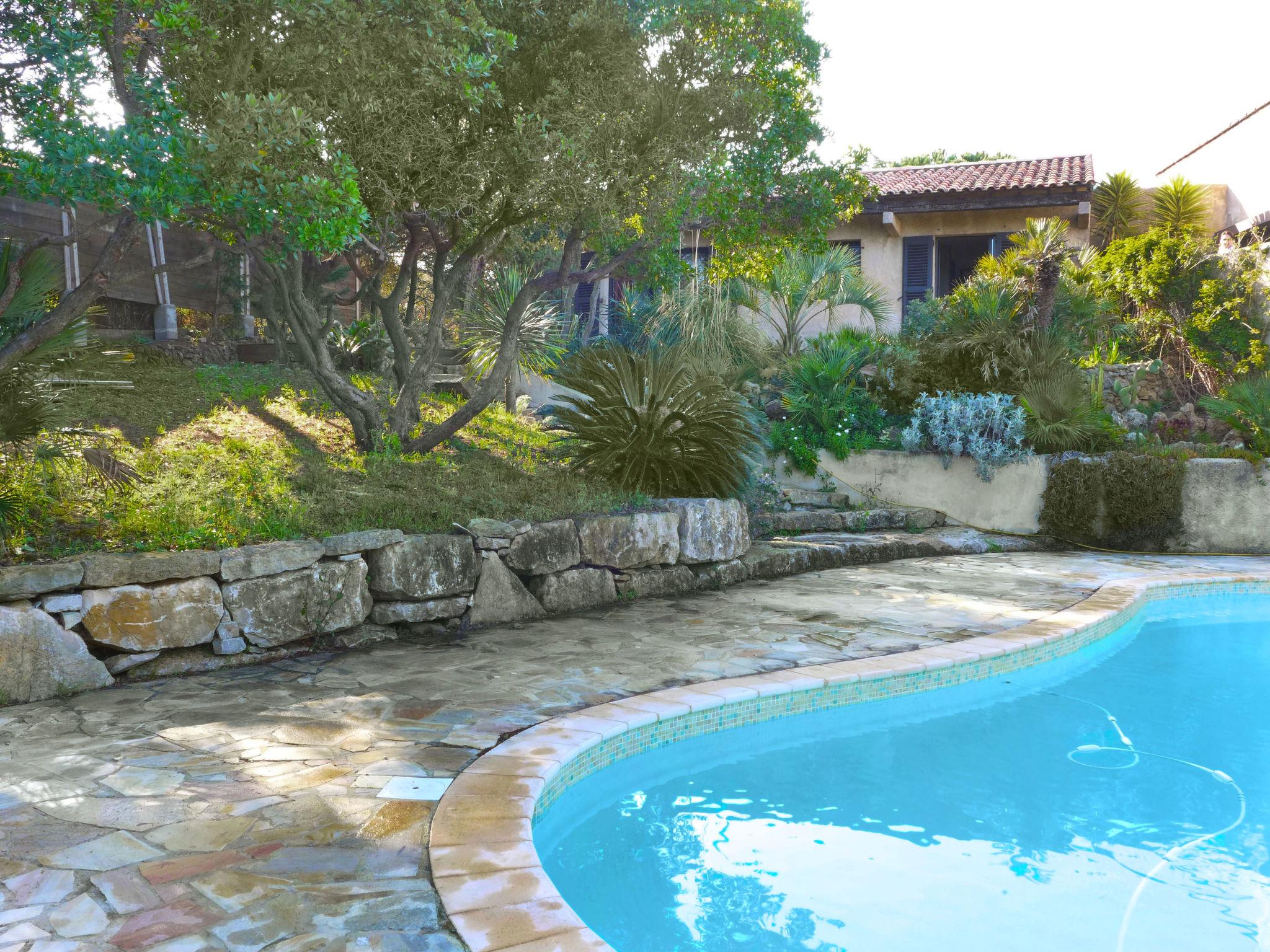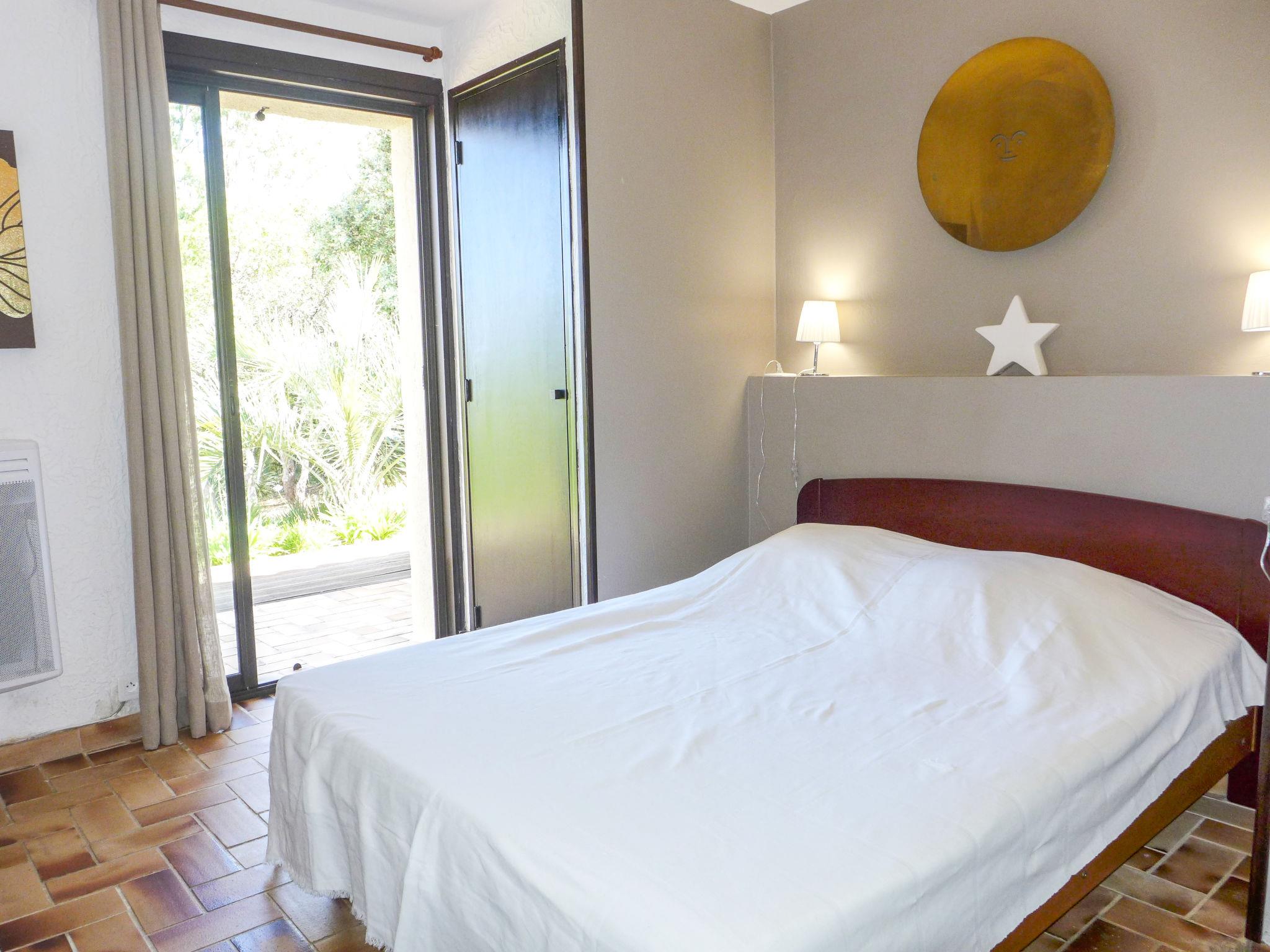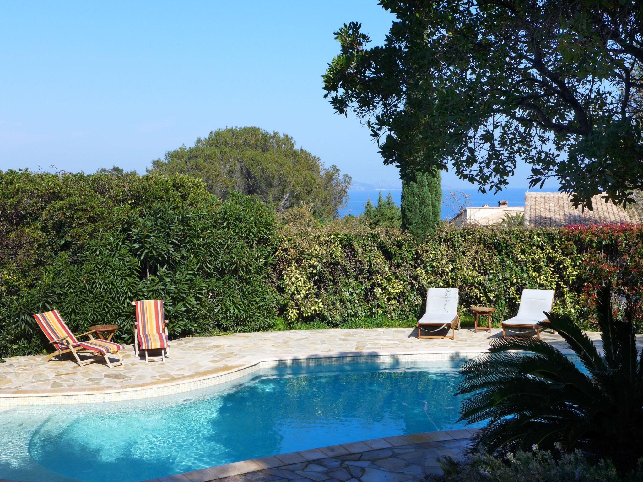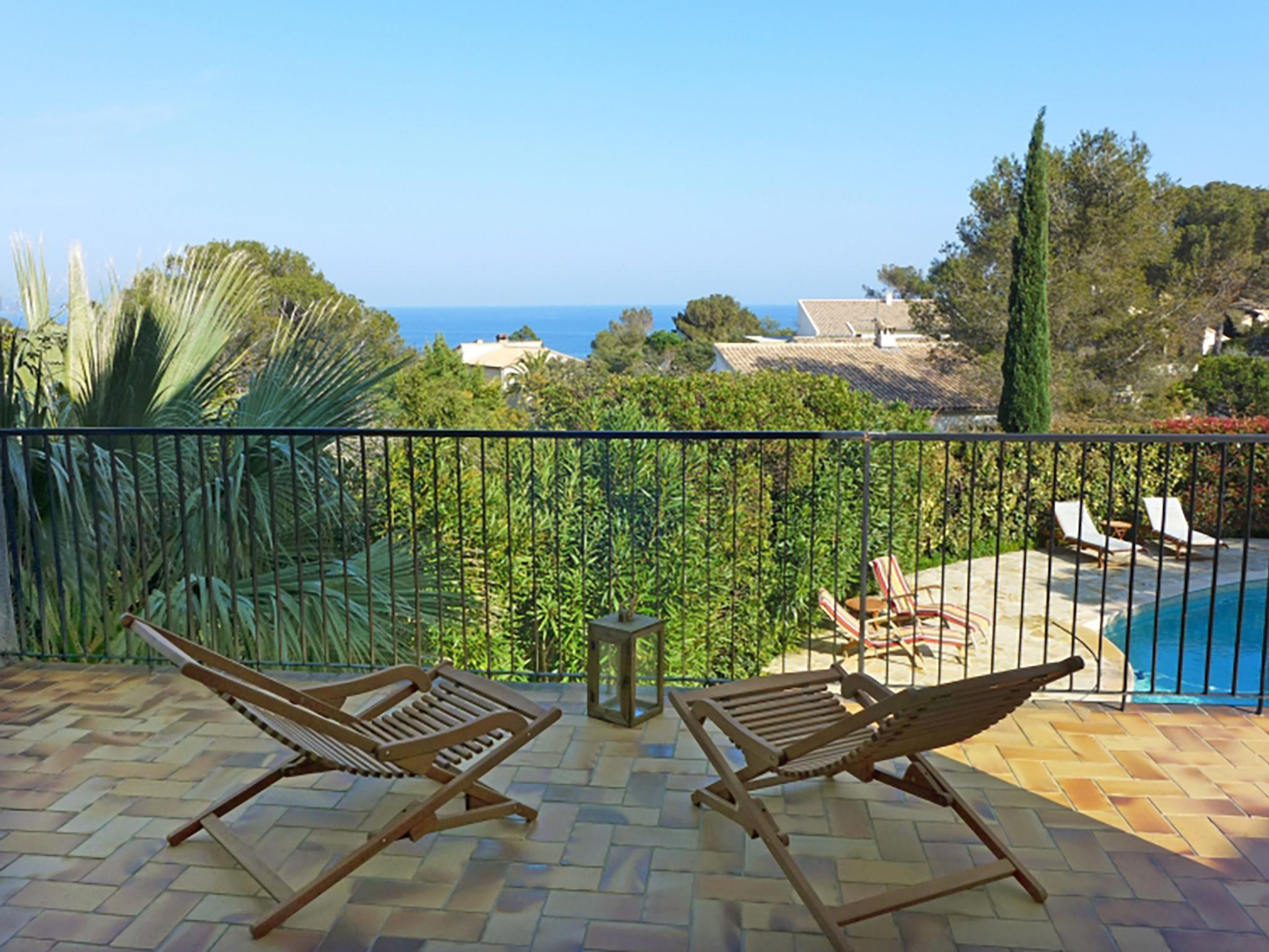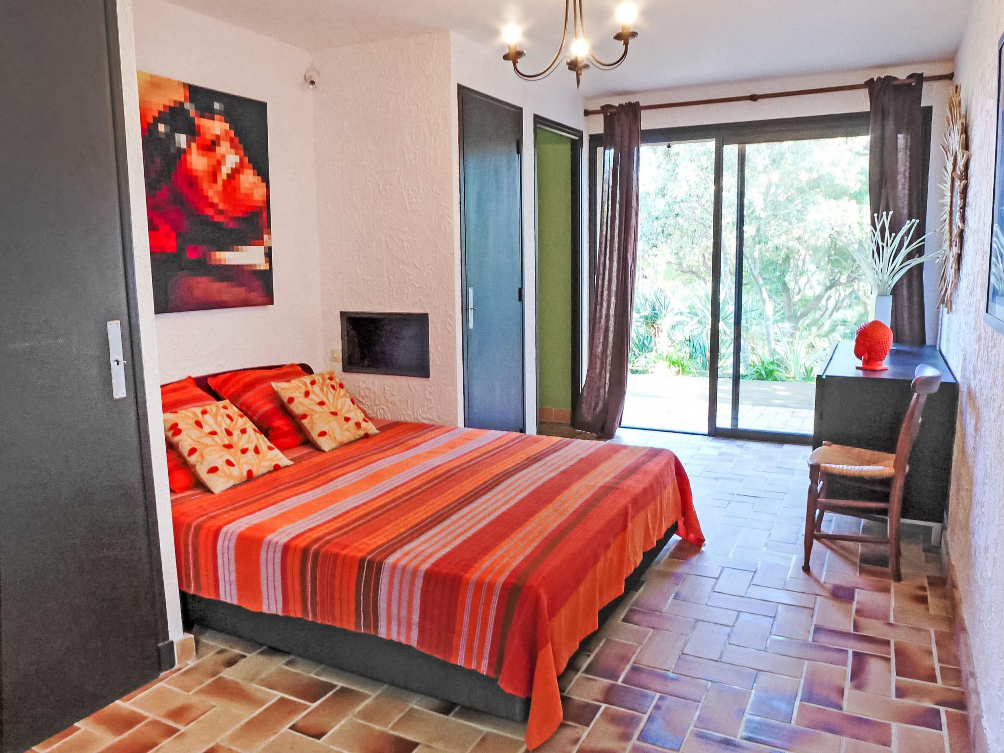 4-room villa 140 m2 on 2 levels. Beautiful furnishings: living/dining room with TV (flat screen), air conditioning. Exit to the terrace. 1 room with 1 french bed (160 cm, length 200 cm), bathroom, double hand-basin, with corner bath, air conditioning and fan. Exit to the terrace. 1 room with 1 french bed (160 cm, length 200 cm), shower, air conditioning and fan. Exit to the terrace. Open kitchen (oven, dishwasher, 4 ceramic glass hob hotplates, toaster, kettle, microwave, freezer, electric coffee machine, Capsules for coffee machine (nespresso) extra). Sep. WC. On the lower ground floor: 1 large room with 1 french bed (1 x 140 cm, length 190 cm), air conditioning and fan. Exit to the swimming pool. Shower/WC. Electric heating. Terrace. Terrace furniture, deck chairs (4). Beautiful view of the sea and the garden. Facilities: washing machine, iron, hair dryer. Internet (WiFi, free). Parking. Please note: not suitable for small children. TV only FR. Smoke alarm. 83107 000288 A7