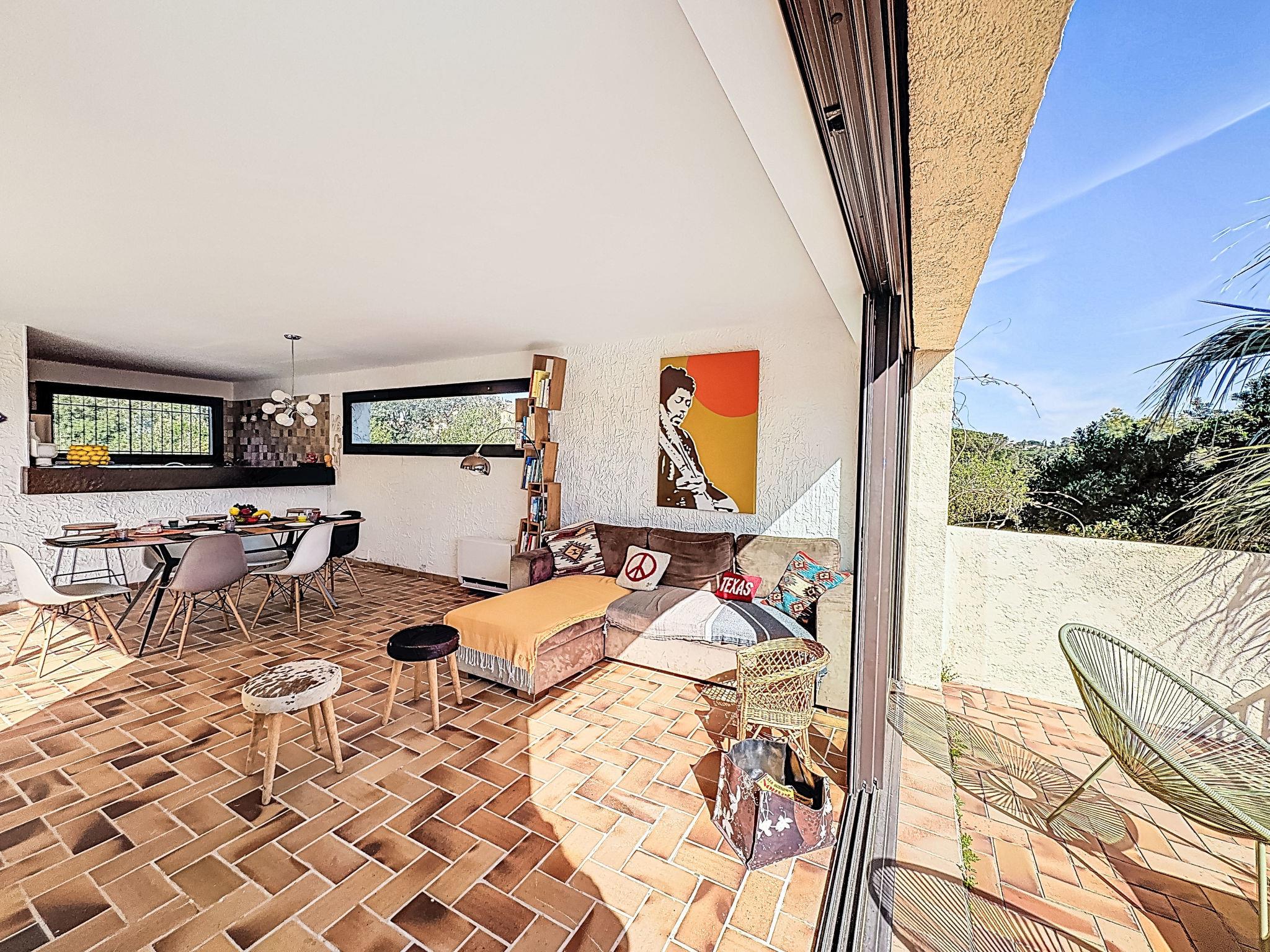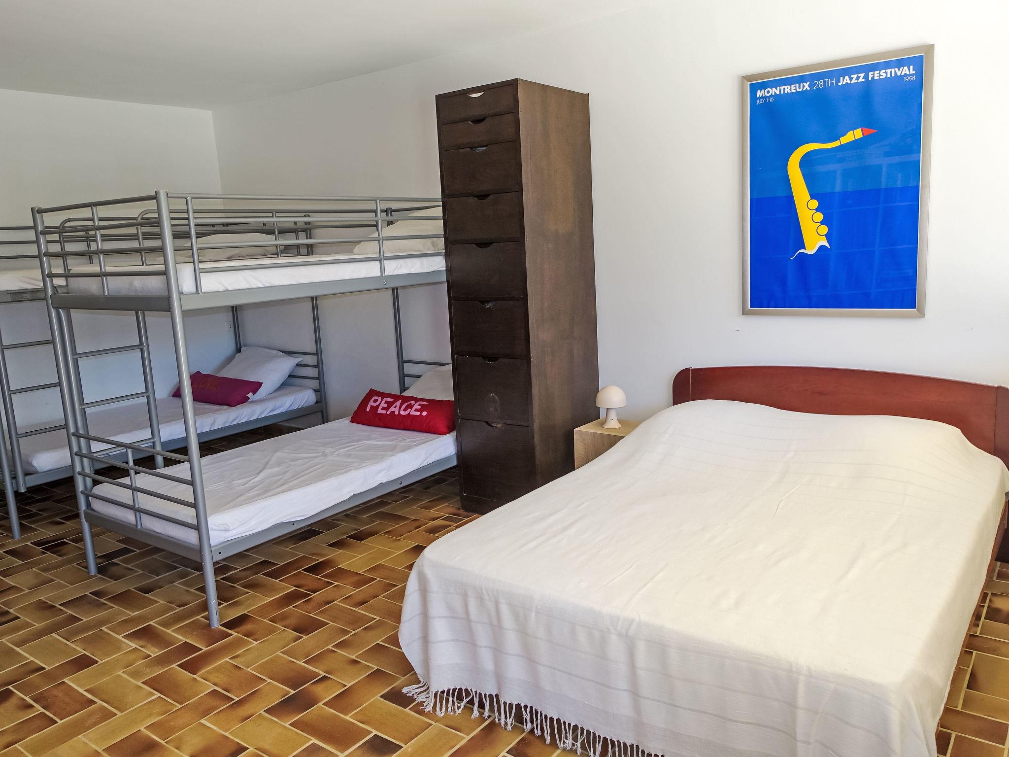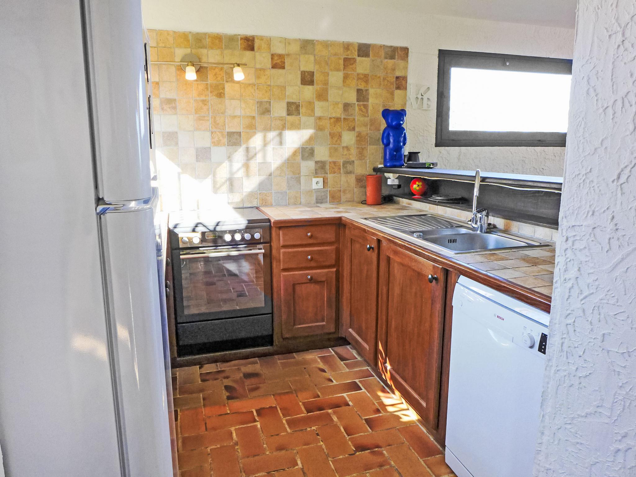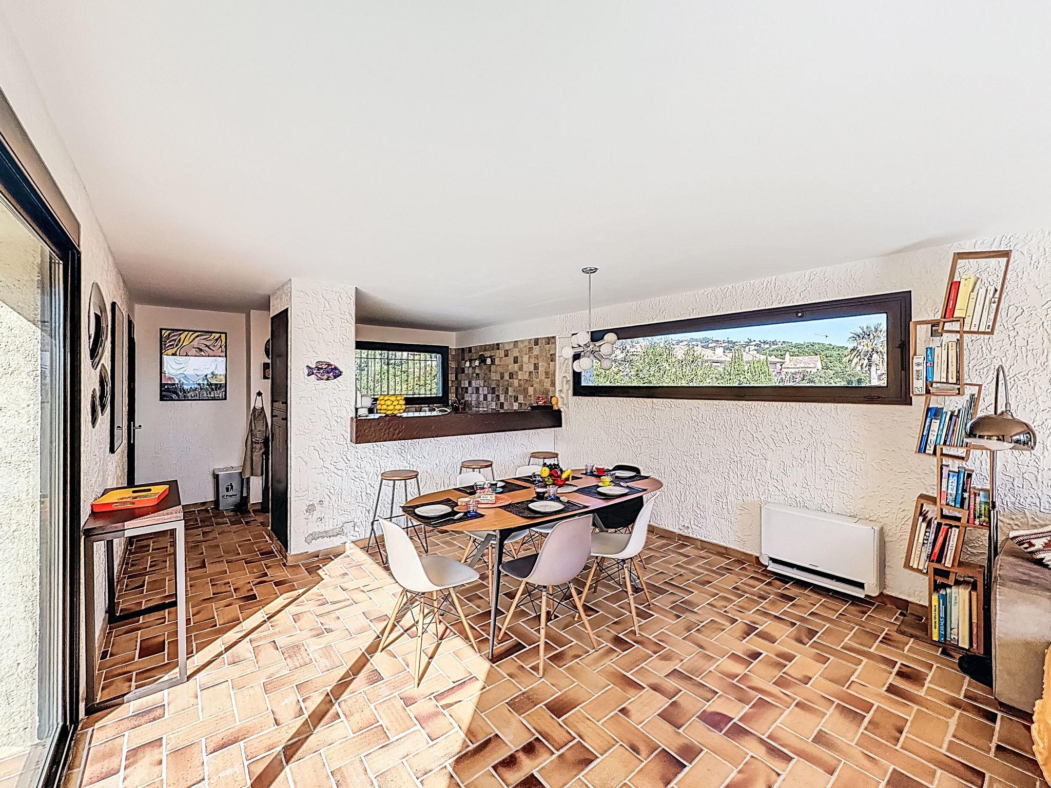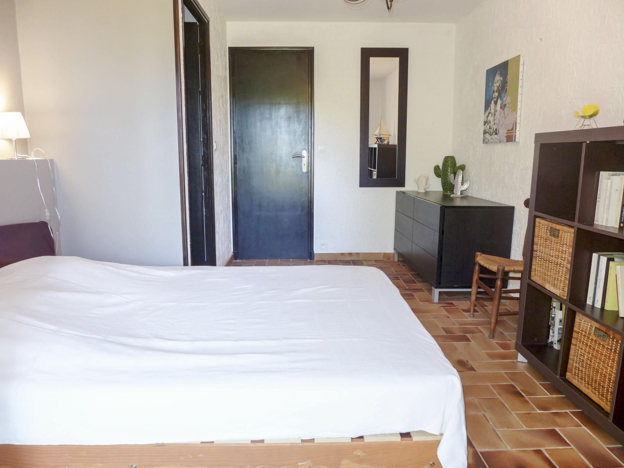 4-room villa 140 m2 on 2 levels. Beautiful furnishings: living/dining room with TV (flat screen), air conditioning. Exit to the terrace. 1 room with 1 french bed (160 cm, length 200 cm), bathroom, double hand-basin, with corner bath, air conditioning and fan. Exit to the terrace. 1 room with 1 french bed (160 cm, length 200 cm), shower, air conditioning and fan. Exit to the terrace. Open kitchen (oven, dishwasher, 4 ceramic glass hob hotplates, toaster, kettle, microwave, freezer, electric coffee machine, Capsules for coffee machine (nespresso) extra). Sep. WC. On the lower ground floor: 1 large room with 1 french bed (1 x 140 cm, length 190 cm), air conditioning and fan. Exit to the swimming pool. Shower/WC. Electric heating. Terrace. Terrace furniture, deck chairs (4). Beautiful view of the sea and the garden. Facilities: washing machine, iron, hair dryer. Internet (WiFi, free). Parking. Please note: not suitable for small children. TV only FR. Smoke alarm. 83107 000288 A7