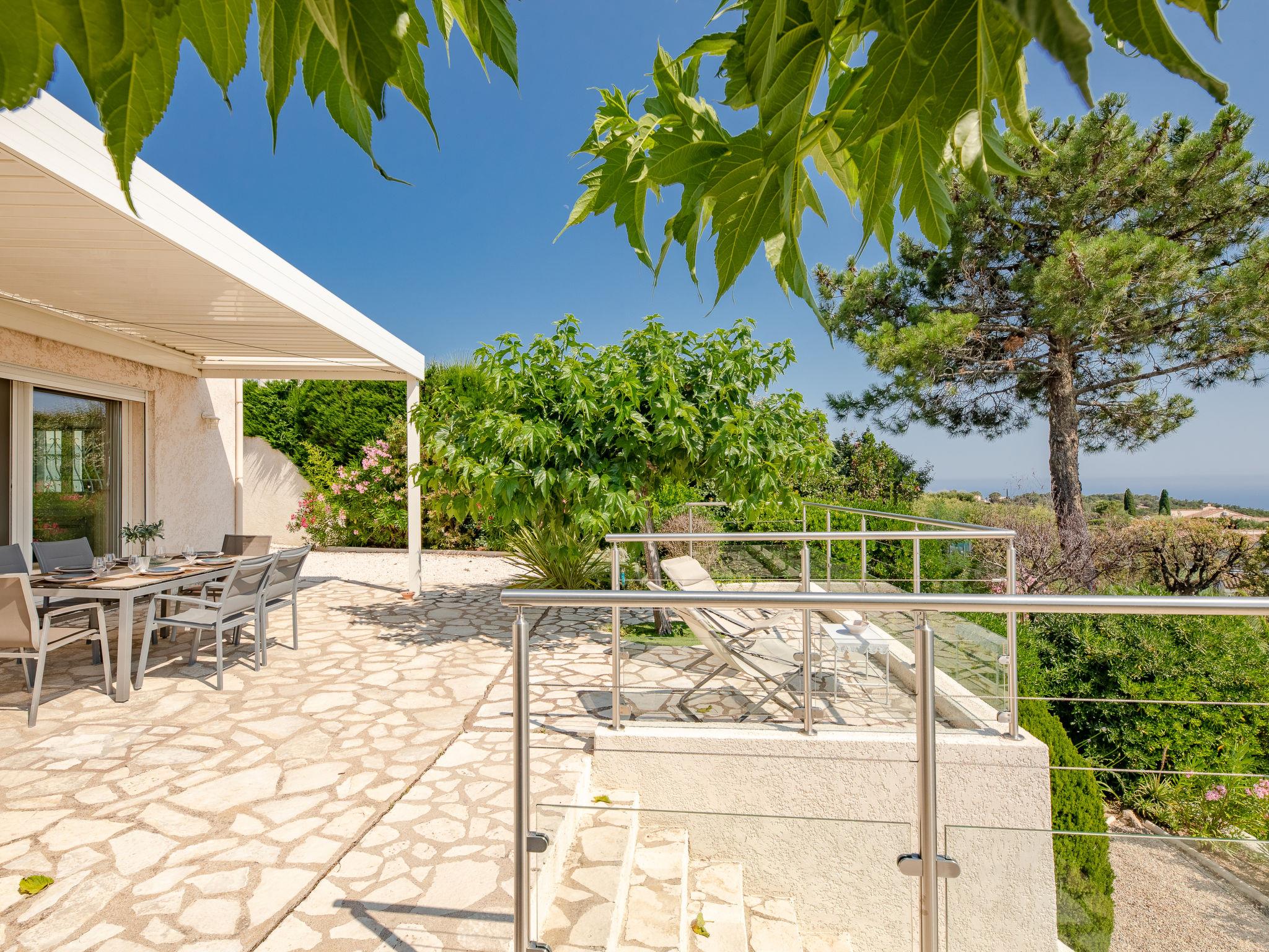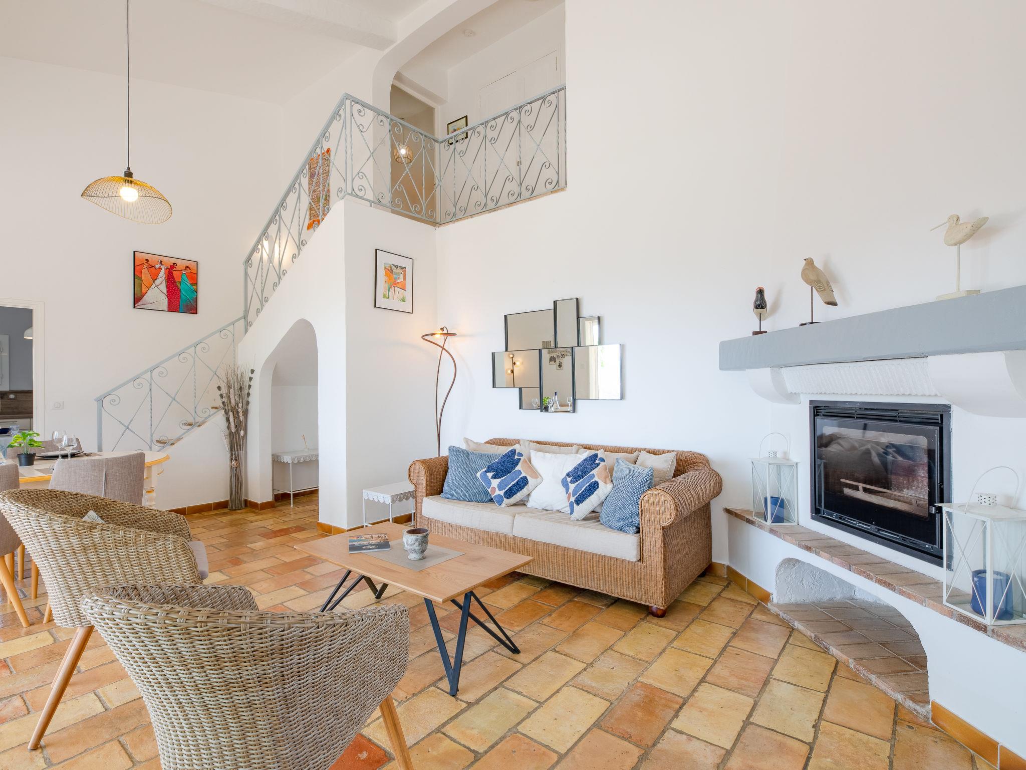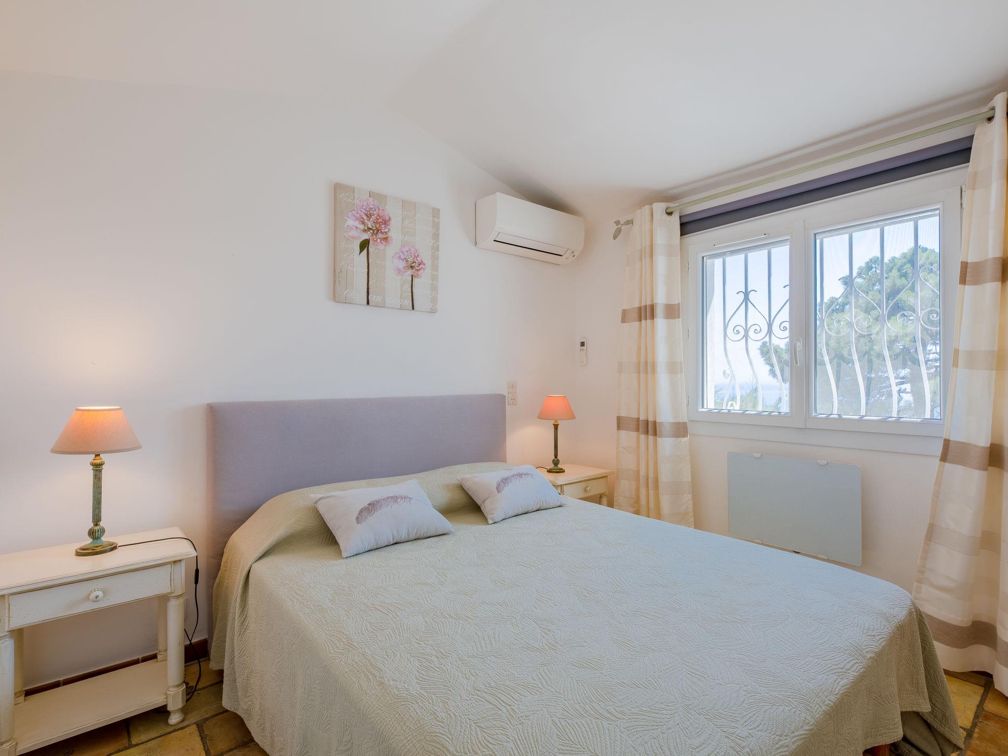 4-room villa 110 m2 on 2 levels. Comfortable and beautiful furnishings: entrance hall. 1 room with 1 french bed (160 cm, length 200 cm), bath/WC and air conditioning. 1 room with 2 beds (90 cm, length 190 cm), shower/WC. On the lower ground floor: living/dining room with panoramic window with open-hearth fireplace (only for decoration), TV (flat screen), air conditioning. Exit to the terrace. 1 room with 1 french bed (160 cm, length 200 cm), shower/WC and air conditioning. Exit to the garden. Kitchen (oven, dishwasher, 3 induction hot plates, toaster, kettle, microwave, electric coffee machine) with dining table. Electric heating. Terrace 220 m2, south facing position and west facing position. Terrace furniture, deck chairs (6). Very beautiful view of the sea. Facilities: washing machine, baby cot for up to 2 year olds. Internet (WiFi, free). Please note: non-smokers only. Maximum 1 pet/ dog allowed. Smoke alarm. On the ground floor, the access to the bedroom is through the laundry or from outside. 83107000673JO