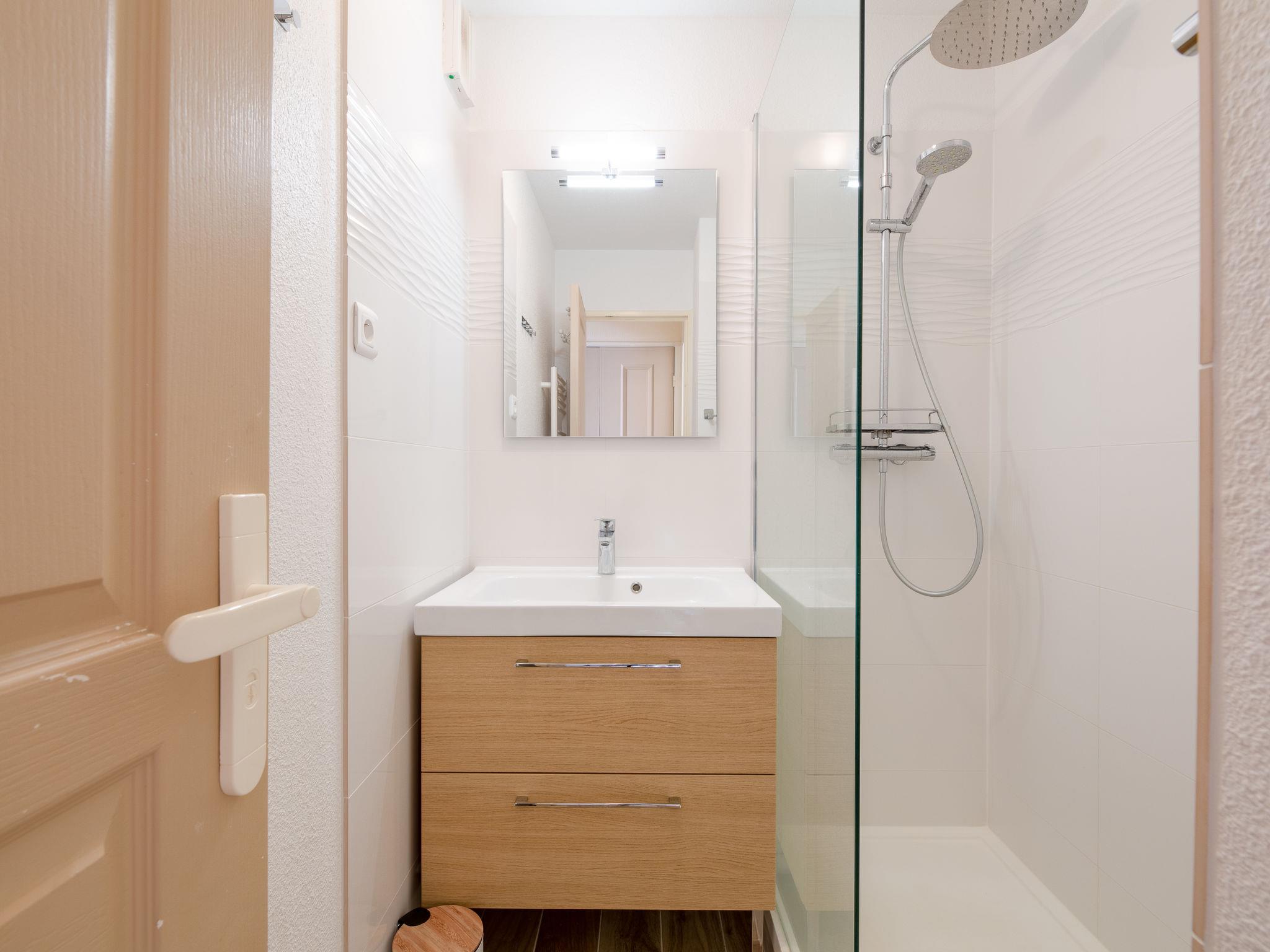 2-room apartment 32 m2 on 1st floor. Simple and practical furnishings: living/dining room with 2 beds (80 cm, length 190 cm), air conditioning. Exit to the terrace. 1 room with 1 french bed (140 cm). Kitchenette (mini-oven, dishwasher, 4 ceramic glass hob hotplates, toaster, kettle, microwave, freezer, electric coffee machine) with TV. Shower, sep. WC. Electric heating. Terrace. Beautiful view of the sea and the swimming pool. Facilities: washing machine, iron. Internet (WiFi, extra). Parking at the house. Please note: non-smokers only. Maximum 1 small pet/ dog allowed. Smoke alarm, no lift. 83107 000393 SX