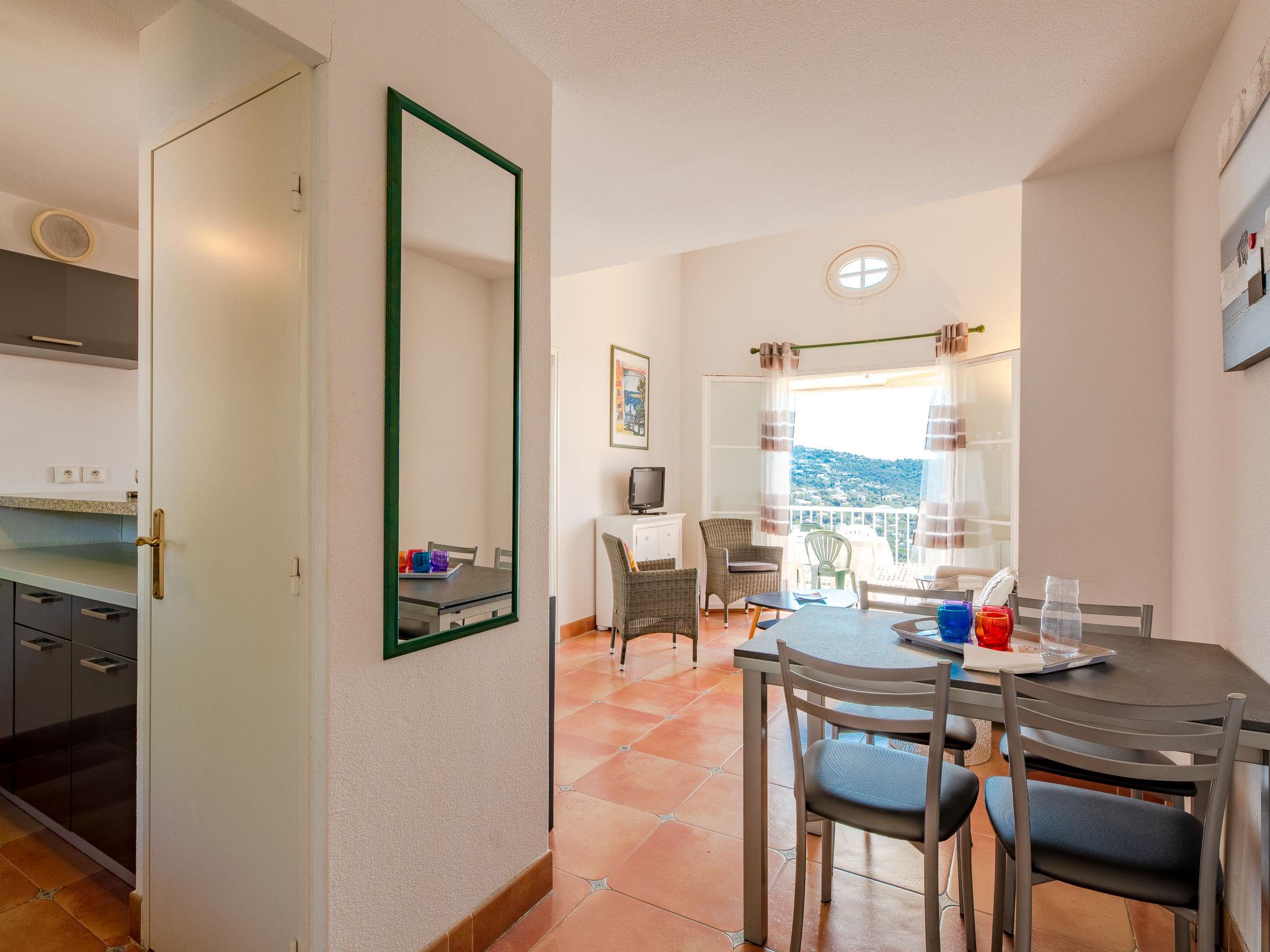 2-room apartment 47 m2 on 2 levels, on the upper ground floor. Beautiful furnishings: living/dining room with TV. Exit to the terrace. 1 room with 1 french bed (140 cm, length 190 cm). Exit to the terrace. Open kitchen (4 hot plates, oven, dishwasher, microwave). Bathroom, sep. WC. Electric heating. Upper floor: open gallery 13 m2 with curtain with 2 beds (90 cm, length 190 cm). Terrace 14 m2, south facing position. Terrace furniture. Beautiful view of the sea. Facilities: washing machine. Internet (WiFi, extra). Parking space n 16 at the house. Please note: non-smokers only. Smoke alarm. Access to housing with steps. Instead of an enclosed bedroom, some sleeping areas are located in an open-plan area (gallery, alcove, etc.). 831070003037C