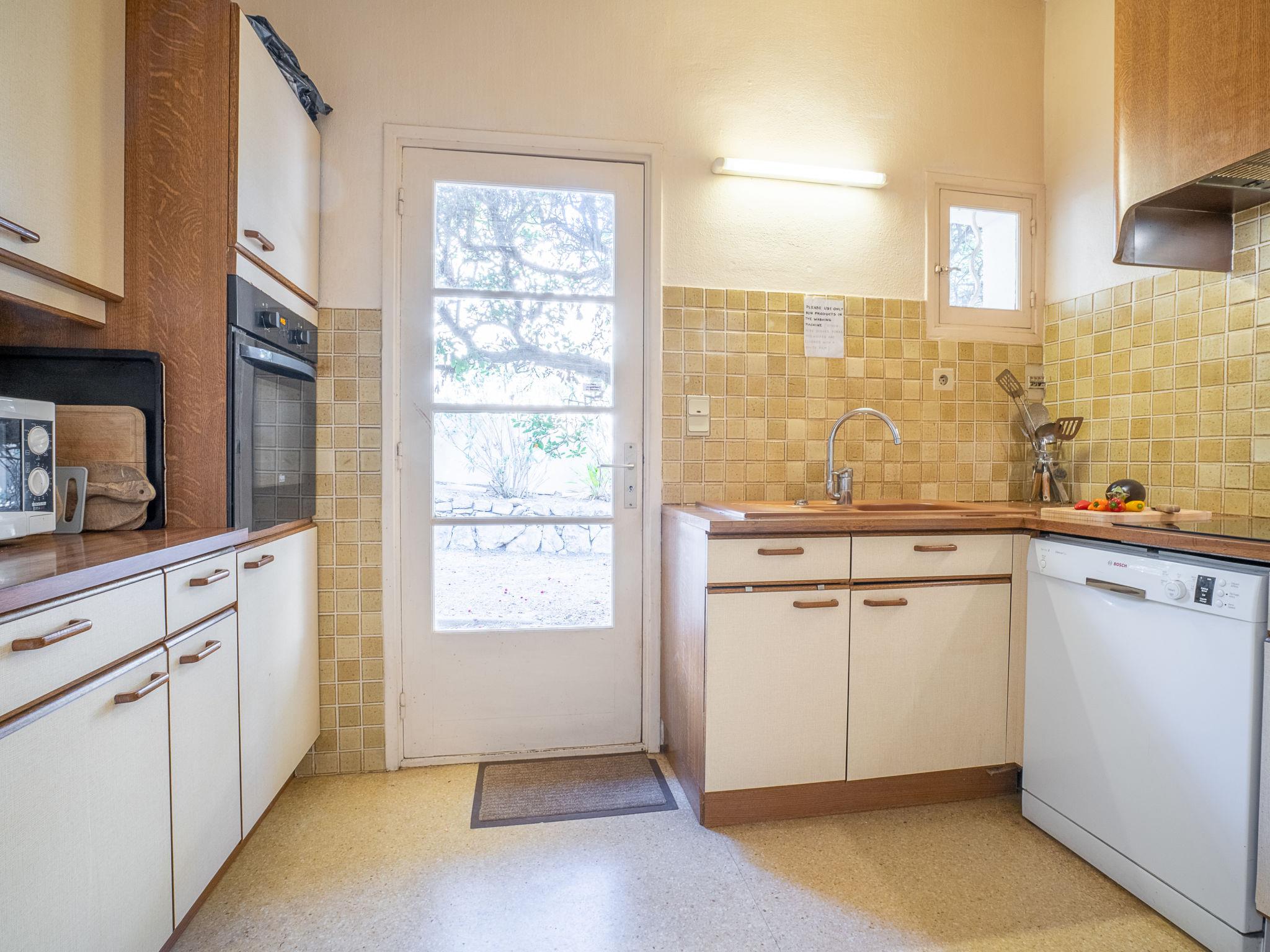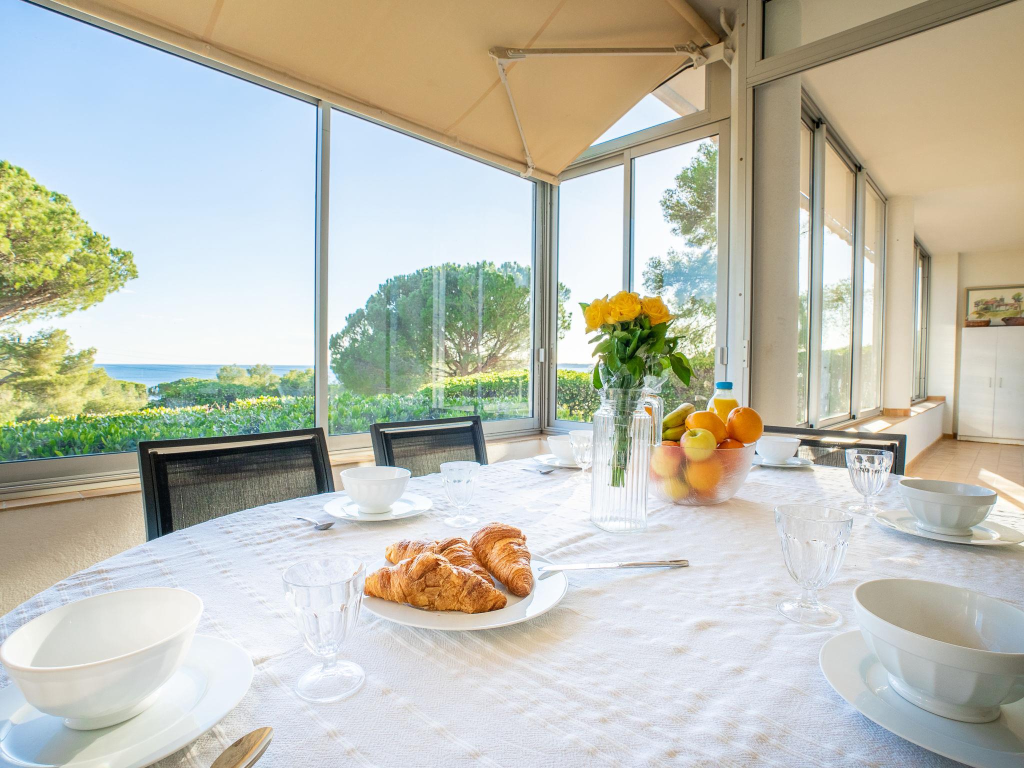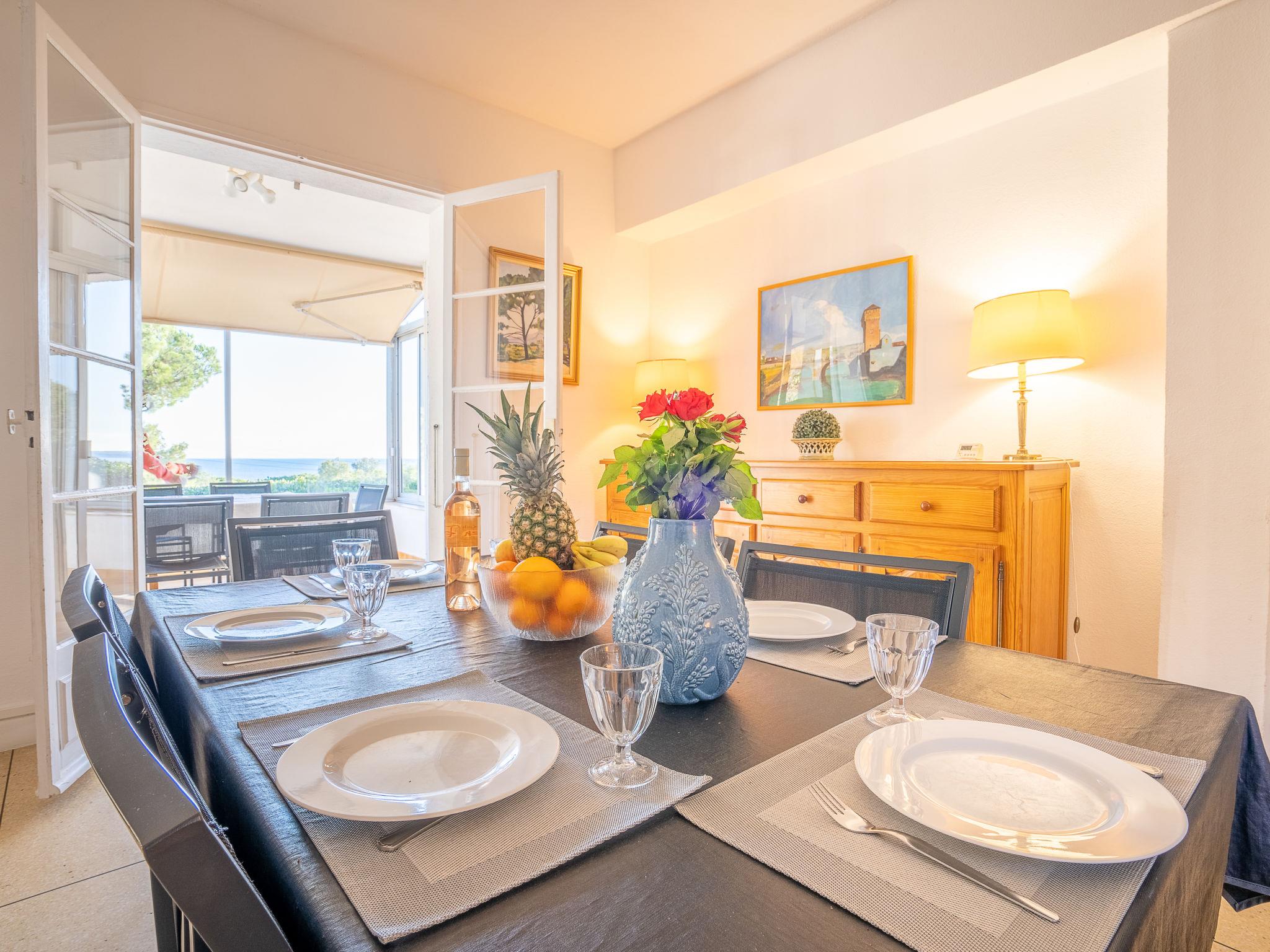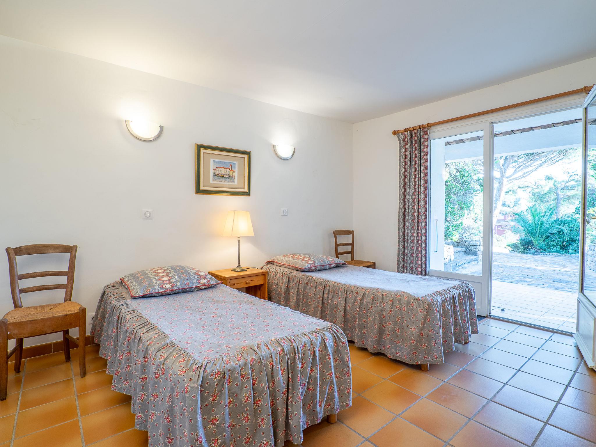 "Pigeon Vole", 5-room house 160 m2 on 2 levels. Bright, practical and cosy furnishings: 1 room with 1 french bed. Exit to the garden. 1 room with 2 beds (80 cm). Exit to the garden. Bathroom, sep. WC. Upper floor: (exterior staircase) living/dining room with dining table and satellite TV. Exit to the garden. 1 room with 1 french bed. Exit to the veranda. 1 room with 2 beds (80 cm). Exit to the veranda. Small kitchen (oven, dishwasher, 4 ceramic glass hob hotplates, toaster, kettle, microwave, freezer, electric coffee machine). Exit to the garden. Bathroom, sep. WC. Oil heating. Natural stone floors. Patio. Terrace furniture, electric barbecue, conservatory. View of the sea. Facilities: washing machine. Internet (WiFi, free). Please note: non-smoking house. Maximum 1 pet/ dog allowed. No internal connecting door between the floors. When there are less than the maximum number of guests staying at the property, one floor will not be available for use. 83107001527V8