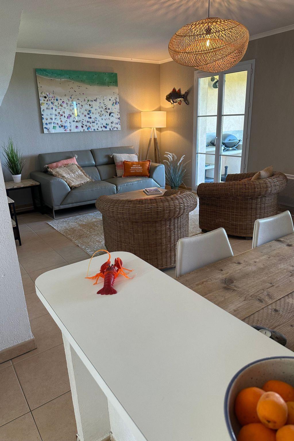 The villa is a luxurious modern holiday home in a small private domaine on the Cote D' Azur with its own garden and terrace overlooking the sea. All modern comfort is available : modern kitchen, washing machine, sat tv, wifi, streaming radio, bbq, 2 bathrooms, 3 bedrooms, 2 toilets The villa is located 1,5 km. from the beach , 3 minutes by car, restaurants and shops 5 minutes away. Ste Maxime is at short distance, where many activities take place in the summer months Nearby you can make beautiful walks in the Massif des Maures, a large nature reserve. Of course there are many possibilities for water sports. From the port there is a regular boat connection to St Tropez. Les Issambres is also a good base for the surrounding cities, such as Frejus, Cannes, Nice and Monaco. A little further away is Aix en Provence , well worth a visit , making Villa Les Coralines an ideal summer and winter holiday home . The resort of Les Issambres has a long coastline with many sandy beaches . There are beaches where you can stay for free and there are beaches where you can use a place with deckchair and parasol for a fee.