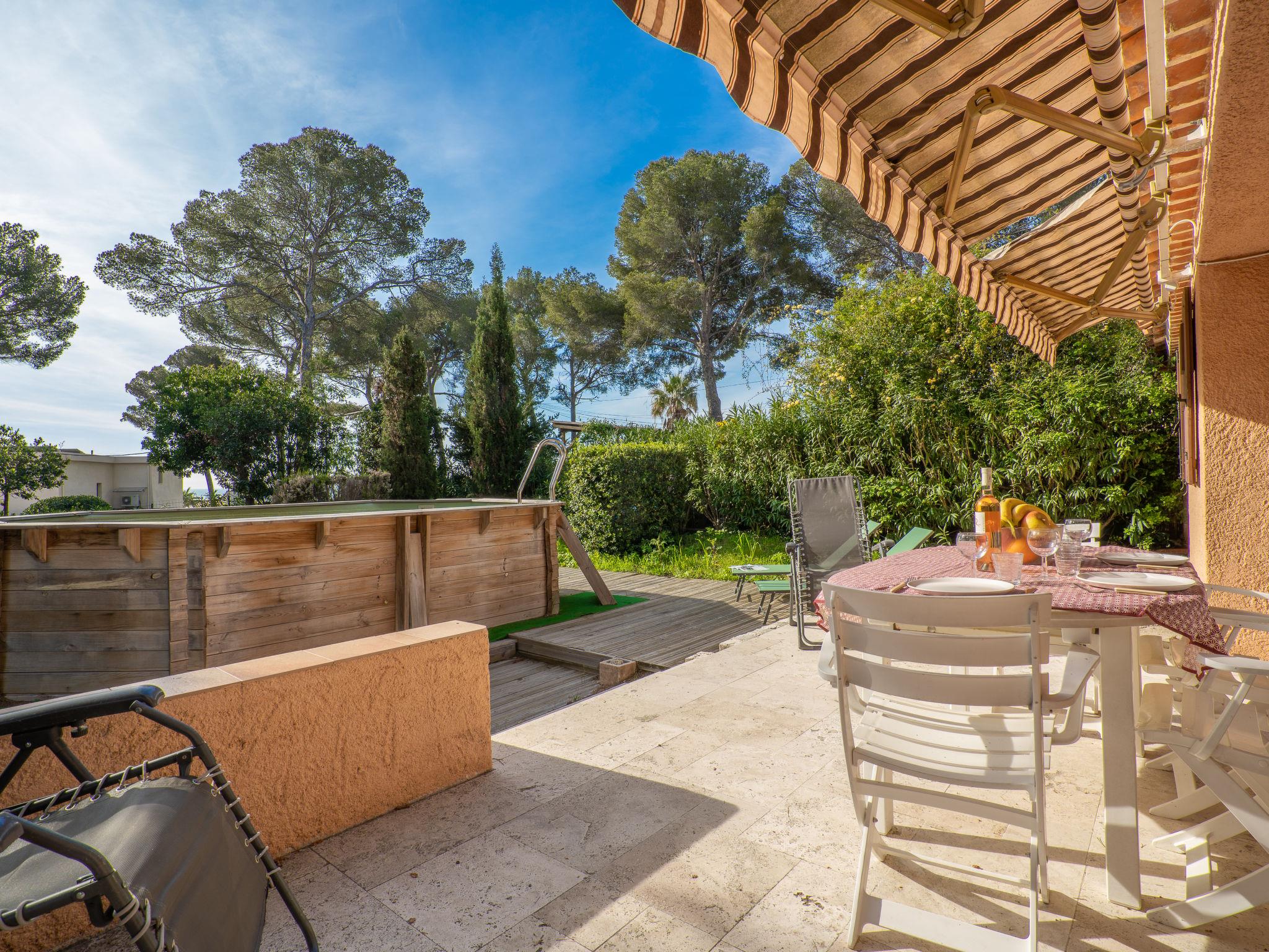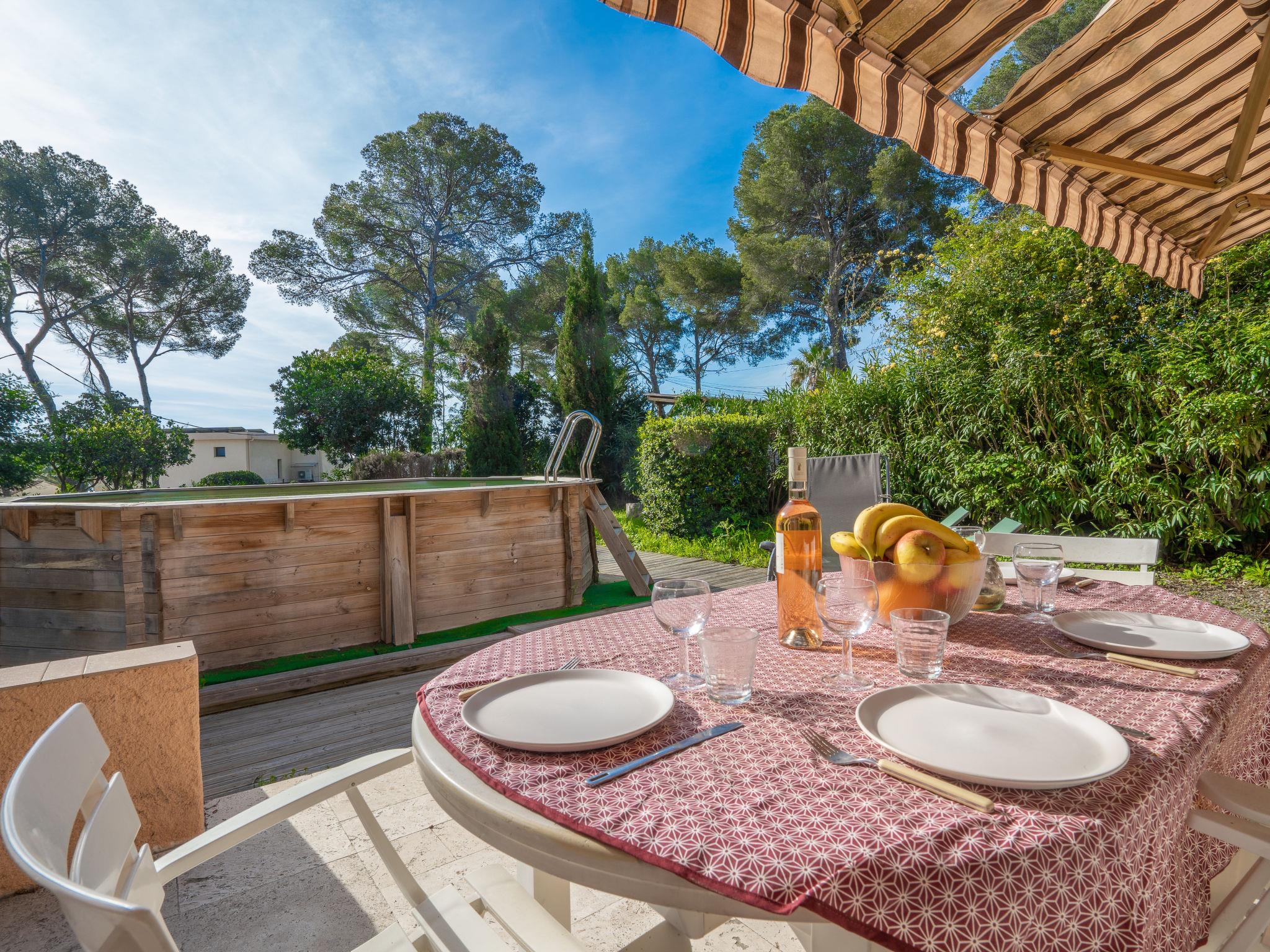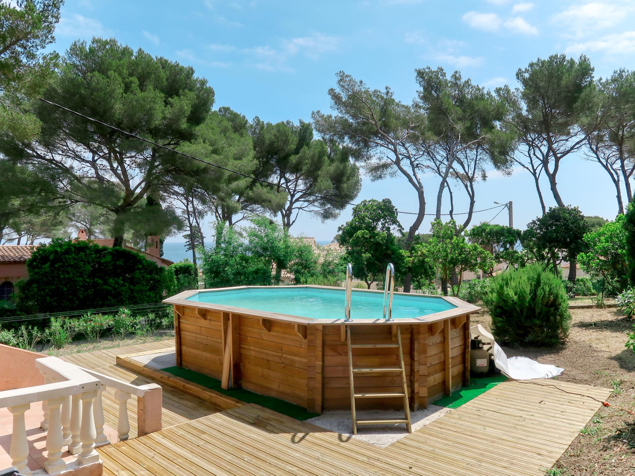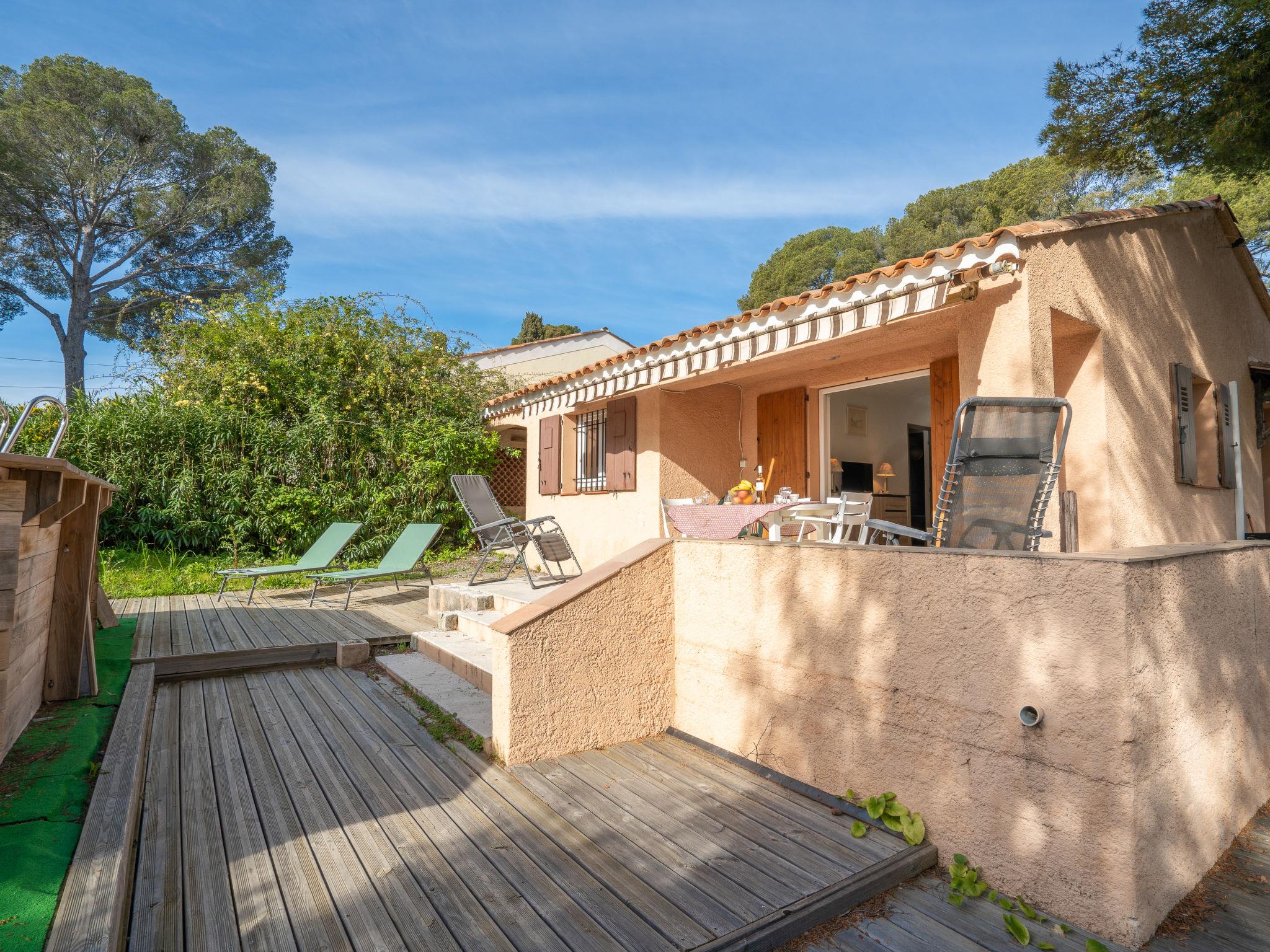 Small house "Haydée". 4 km from the centre of Les Issambres, 12 km from the centre of Sainte Maxime, in the residential district, 300 m from the sea. Private: natural state property 700 m2 (fenced) with wildlife garden and trees, swimming pool (above ground) (5 x 3 m, seasonal availability: 01.Apr. - 31.Oct.) with alarm system. Narrow motor access. Stepped path to the house. Roofed, parking on the premises. Shop 4 km, bus stop 400 m, rocky beach 300 m. The owner does not accept any groups.
