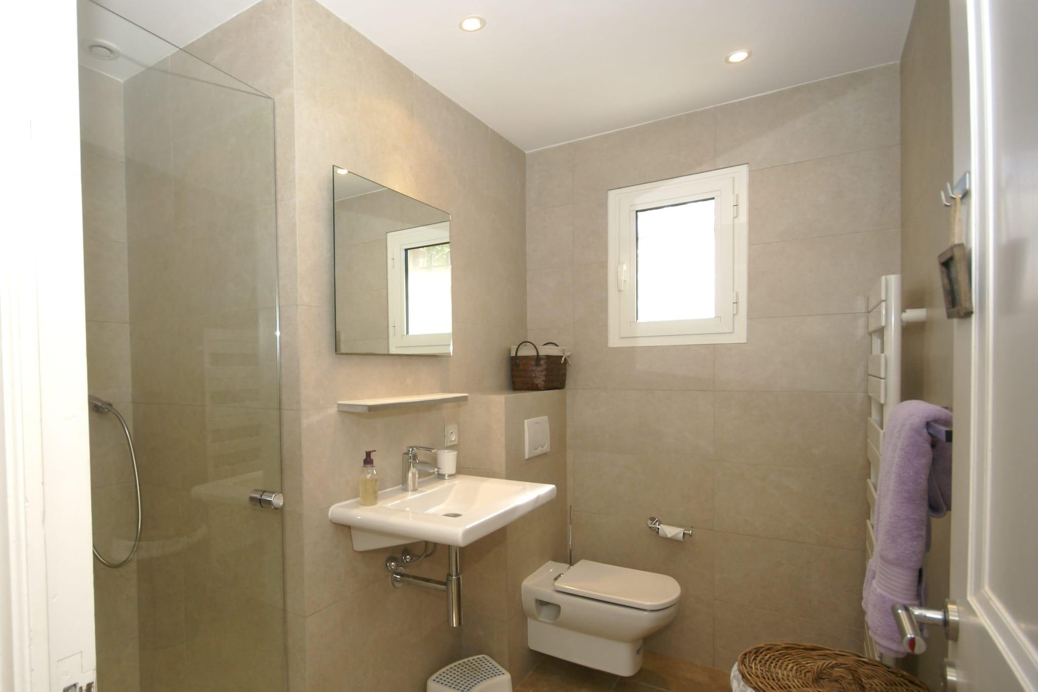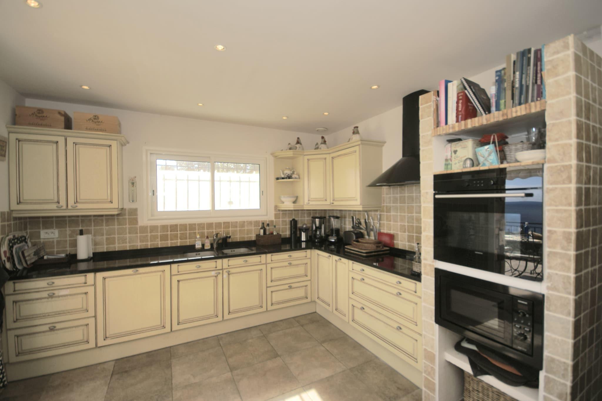 Ground floor: (Living room(seating area, electric kettle, fridge), bedroom(double bed(160 x 200 cm), air conditioning), bedroom(2x single bed, air conditioning), bathroom(shower, washbasin, toilet), bathroom(shower, 2x washbasin, toilet)) On the 1st floor: (Kitchen(electric kettle, cooker(4 ring stoves), coffee machine(filter), oven, microwave, dishwasher, fridge-freezer, air conditioning), Living/diningroom(dining table, fireplace, seating area), bedroom(double bed(200 x 200 cm), air conditioning), bathroom(shower, washbasin, toilet), bathroom(shower, washbasin, toilet)) On the 2nd floor: (bedroom(bunk bed, air conditioning), roof terrace) TV, stove, shower, washing machine, patio, heating, terrace, terrace(roofed), garden, garden furniture, sun loungers, BBQ, swimming pool(private, 12 x 8 m.), fitness equipment, children's bed, children's bed, high chair, ironing board, iron