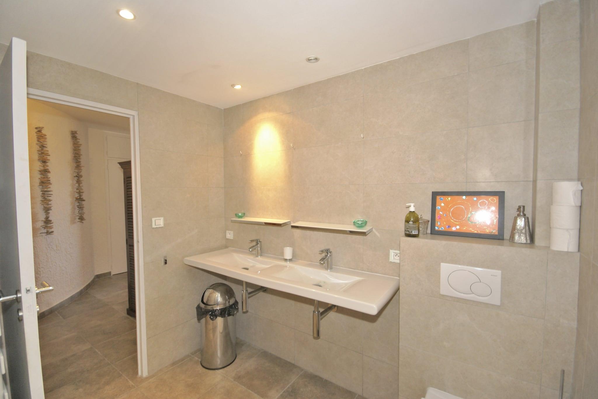 Offering panoramic views from the luxury swimming pool and terrace, this is an exclusive 4-bedroom villa in Les Issambres. It is perfect for a family or group pf 8 persons. The villa is 1 km from the beach and various water sports. There are many beaches along the romantic Mediterranean Sea Coast, which are great to spend some time on the waters. Restaurants and supermarkets can be found at 3 km. You can spend a day strolling through Saint-Tropez, another in exploring Saint-Maxime and yet another in Saint-Aygulf. While you are having meals in the terrace, dipping in the pool, or relaxing in the lounge, you can admire the sea views from everywhere in and around the villa. All bedrooms have air conditioning and heating. In the fenced garden, children and pets can play around safely. You have garden furniture and sun loungers to relax. Evenings can be enjoyed by the poolside with the barbecue. An enclosed parking area, 2 children's beds, and a high chair are available for convenience.