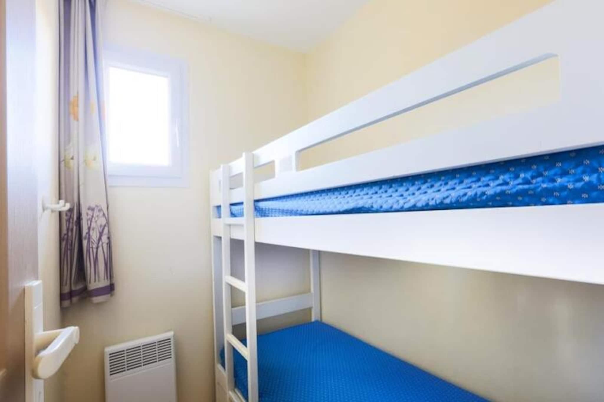 This spacious 39m² apartment sleeps up to six guests in a comfortable Provençal setting at Le Hameau des Issambres-maeva Home residence. The apartment features a living room with a sofa bed, a trundle bed, and a cabin area with bunk beds, a bedroom with a double bed, a kitchen area, two bathrooms, a separate toilet, and a furnished covered terrace with a sea view. A reserved parking space and elevator access are included. Located between Saint-Raphael and Saint Tropez, this residence boasts a beautiful swimming pool (open May-September) and is just a few kilometers from the beaches of Sainte Maxime and Issambres (reachable via a 4km walking path). Explore the surrounding areas of Fréjus, Saint Raphael, Sainte Maxime, or enjoy water activities like sailing, water skiing, diving, and kayaking (offered nearby). The maeva Home Selection label ensures well-maintained apartments with quality equipment. Wi-Fi, bed linens, towels, and end-of-stay cleaning are all available for an additional fee. Pets may be allowed for an extra charge, but you should inquire directly with the residence. Free outdoor parking is subject to availability.