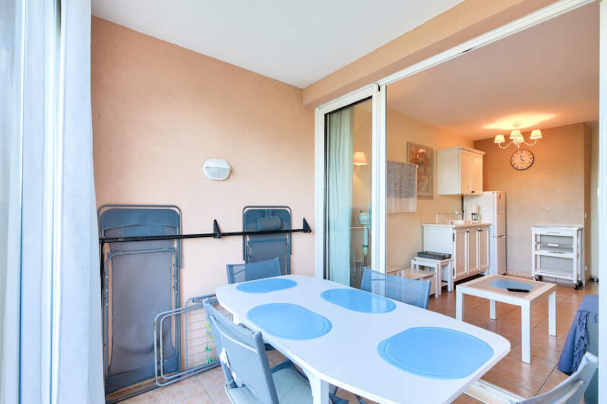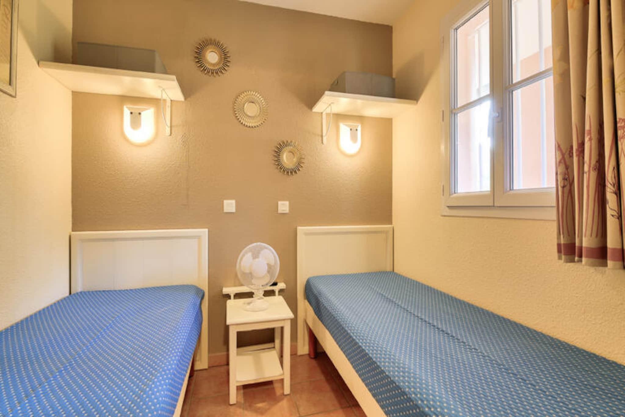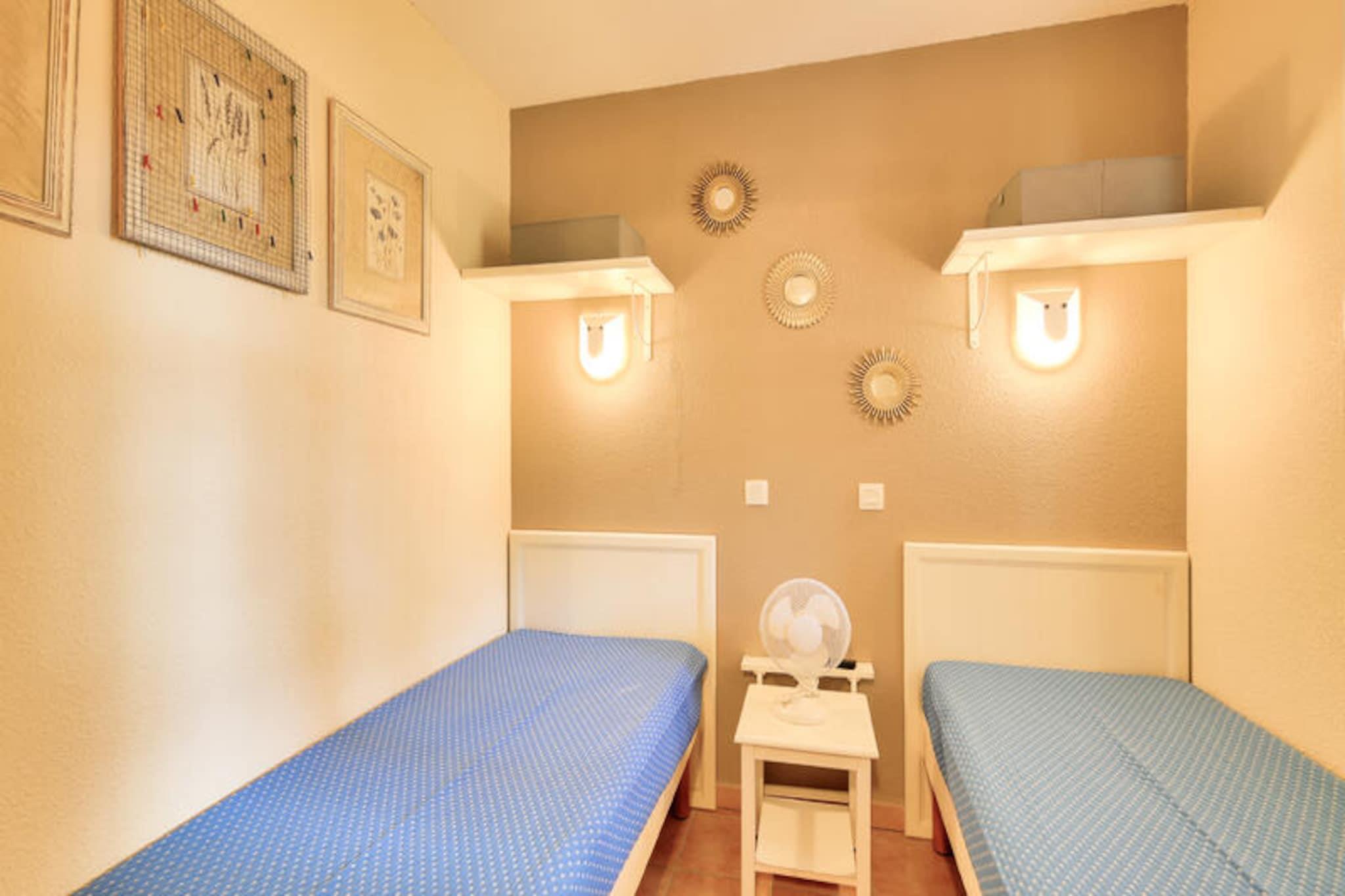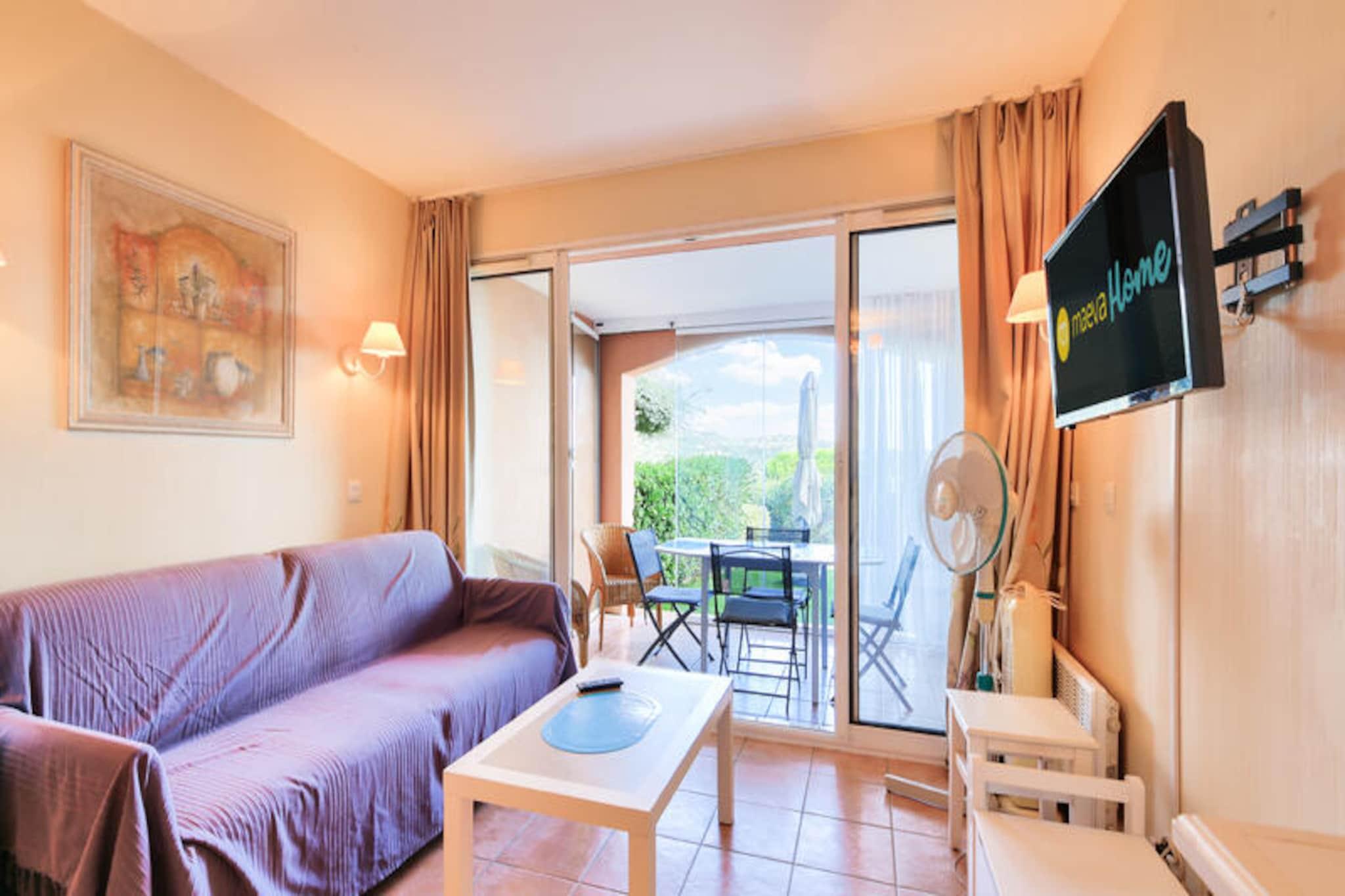 This charming apartment is perfect for a budget-friendly getaway, offering a cozy and functional layout for up to 4 people. It features a comfortable living room with a sofa bed, a cabin area, and a bedroom with two single beds. Pets are allowed, with additional charges, making it ideal for a family or pet lovers. The property includes free outdoor parking and a private garden with stunning sea views. Bed linen and towels are available for an additional fee, and there’s a mandatory cleaning fee at the end of the stay. Located just a short distance from the beautiful beaches of Sainte Maxime and Issambres, this apartment provides easy access to various water activities such as sailing, water skiing, diving, and kayaking. The surrounding area is rich with hiking trails, and the nearby towns of Fréjus, Saint Raphael, and Sainte Maxime offer plenty of cafes, markets, and dining options. Guests can enjoy the natural beauty and vibrant culture of the region while taking advantage of the nearby activities and attractions. The apartment is equipped with a well-maintained kitchen area, including an American-style setup with a table and chairs. The bathroom features a shower and WC, ensuring convenience for guests. Additionally, the residence offers access to a large outdoor swimming pool, open seasonally from May to September. This apartment offers great value for money, with essential amenities and a peaceful setting for a memorable vacation.