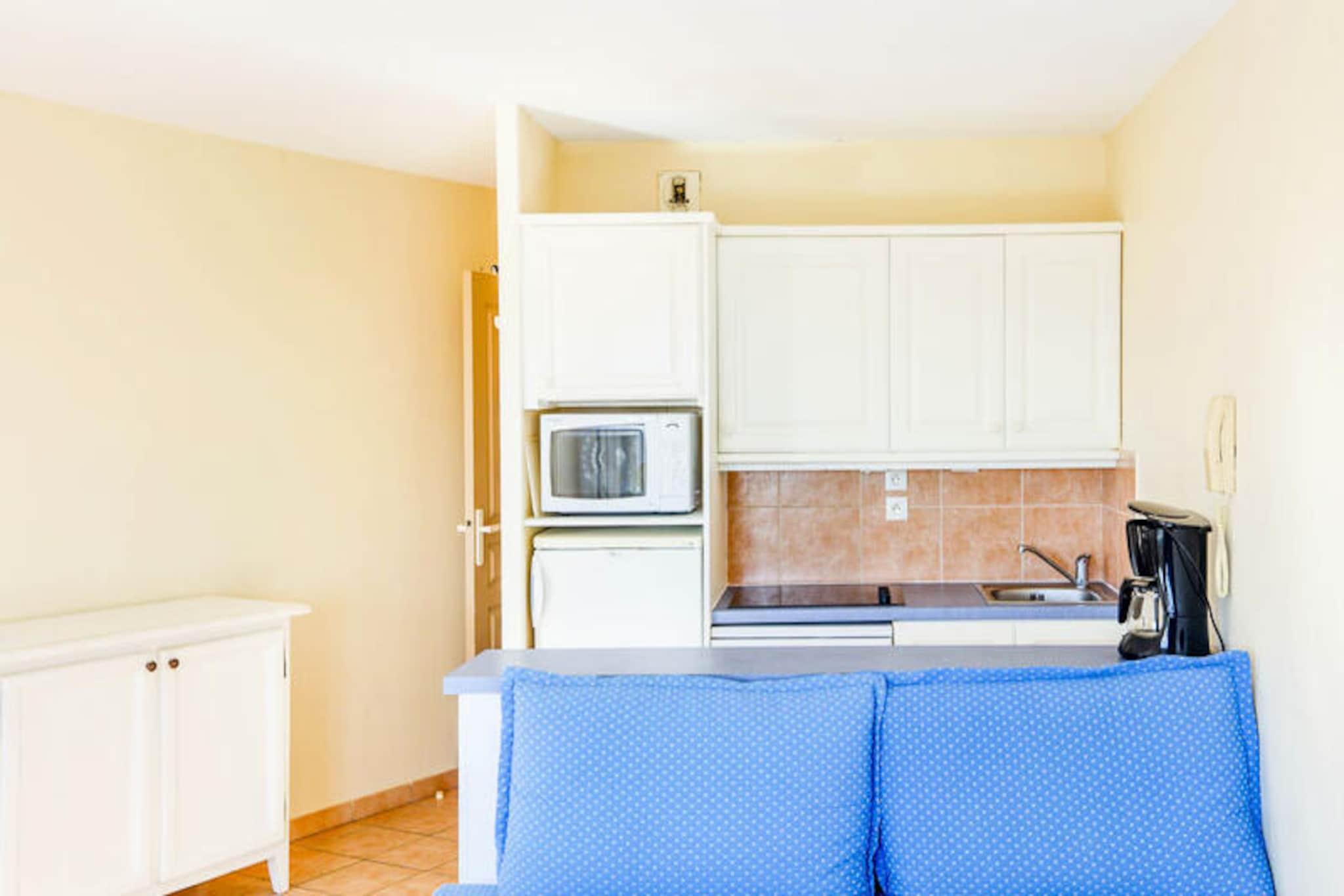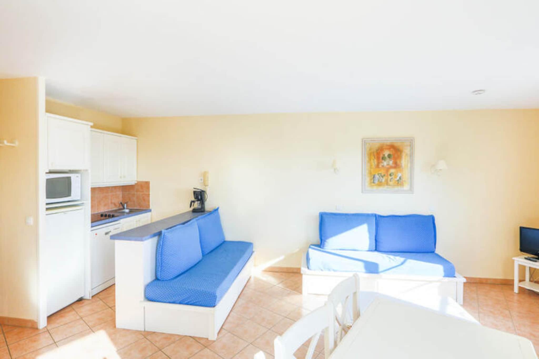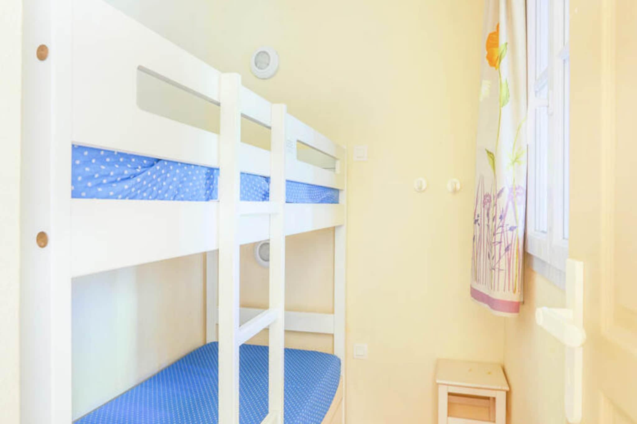 This spacious apartment accommodates families or groups with a double bedroom, a cabin area with bunk beds, and a living room with two sofa beds and a trundle bed. The apartment features a furnished terrace with sea views, a reserved parking space, and storage. Pets are allowed for an additional fee, and bed linen and towels are available for an extra charge. Mandatory end-of-stay cleaning is included, and Wi-Fi is available for a supplement (subject to availability). Ideally located near the beaches of Sainte Maxime and Issambres, the apartment offers access to water activities such as sailing, water skiing, and diving. Outdoor enthusiasts will appreciate nearby hiking trails, golf courses, and a children’s play area. The residence is close to Fréjus, Saint-Raphaël, and Sainte-Maxime, offering markets, cafes, and attractions to explore. The apartment includes a fully equipped kitchen, a living area with a dining table, and two bathrooms with a bathtub, shower, and toilet. Enjoy outdoor dining on the furnished patio, with six chairs and two deckchairs. Guests can also take advantage of the on-site outdoor swimming pool (seasonal) and additional sports facilities, such as tennis and quad biking (extra charges may apply).