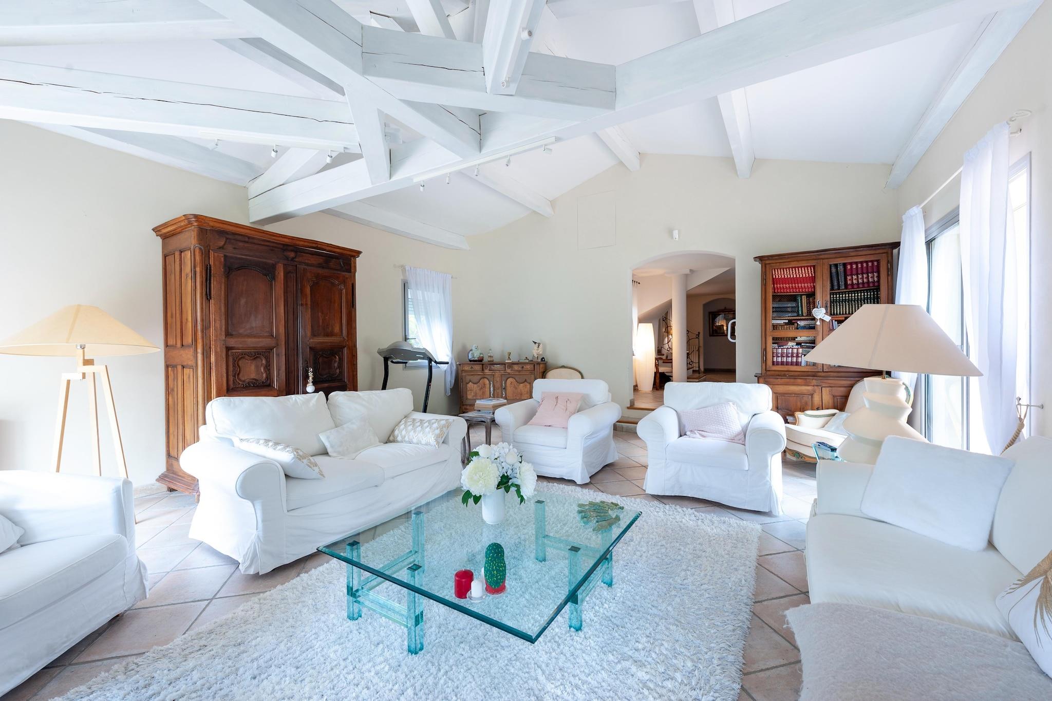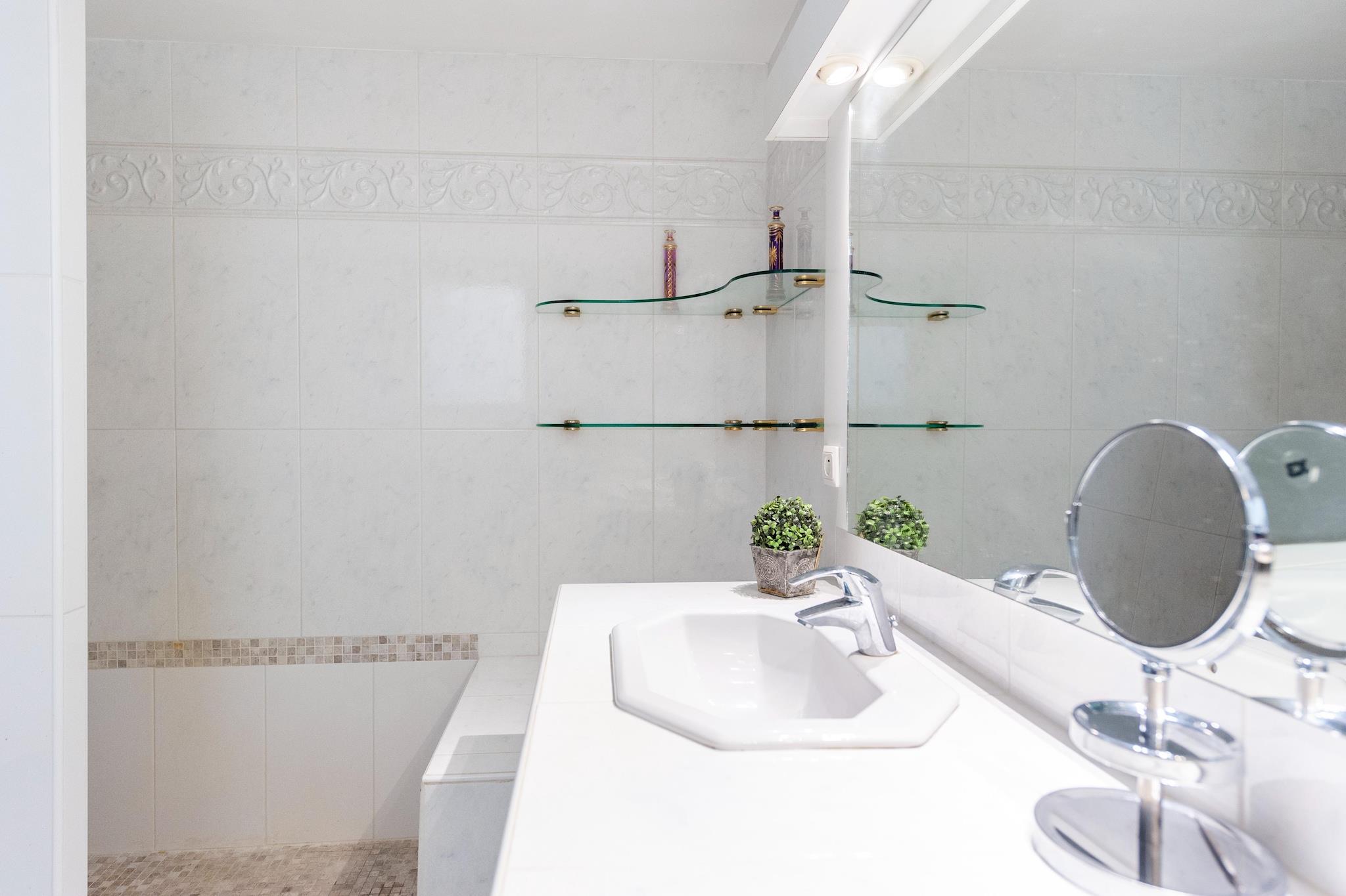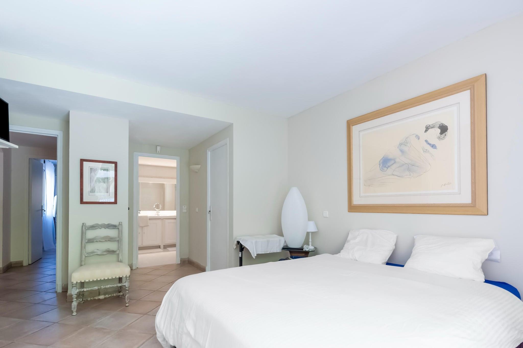 Ground floor: (Living room(TV, seating area), dining room(dining table(6 persons)), Kitchen(electric kettle, toaster, hood, coffee machine(espresso, filter), oven, microwave, dishwasher, fridge-freezer), Bedroom with bathroom(double bed(160 x 200 cm), TV, shower, washbasin, toilet), Bedroom with bathroom(double bed(160 x 200 cm), TV, bathtub with shower, washbasin, toilet), toilet, hall) On the 1st floor: (bedroom(double bed(200 x 160 cm), TV), bathroom(bath tub, washbasin), toilet, Landing) garden doors, garden furniture, sun loungers, BBQ(gas), parking, lounge set