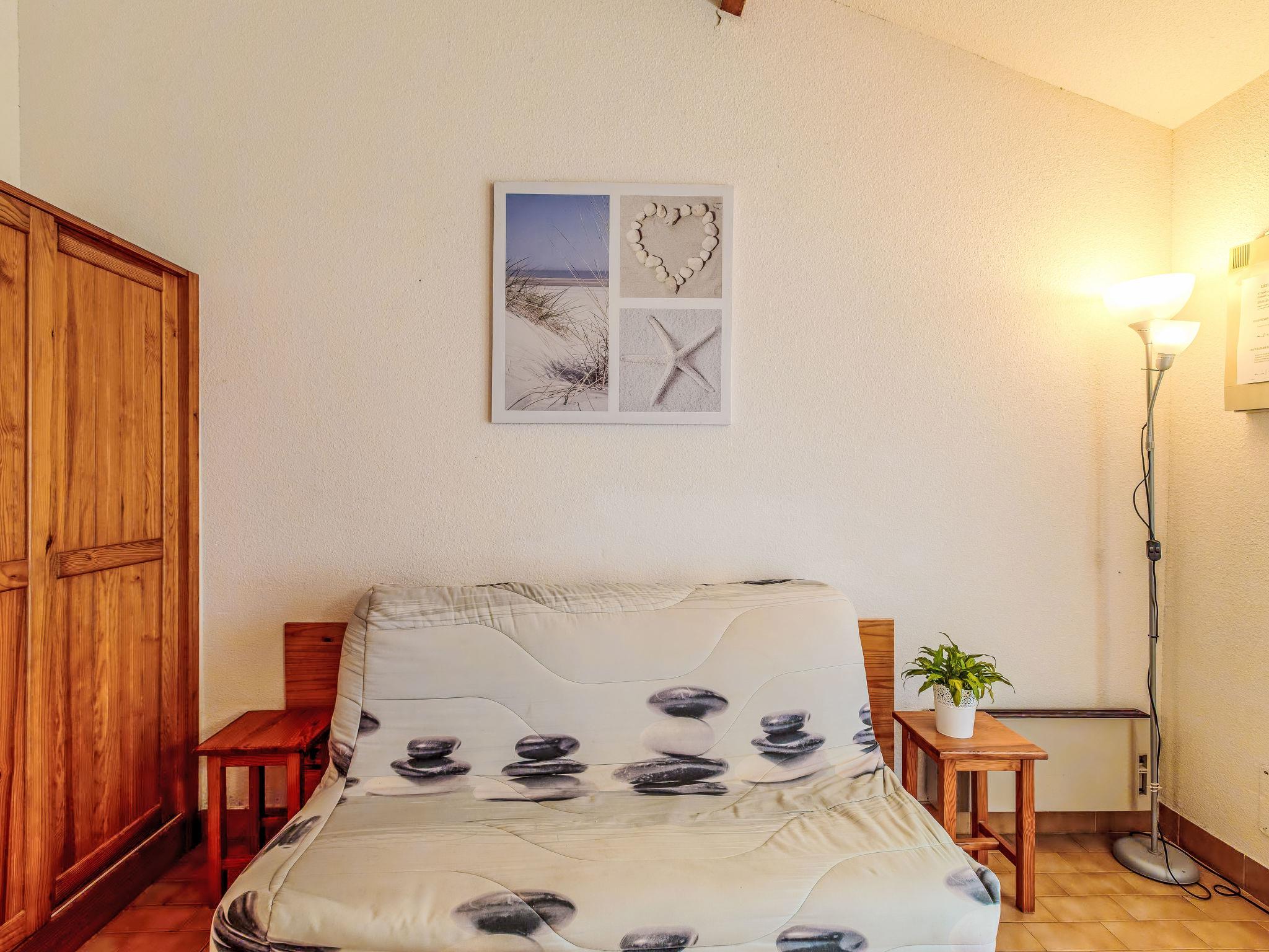 1-room terraced house 18 m2, south-west facing position. Object suitable for 2 adults + 2 children. Living/dining room with 1 double sofabed (1 x 140 cm, length 190 cm), TV. Exit to the terrace. Alcove with 1 x 2 bunk beds (80 cm, length 190 cm). Kitchenette (3 hot plates, microwave). Bath/WC. Electric heating. Terrace. Terrace furniture. Facilities: Internet (WiFi, extra). Parking space n 37. Please note: maximum 1 pet/ dog allowed. Smoke alarm. Instead of an enclosed bedroom, some sleeping areas are located in an open-plan area (gallery, alcove, etc.). Offer by a private individual according to Art. 155, IV of CGI.