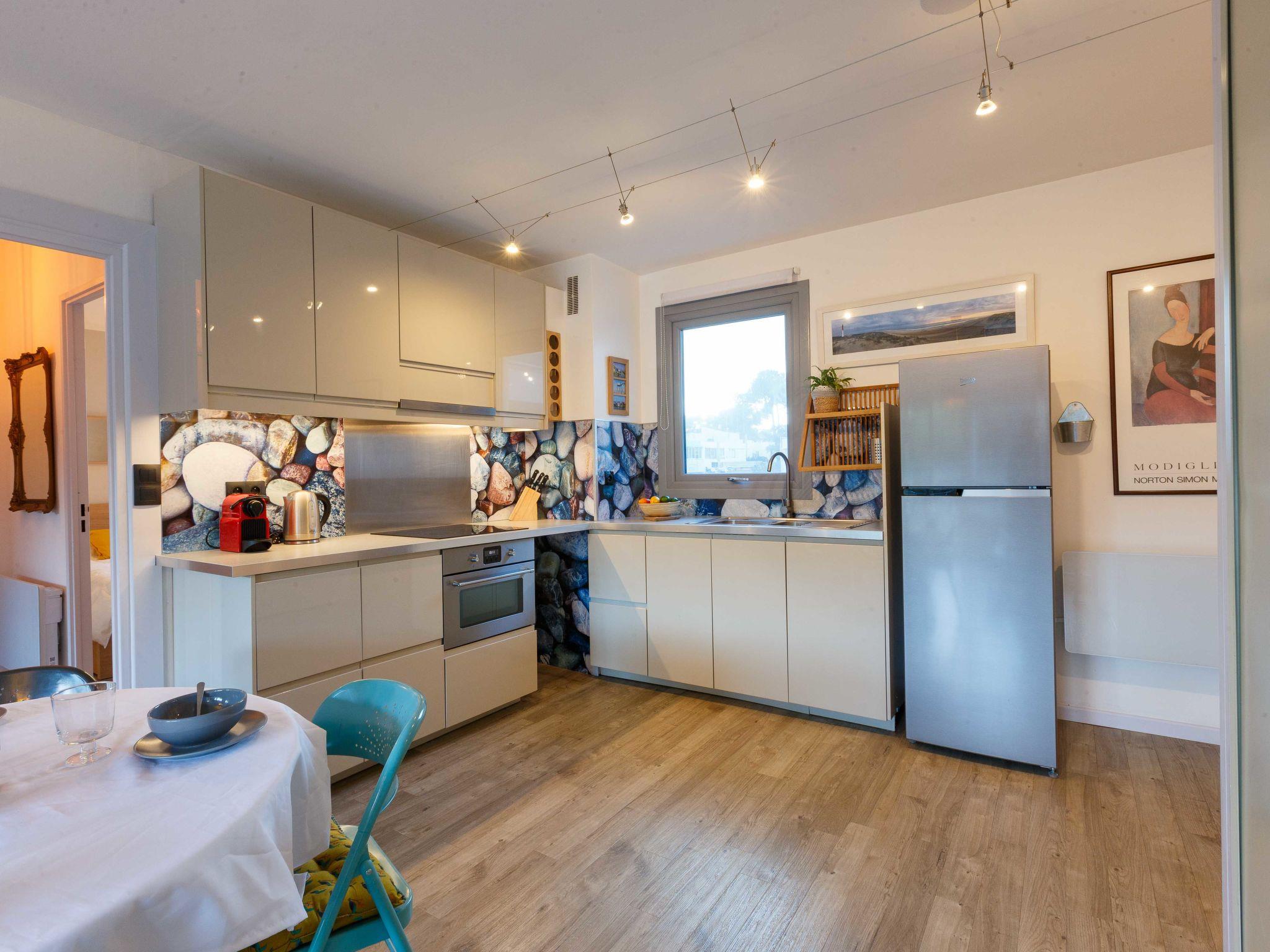 3-room apartment 63 m2 on 1st floor. Beautiful furnishings: living/dining room with TV (flat screen). Exit to the terrace. 1 room with 1 french bed (1 x 160 cm, length 190 cm). 1 room with 2 beds (90 cm, length 190 cm). Kitchenette (4 hot plates, oven, dishwasher, freezer, electric coffee machine). Shower, sep. WC. Electric heating. Terrace 4 m2. Terrace furniture. Facilities: washing machine. Internet (WiFi, free). Parking space n 15 (roofed, 1 car). Please note: apartment street side. Smoke alarm.