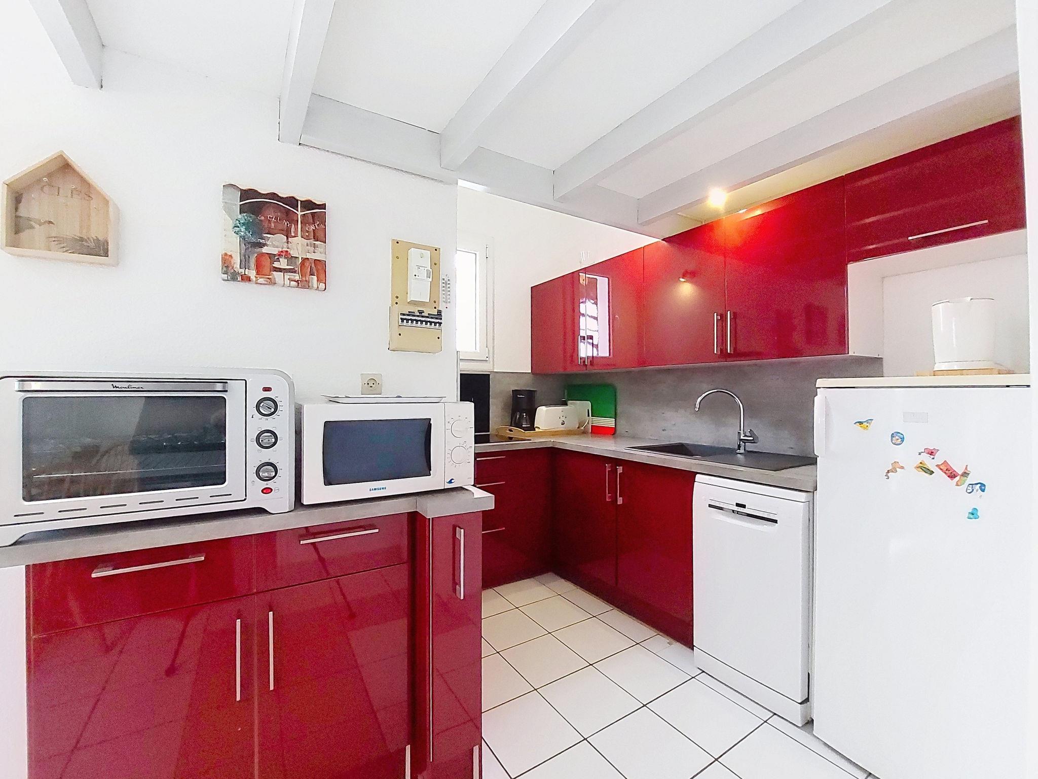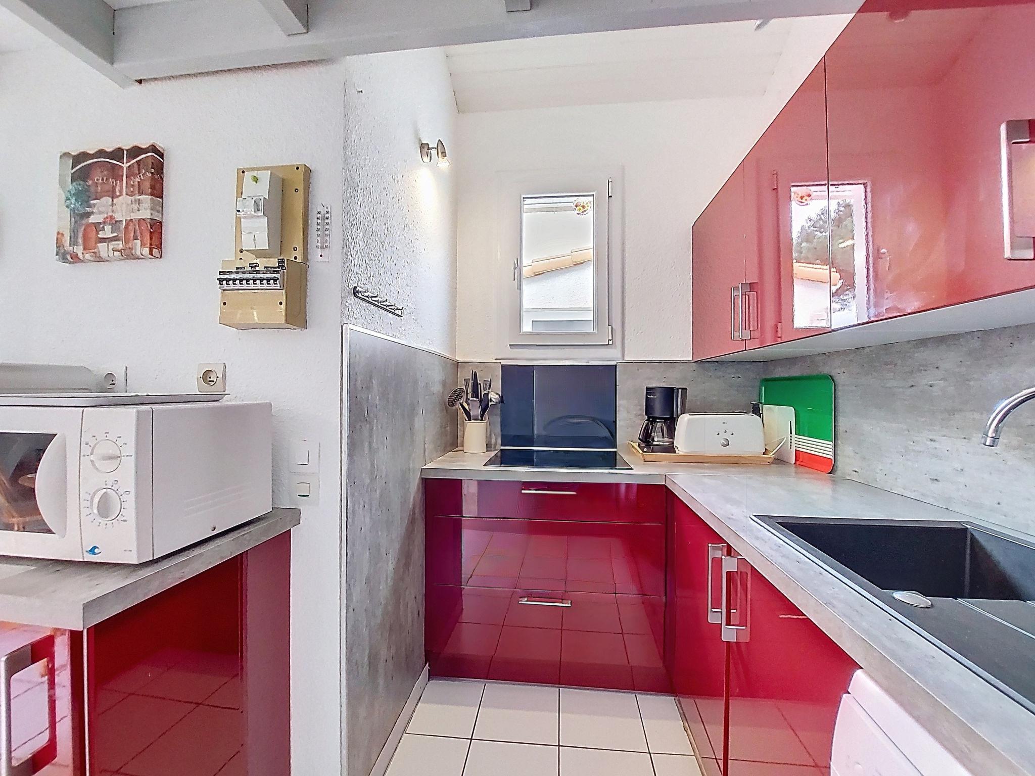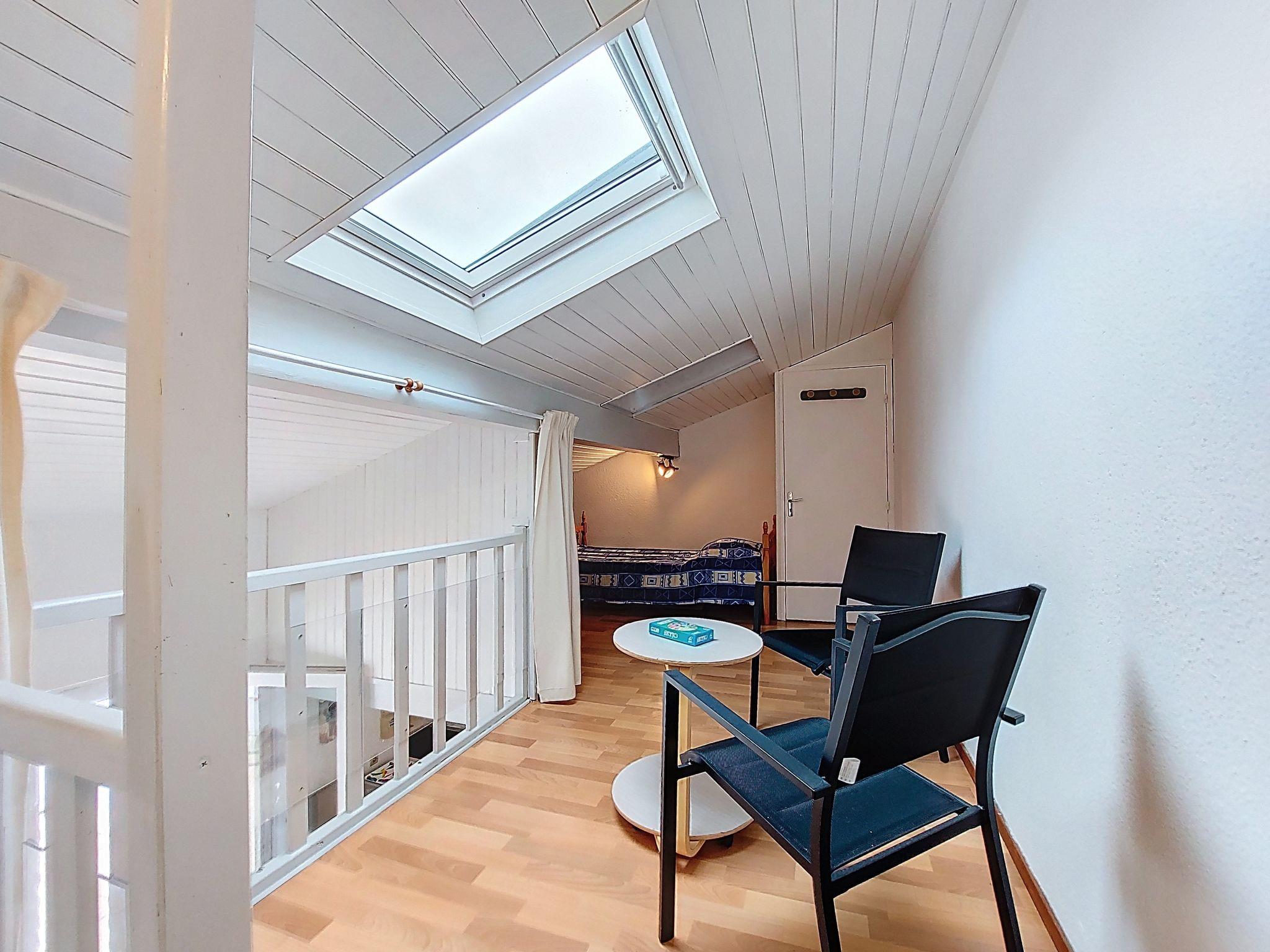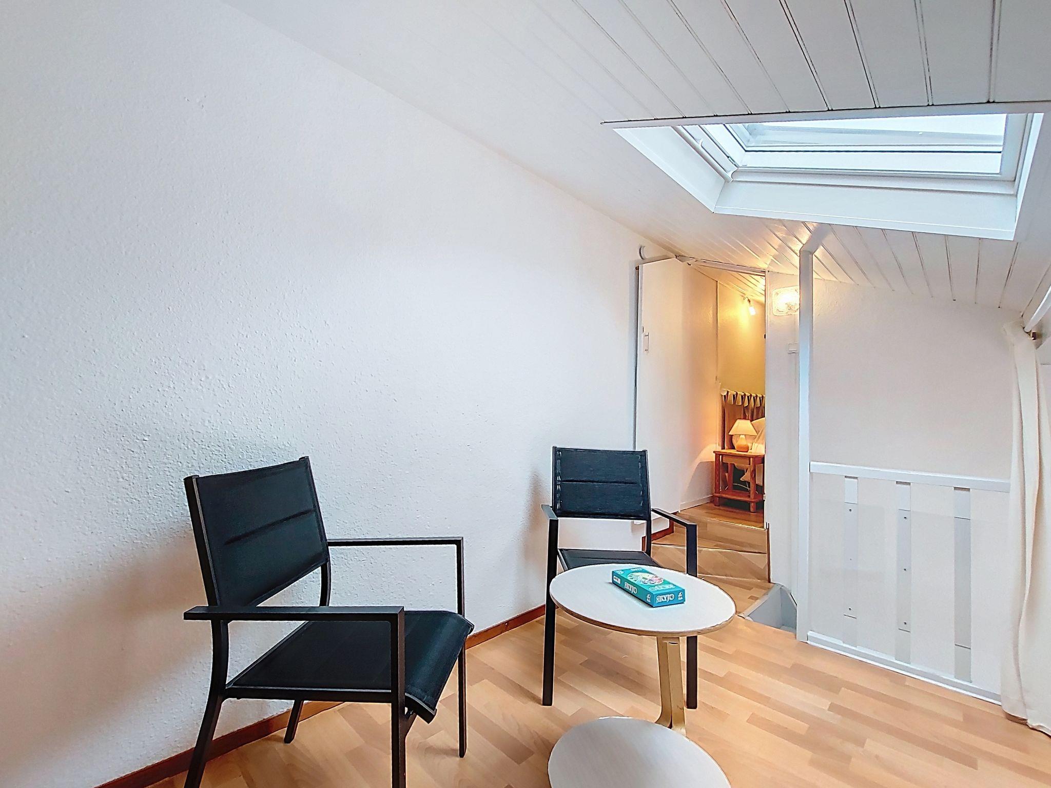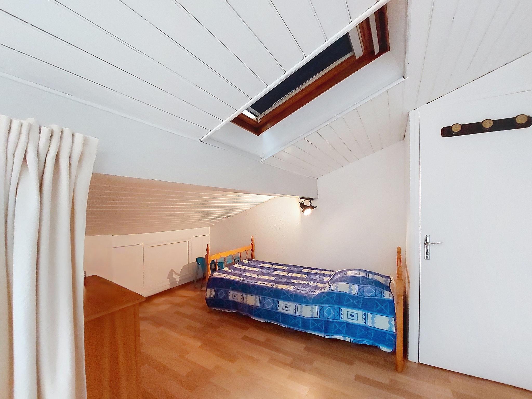 3-room terraced house 40 m2 on 2 levels, south-east facing position. Beautiful furnishings: living/dining room with TV (flat screen), electric heating and fan. Exit to the terrace. 1 room with 1 french bed (1 x 140 cm, length 190 cm). Open kitchen (oven, dishwasher, 4 ceramic glass hob hotplates, toaster, kettle, microwave, electric coffee machine). Shower/WC. Electric heating. Upper floor: (steep stair), 1 room with sloping ceilings with 1 french bed (1 x 140 cm, length 190 cm). Gallery with 1 bed (90 cm, length 190 cm). Terrace 45 m2, north facing position and, east facing position. Terrace furniture, electric barbecue, box-room. Facilities: washing machine, children's high chair, baby cot. Internet (WiFi, extra). Parking space n 172. Please note: maximum 1 small pet/ dog allowed. Smoke alarm. Offer by a private individual according to Art. 155, IV of CGI.