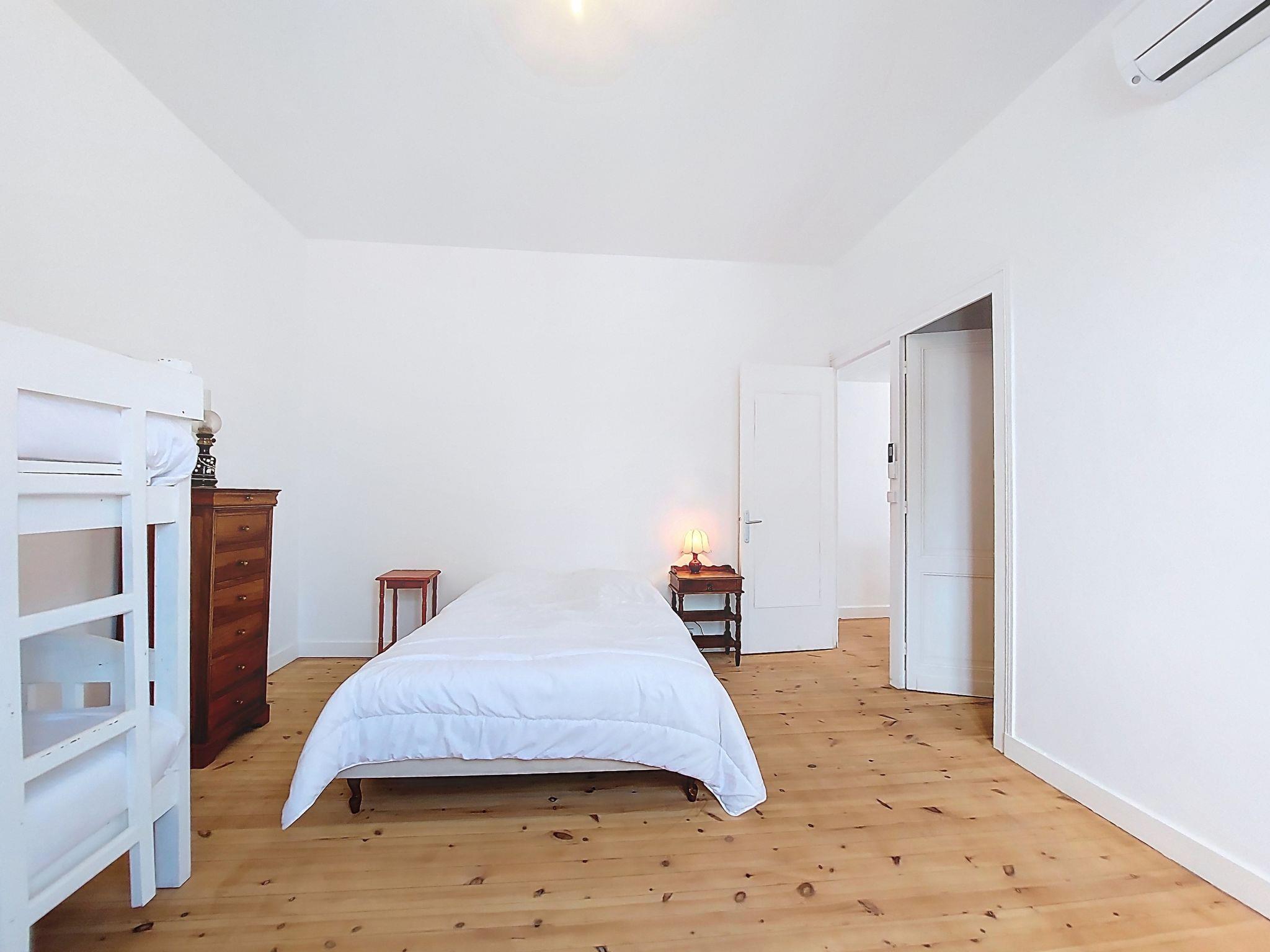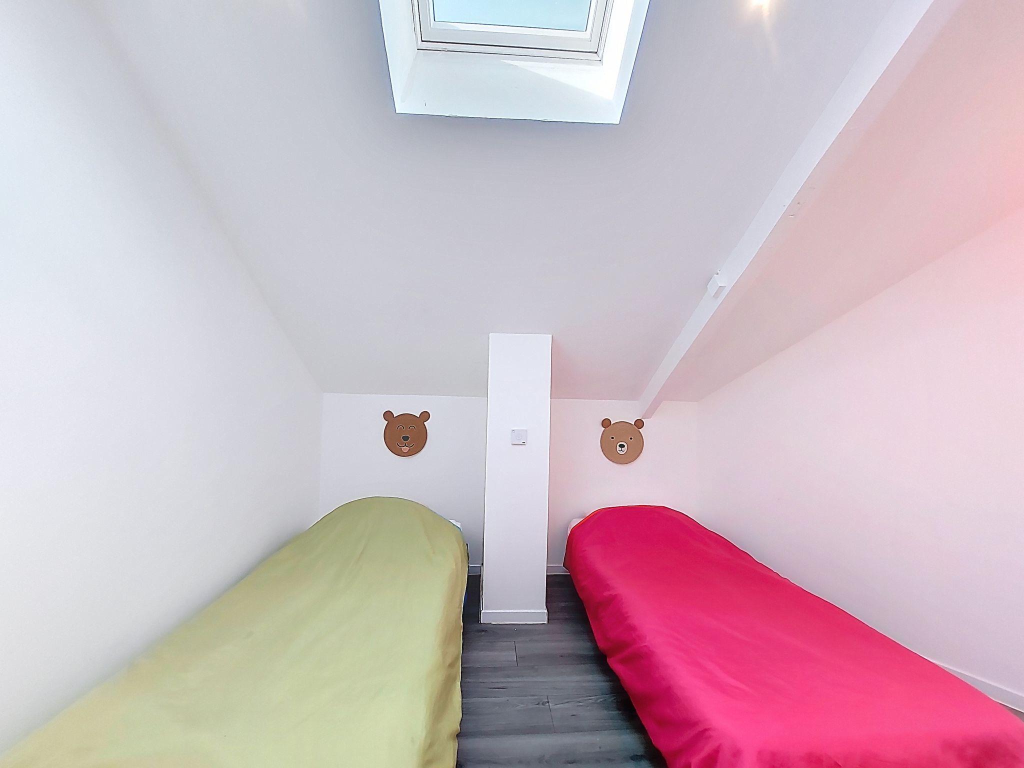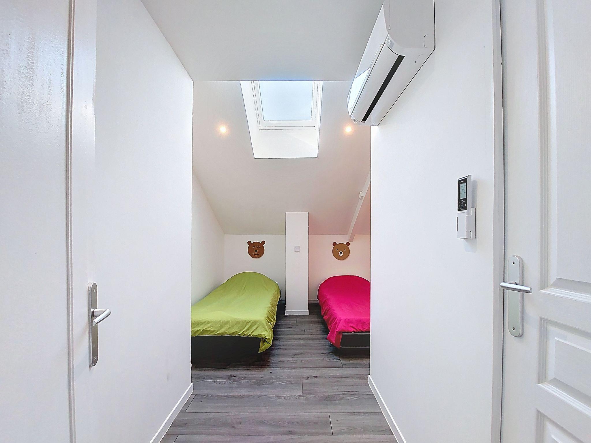 4-room maisonette 100 m2. Spacious, fully renovated in 2024: living room with TV (flat screen). Large, open kitchen (oven, dishwasher, 4 ceramic glass hob hotplates, toaster, kettle, microwave, electric coffee machine) with dining table. Exit to the terrace. Sep. WC. Air-conditioning. Upper floor: 1 large room with 1 french bed (140 cm, length 190 cm). 1 large room with 1 french bed (140 cm, length 190 cm). 1 room with 2 beds (90 cm, length 190 cm). Shower/WC. Air-conditioning. Large terrace 30 m2. Terrace furniture, barbecue. Facilities: washing machine. Internet (WiFi, extra). Parking (1 car). Please note: apartment street side. Non-smokers only. Smoke alarm.