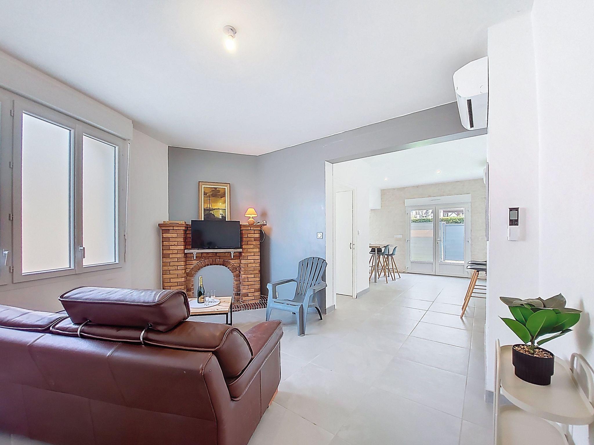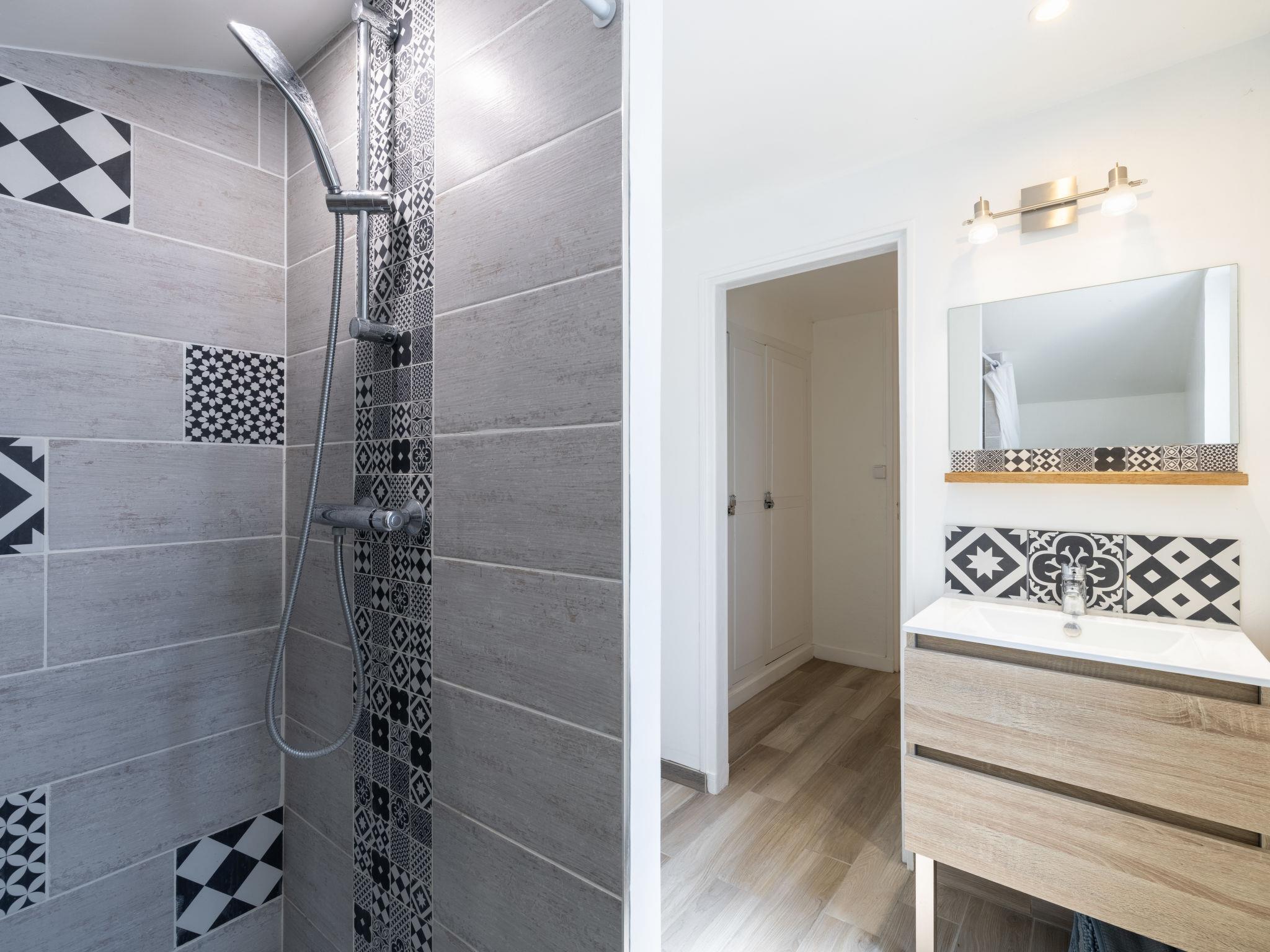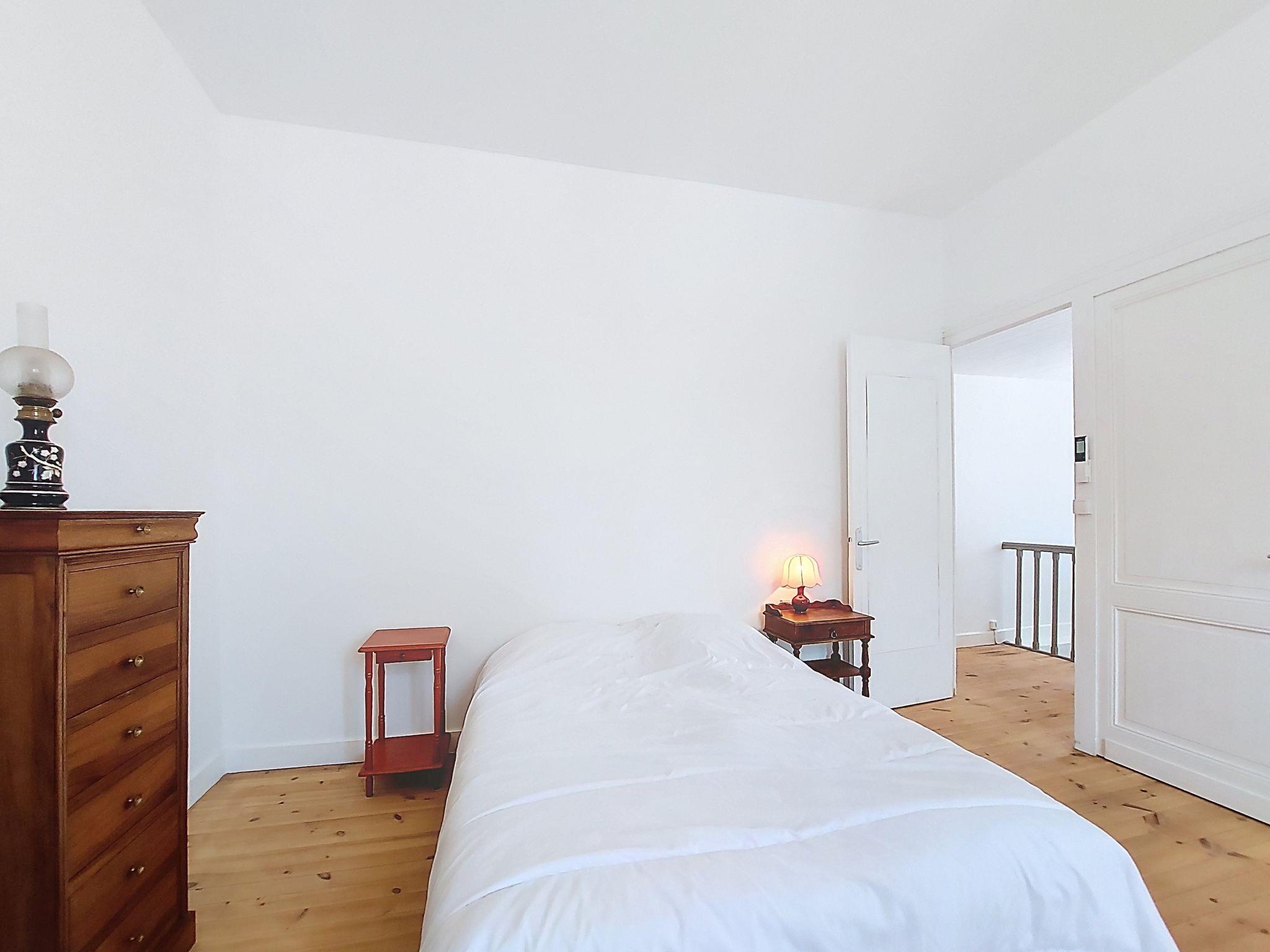4-room maisonette 100 m2. Spacious, fully renovated in 2024: living room with TV (flat screen). Large, open kitchen (oven, dishwasher, 4 ceramic glass hob hotplates, toaster, kettle, microwave, electric coffee machine) with dining table. Exit to the terrace. Sep. WC. Air-conditioning. Upper floor: 1 large room with 1 french bed (140 cm, length 190 cm). 1 large room with 1 french bed (140 cm, length 190 cm). 1 room with 2 beds (90 cm, length 190 cm). Shower/WC. Air-conditioning. Large terrace 30 m2. Terrace furniture, barbecue. Facilities: washing machine. Internet (WiFi, extra). Parking (1 car). Please note: apartment street side. Non-smokers only. Smoke alarm.