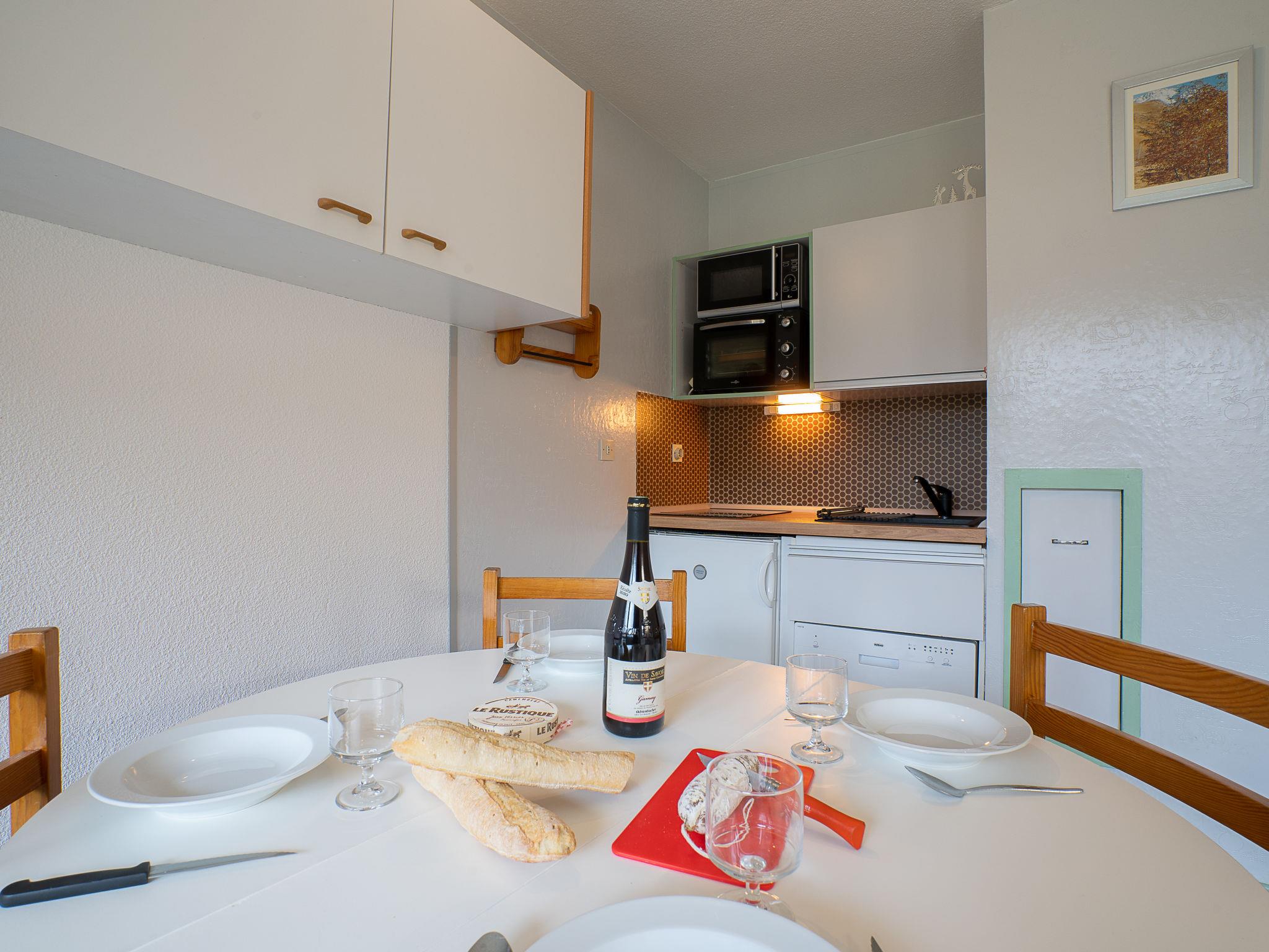 "Asters 722 Bâtiment B2", 1-room apartment 24 m2 on 1st floor. Beautiful furnishings: living/dining room with 1 double sofabed (140 cm, length 190 cm), TV (flat screen). Exit to the balcony. Sleeping alcove with 1 x 2 bunk beds (70 cm, length 190 cm). Kitchenette (mini-oven, dishwasher, 2 induction hot plates, kettle, microwave, electric coffee machine). Bath/WC. Electric heating. Balcony, south facing position. Beautiful view of the mountains and the ski run. Facilities: Internet (WiFi, extra). Please note: smoke alarm. Instead of an enclosed bedroom, some sleeping areas are located in an open-plan area (gallery, alcove, etc.). 73257003637DP