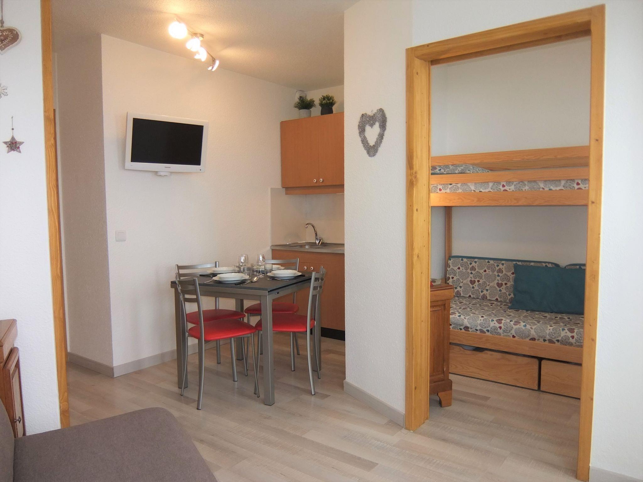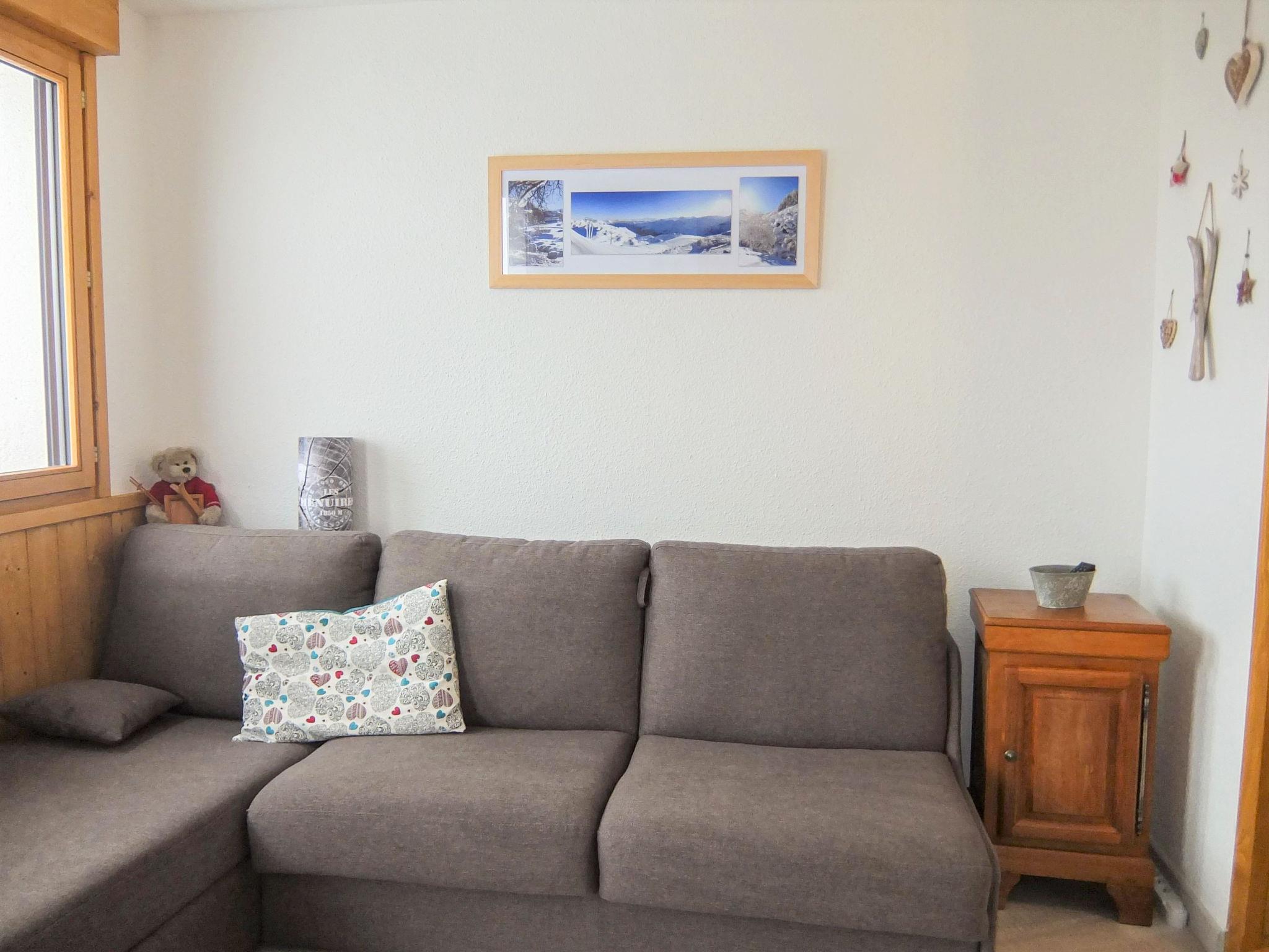 "Médian 005", 2-room apartment 24 m2 on 2nd floor. Comfortable and beautiful furnishings: living/dining room with 1 double sofabed (140 cm, length 190 cm), TV (flat screen). 1 room with 1 x 2 bunk beds (80 cm, length 190 cm). Kitchenette (2 ceramic glass hob hotplates, toaster, kettle, microwave, electric coffee machine, raclette grill). Bath/WC. Electric heating. Balcony, south facing position. Beautiful view of the mountains. Facilities: Internet (WiFi, extra). Please note: non-smokers only. Smoke alarm. 73257007504SB