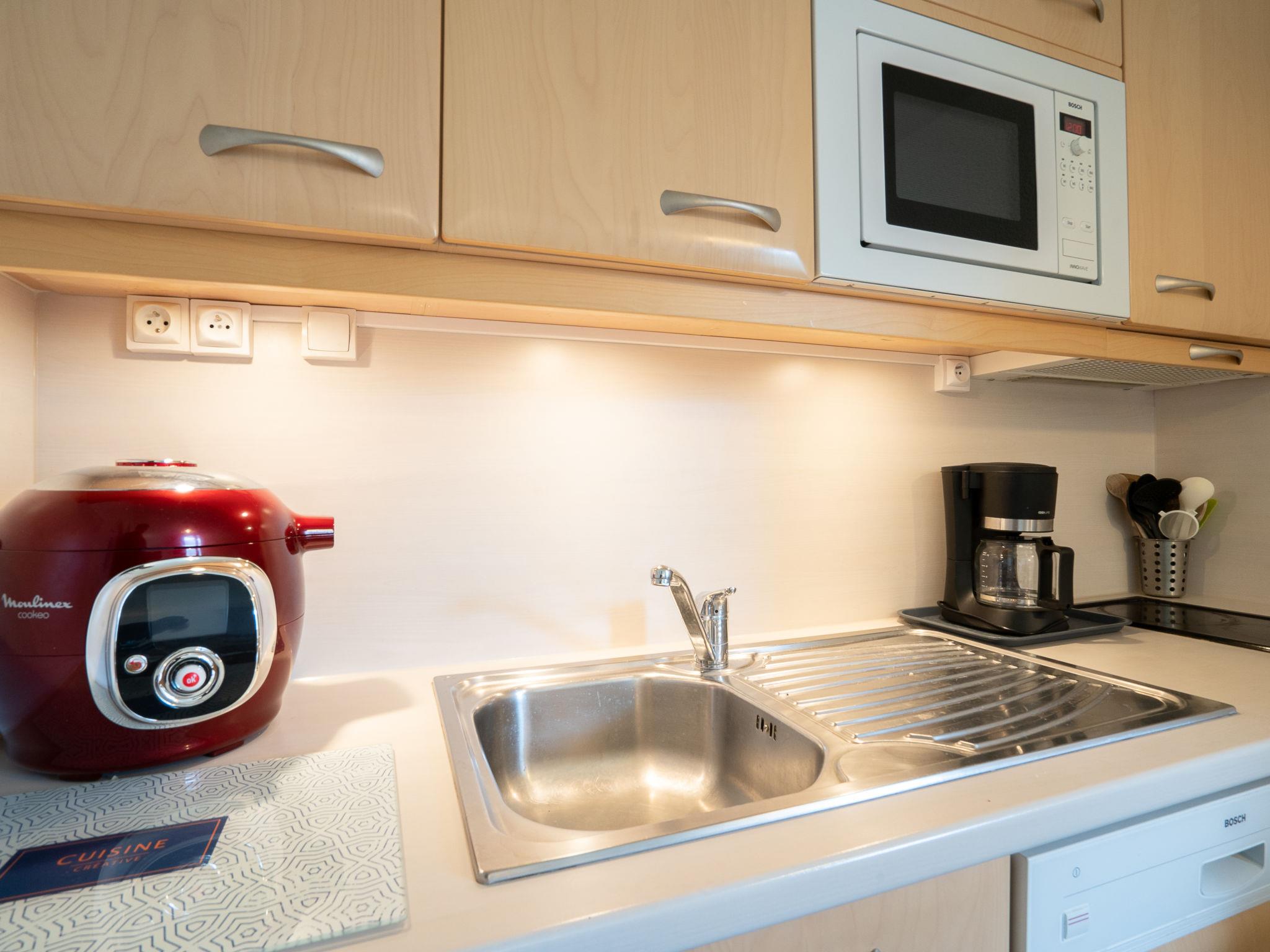 "Médian 330", 2-room apartment 32 m2 on 3rd floor. Comfortable and beautiful furnishings: living/dining room with 1 double sofabed (140 cm, length 190 cm), TV (flat screen). Exit to the balcony. Entrance hall with 1 x 2 bunk beds (80 cm, length 190 cm). 1 room with 1 french bed (140 cm, length 190 cm). Kitchenette (dishwasher, 2 ceramic glass hob hotplates, toaster, kettle, microwave, electric coffee machine). Bathroom, sep. WC. Electric heating. Balcony, south facing position. Very beautiful view of the valley. Facilities: Internet (WiFi, extra). Please note: smoke alarm.