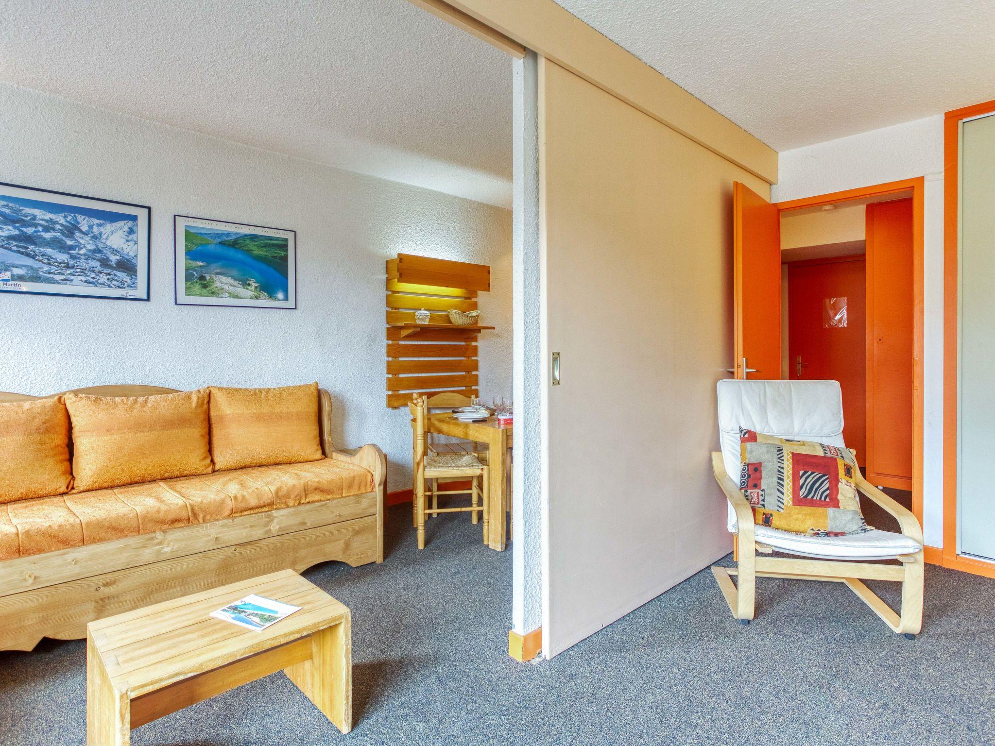 "Chanteneige 403", 2-room apartment 32 m2 on 4th floor, west facing position. Very beautiful furnishings: living/dining room with sliding door with 2 sofabeds (80 cm, length 190 cm). 1 room with 1 pull-out bed (2 pers. 2 x 80 cm, length 190 cm), TV (flat screen). Exit to the balcony. Kitchenette (mini-oven, dishwasher, 2 ceramic glass hob hotplates, toaster, kettle, microwave, electric coffee machine). Bathroom, sep. WC. Covered balcony. Beautiful view of the mountains. Facilities: washing machine. Internet (WiFi, extra). Please note: non-smokers only. Smoke alarm. 73257004540SB