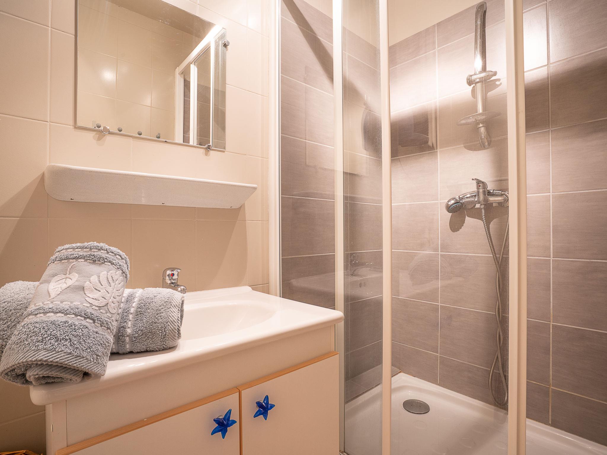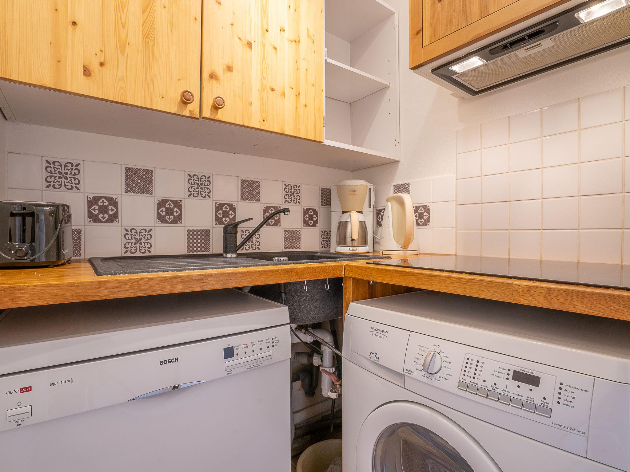 "Les Lauzes D12", 2-room apartment 34 m2 on 2 levels on 3rd floor. Beautiful furnishings: living/dining room with 1 double sofabed (140 cm, length 190 cm), TV (flat screen). Exit to the balcony, west facing position. Alcove with 1 bed (90 cm, length 190 cm). Kitchenette (oven, dishwasher, 3 induction hot plates, toaster, kettle, freezer, electric coffee machine, raclette grill). Sep. WC. On the lower ground floor: 1 room with 1 french bed (140 cm, length 190 cm). Shower. Beautiful view of the mountains. Facilities: washing machine. Internet (WiFi, extra). Please note: maximum 1 pet/ dog allowed. Smoke alarm. Instead of an enclosed bedroom, some sleeping areas are located in an open-plan area (gallery, alcove, etc.). 73257002108HT