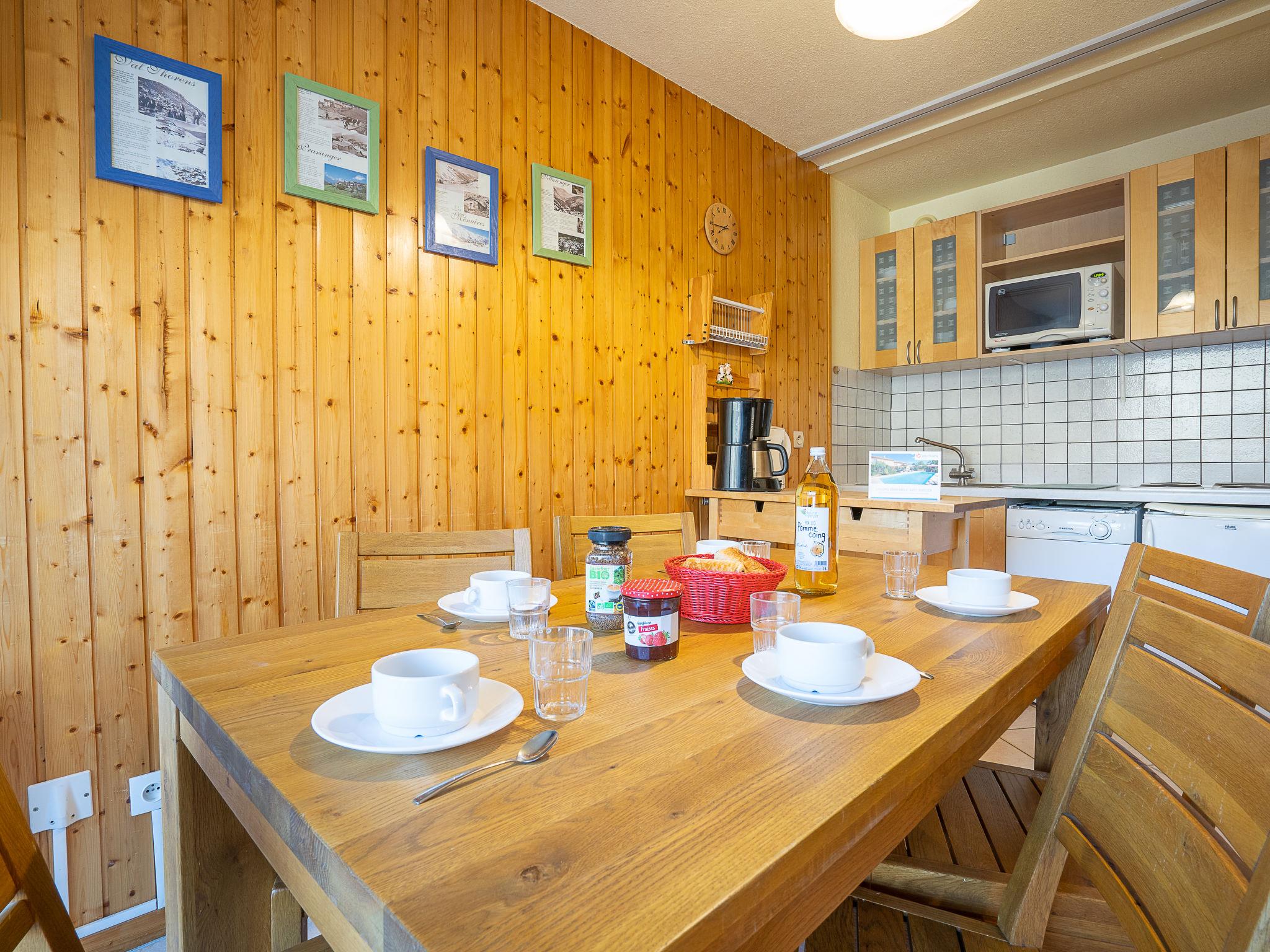 "Mélèzes 66", 2-room apartment 35 m2, on the ground floor. Beautiful furnishings: living/dining room with TV (flat screen). 1 room with sliding door with 1 double sofabed (150 cm, length 200 cm). Entrance hall with 1 x 2 bunk beds (80 cm, length 190 cm), 1 sleeping facility (80 cm, length 190 cm). Kitchenette (4 hot plates, dishwasher, kettle, microwave, electric coffee machine, raclette grill). Shower, sep. WC. Electric heating. Balcony, west facing position. View of the mountains. Facilities: Internet (WiFi, extra). Please note: smoke alarm. 73257007461MX